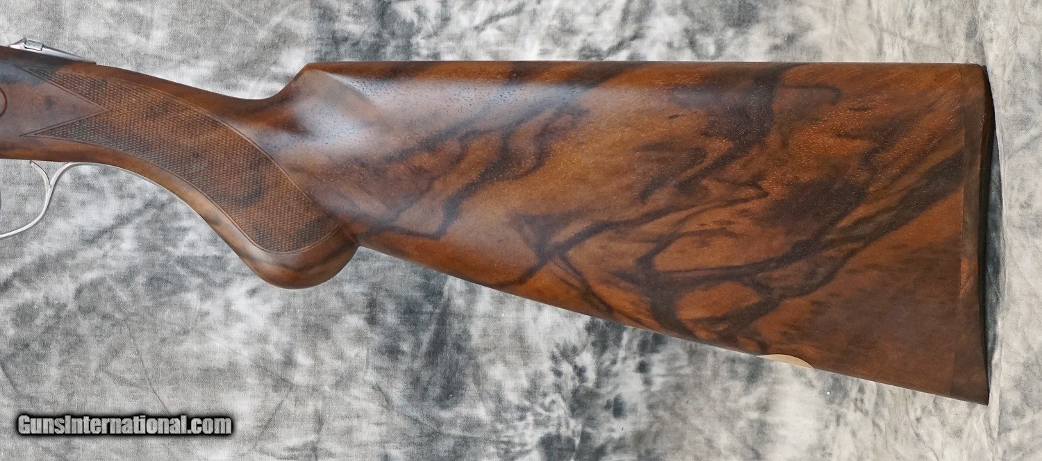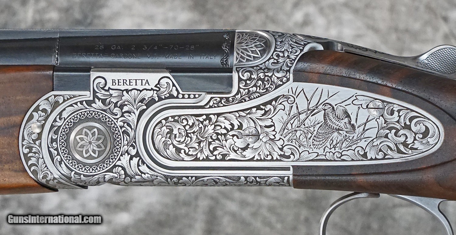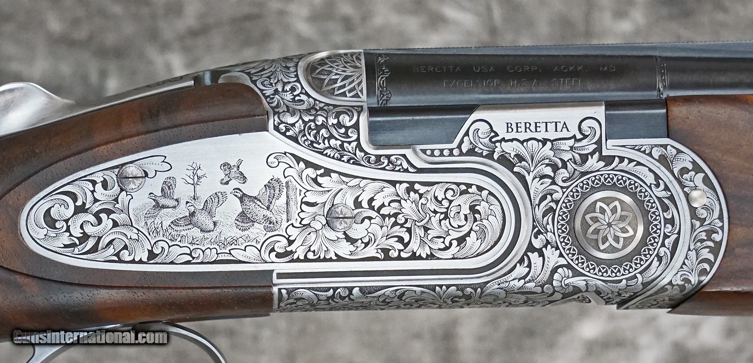 Description: New Beretta 687EELL Classic Game 20GA with 28" factory choke tubed barrels, parallel game rib with solid side-ribs. Coin finished action featuring highly detailed scrolls and game scene cameos, long-tang. Highly figured factory Prince of Wales pistol grip game stock to removable wooden butt plate, slim game forearm. Includes factory case, chokes and tools. Call 626-633-1002 for pricing. SOLD Shotgun Gauge: 20 Gauge |