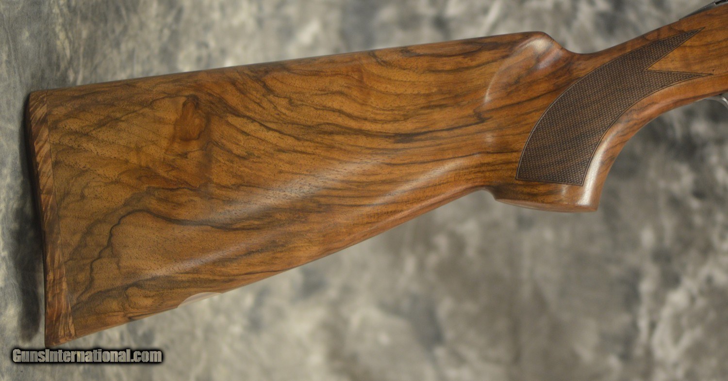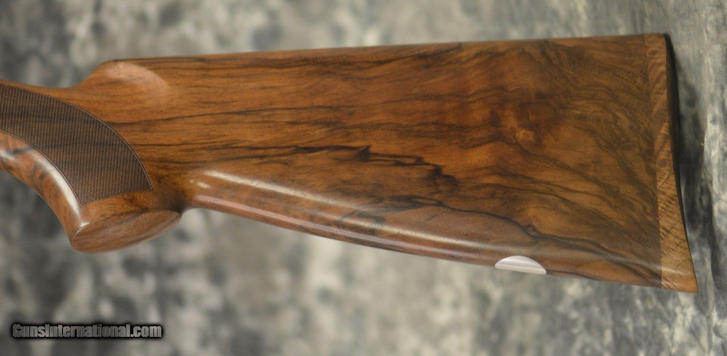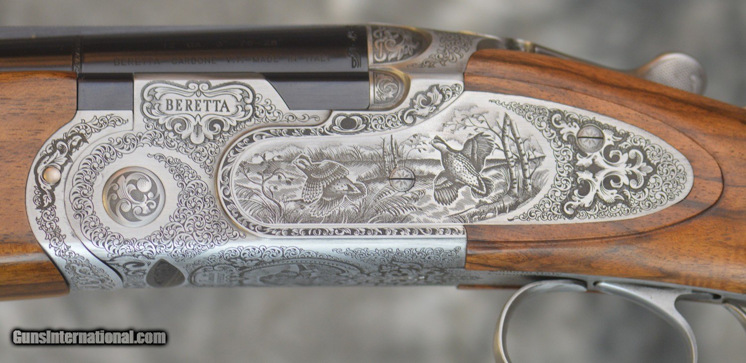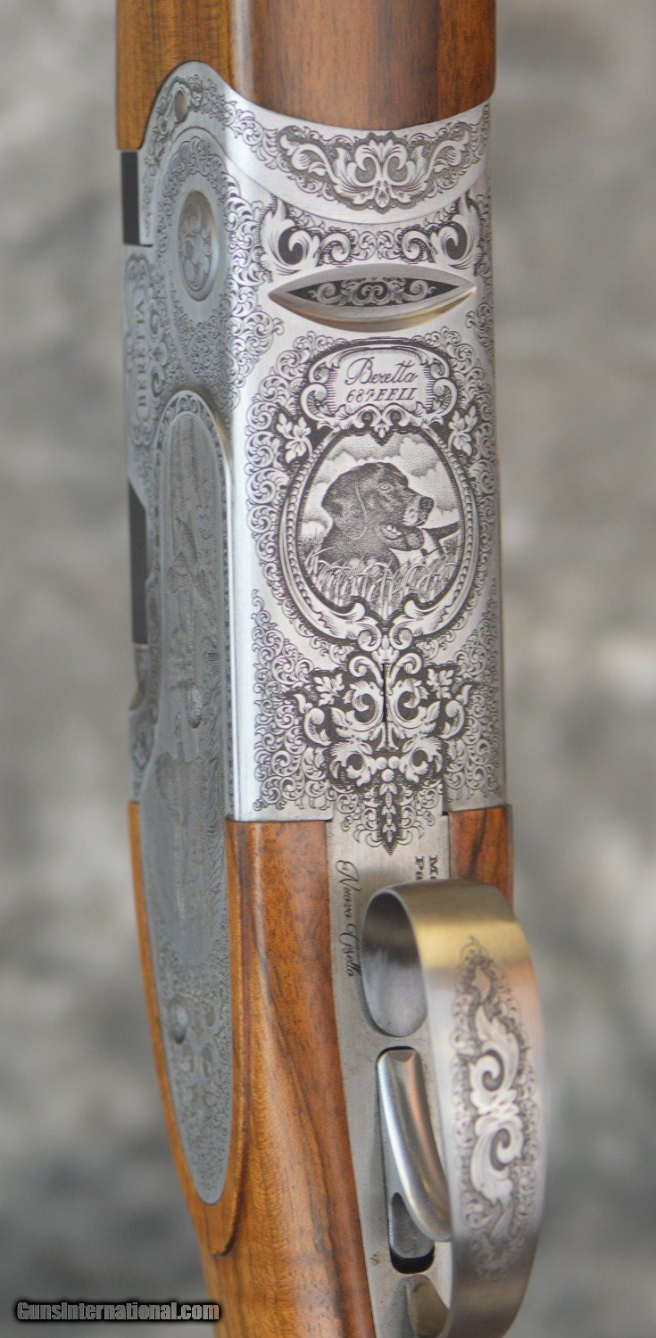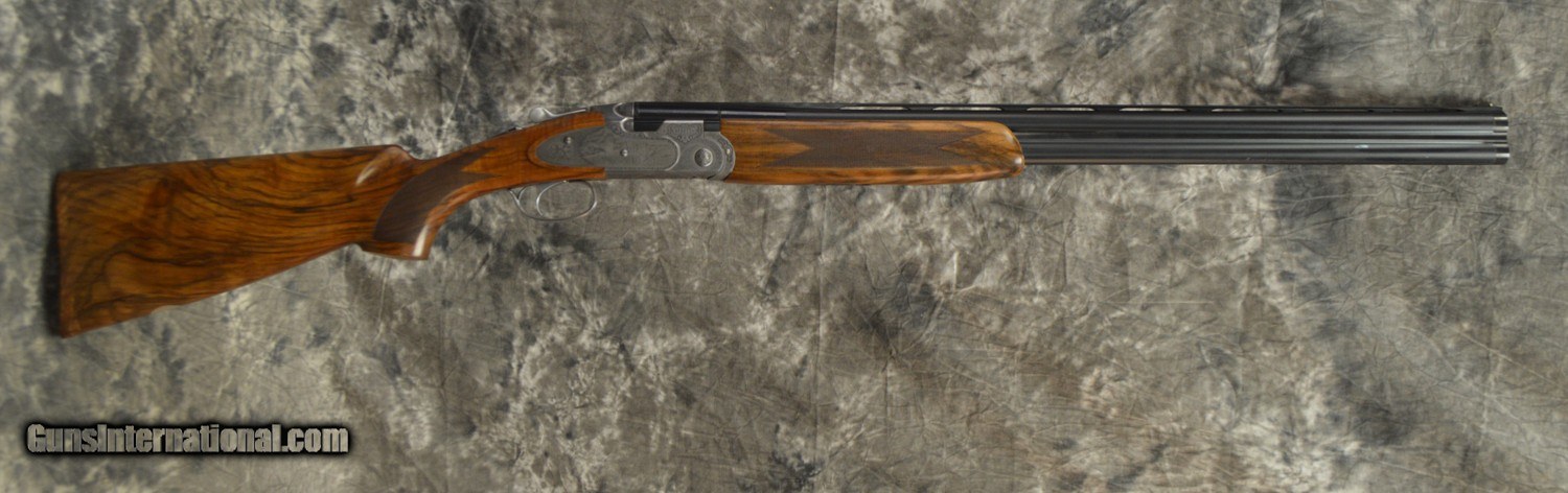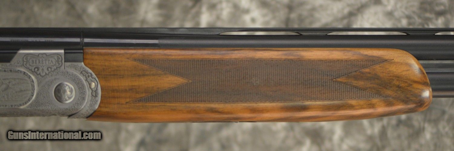 Description: New Beretta 687EELL Game 12GA with 28" factory Mobil choked barrels, 6x6 parallel game rib with solid side-ribs; selective trigger with automatic safety. Coin finished action with fully engraved side-plates featuring fine English scrolls and game scenes cameos. Highly upgraded factory pistol grip field stock with removable wooden butt plate (additional rubber recoil pad included), schnabel forearm. Includes factory leather trim case, chokes and tools. SOLD Shotgun Gauge: 12 Gauge |