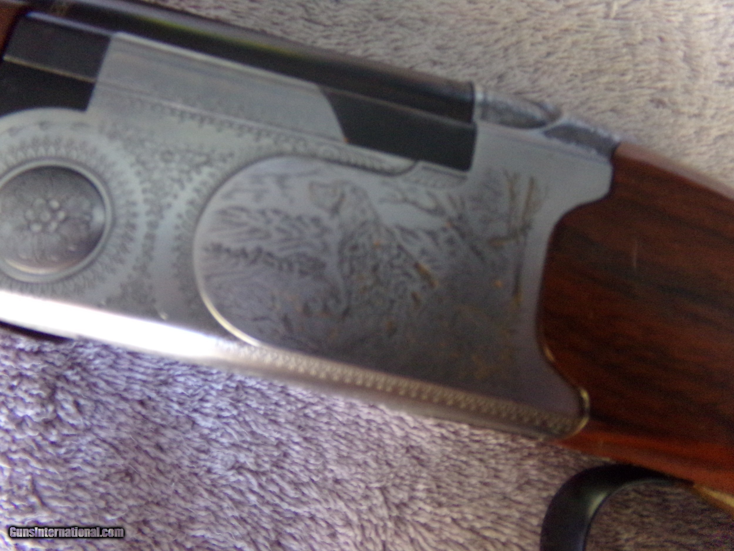 Description: This is a European Beretta 687 choked ic and full as a European gun usually is. Choked that way for close and far birds. Not been shot a lot and has highly figured wood.I have only seen one other of these with 28 inch barrels.Snipe on one side and setter on the other side, a one of a kind Beretta SOLD Shotgun Gauge: 12 Gauge Manufacturer: Beretta Model: s687 Chambers: 2 3/4 Condition: very good Metal Condition: very good Wood Condition: very good Engraving: 2 snipe and a setter |