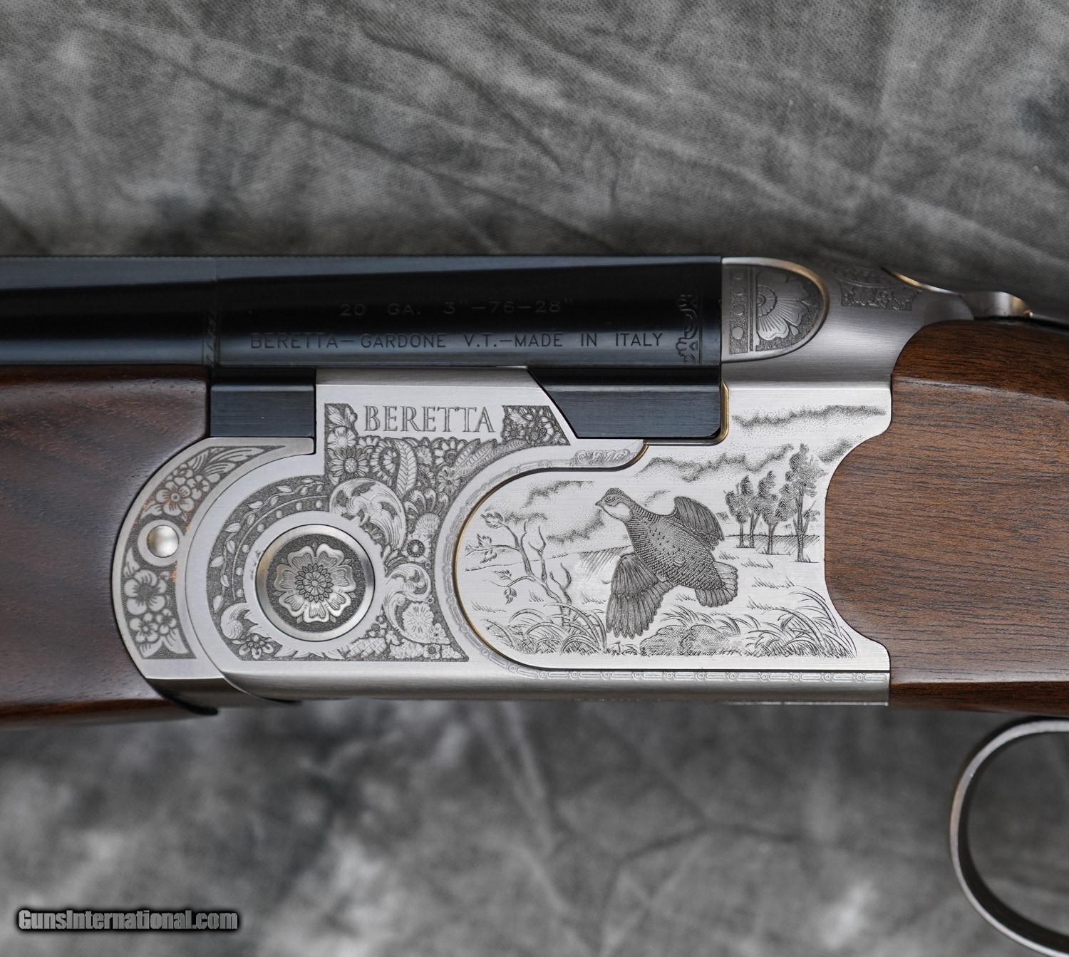 Description: New Beretta 687 Silver Pigeon III Field 20GA with 28" factory choke tubed barrels, parallel game rib with solid side-ribs. Game scene and scroll engraved action with selective trigger, automatic safety. Factory pistol grip field stock with field forearm. Includes factory case, chokes and tools. SOLD Shotgun Gauge: 20 Gauge |