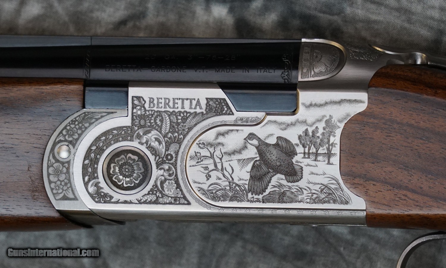 Description: New Beretta 687 Silver Pigeon III Field 20GA with 28" factory OBHP choked barrels, parallel game rib. Nickel finished action with game scenes and scrolls, upgraded pistol grip game stock with schnabel forearm. Includes factory case, chokes and tools. SOLD Shotgun Gauge: 20 Gauge |