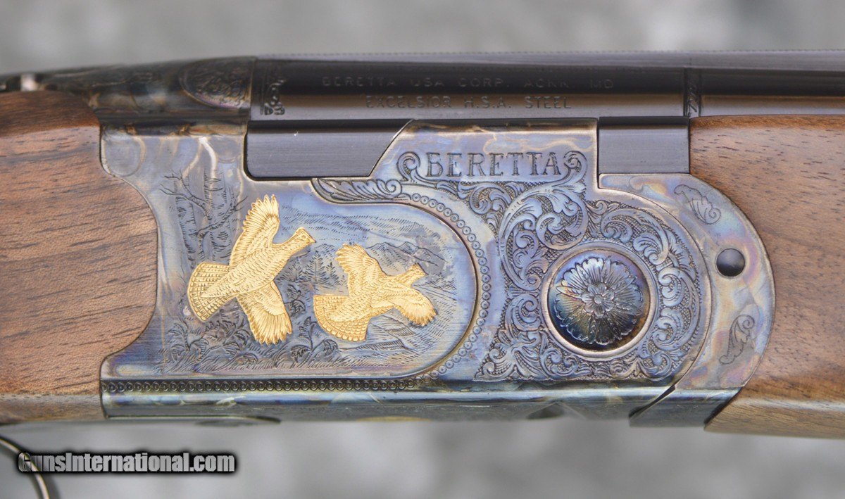 Description: Beretta 687 Silver Pigeon V 28GA with 28" factory Mobil choke tubed barrels, 6x6mm parallel game rib. Factory case-color hardened receiver with scroll engraving and gold birds. Factory upgrade pistol grip game stock with slim game forearm. Includes factory case, chokes and tools. SOLD |