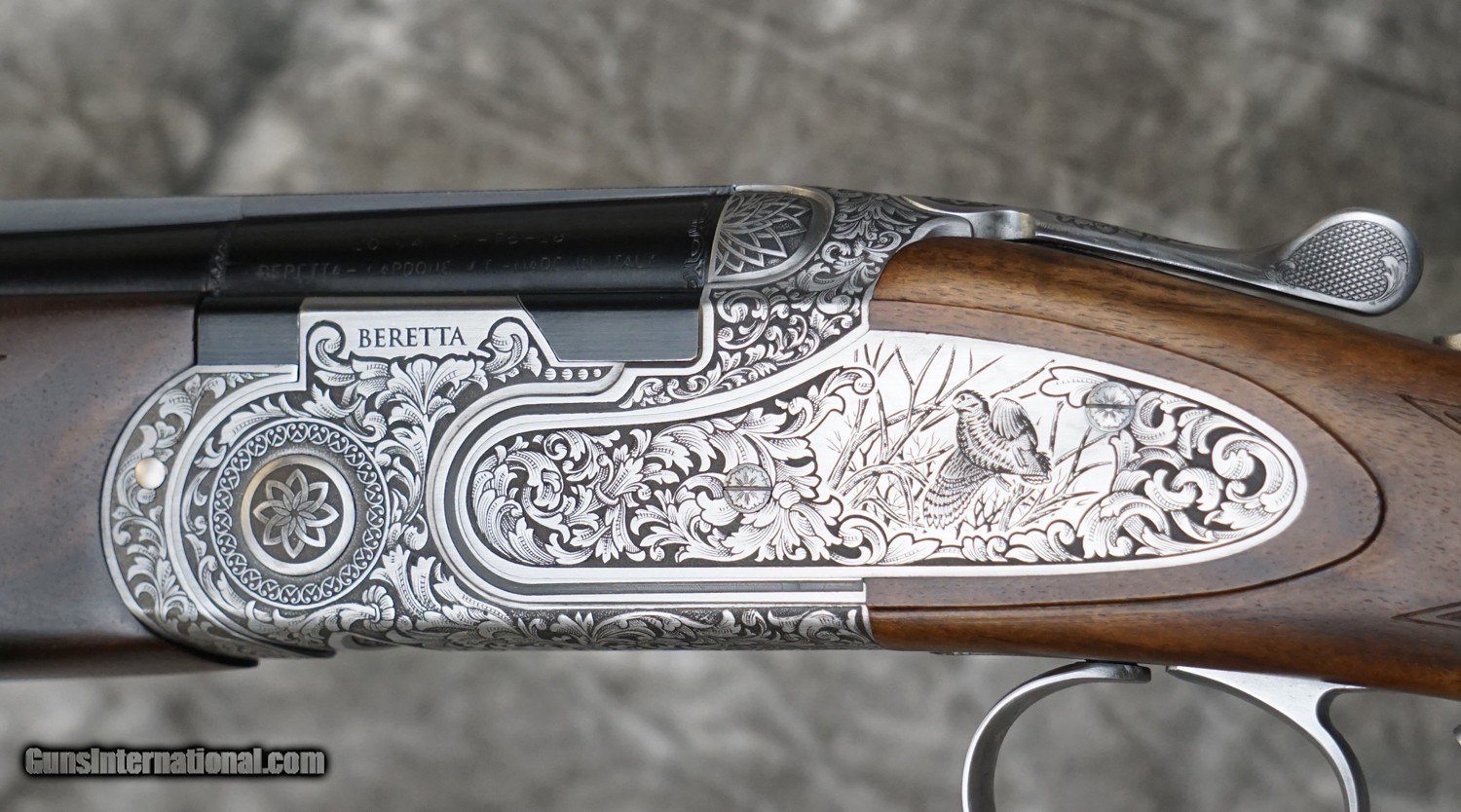 Description: New Beretta 687EELL Classic Field 20GA with 28" factory choke tubed barrels, parallel game rib and solid side-ribs. Coin finished action with fully engraved sideplates featuring scrolls and game scenes, long tang. Factory Price of Wales pistol grip stock to wood butt plate and game forearm. Includes factory case, chokes and tools. SOLD Shotgun Gauge: 20 Gauge |