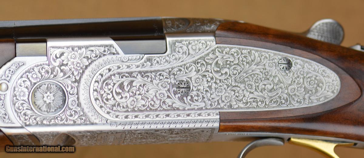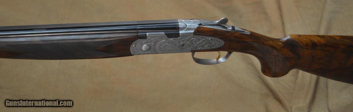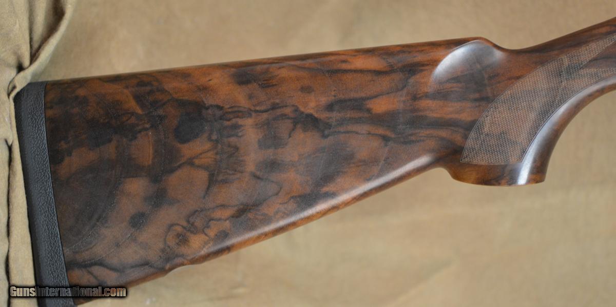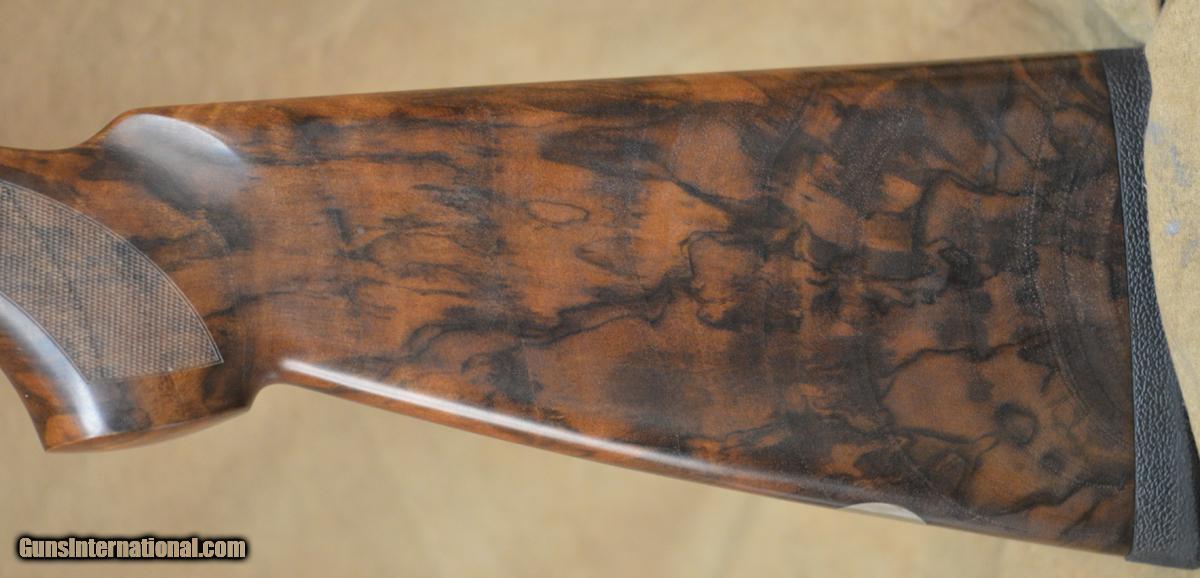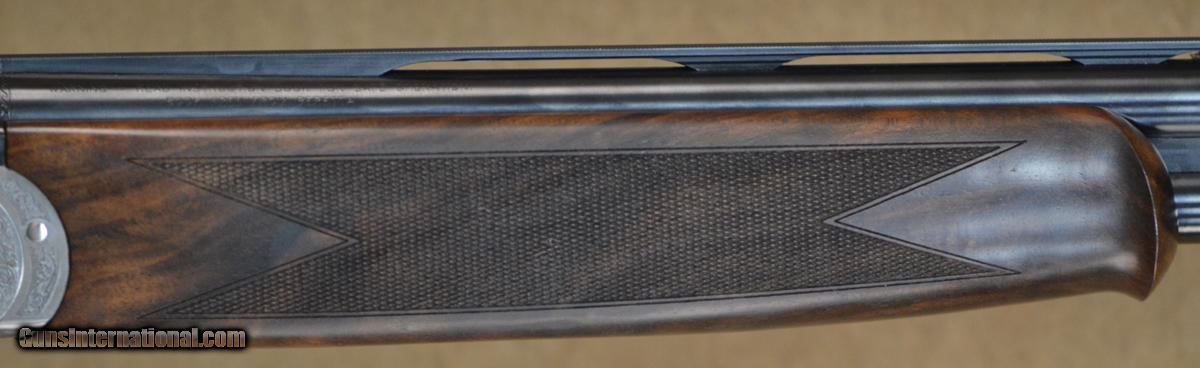Description: Beretta 687 EELL Diamond Pigeon 28GA with 30" Mobil Choked barrels. Coin finished action with fully scroll engraved side-plates. Outstanding pistol grip stock with slim round forearm. Overall excellent condition, shows minor signs of use with some handling marks in wood & minor bluing wear. Includes case & additional extended Briley Skeet chokes. SOLD |