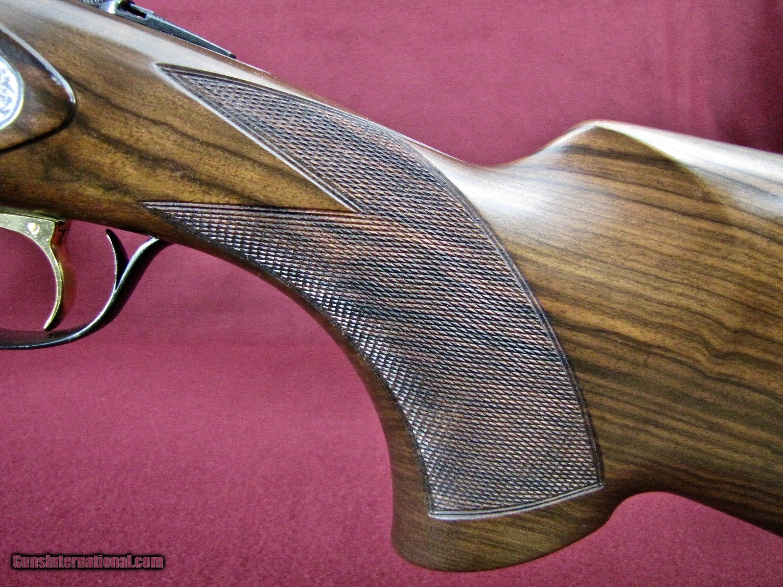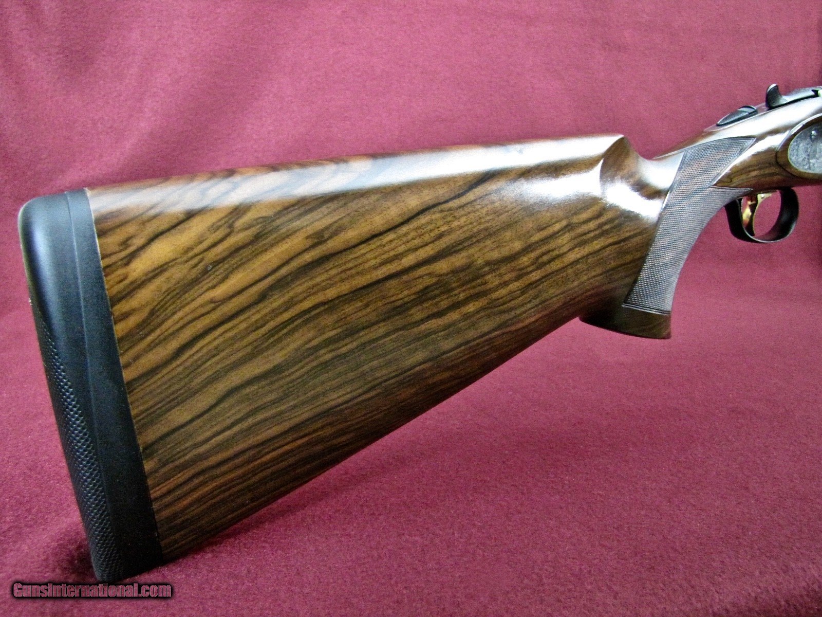 Description: SPF gun is now sold pending receipt of funds. I have for sale a very nice Beretta 687EELL Sporting in like new condition with only a couple tiny imperfections on the stock. This particular gun has 28 inch barrels with screw in choke tubes (mobile chokes) with 4 chokes included, skeet, skeet, modified, and full. Should you want more they are readily available and relatively cheap. This is one of the earlier 687EELL's with hand engraving which is much better than the newer ones in my opinion. Engraving done by Bottega Giovanielli signed by the trigger guard. The gun comes with two different butt plates/pads. One Beretta recoil pad which was original to the gun, and a wooden Beretta plate that was added and fits perfectly. The original pad gives you a 14 3/4 inch LOP and the wooden one gives you 14 1/2 inch LOP with the adjustable trigger in the center position. Drop at comb is 1 1/2 and at heel it is 2 1/2. Cast of the stock is neutral so either right or left hand shooter can shoot this gun. Gun comes with the nice Beretta hard case pictured, stock removal tool, 4 flush choke tubes, original paperwork and manual, and Beretta cloth sleeves. Wood on this gun is striking, with dark streaks and nice contrast. Great grain flow through the wrist area for strength. Price of the gun is $4250 plus $50 shipping to your FFL. As always there is a three day non-firing inspection period with buyer paying shipping if returned. SOLD Shotgun Gauge: 12 Gauge Manufacturer: Beretta Model: 687EELL Barrel Length: 28 Ejectors: Selective Well Timed Condition: Excellent Plus Metal Condition: Excellent Plus Wood Condition: Excellent Plus Bore Condition: Bright & Shiny Triggers: Single Selective Stock Comb: 1 1/2 Stock Heel: 2 1/2 Stock Cast: Neutral - no cast Fore End: Schnabel Butt Pad: 2 Included LOP: 14 3/4 or 14 1/2 Rib: Ventilated Weight: 7 pounds 11 ounces Manufacture Date: 1993 Chokes: Sk, Sk, Mod, Full Engraving: Hand Cut Extras: Sleeves, Manuals, Stock Tool Case: Beretta Hard Case |
