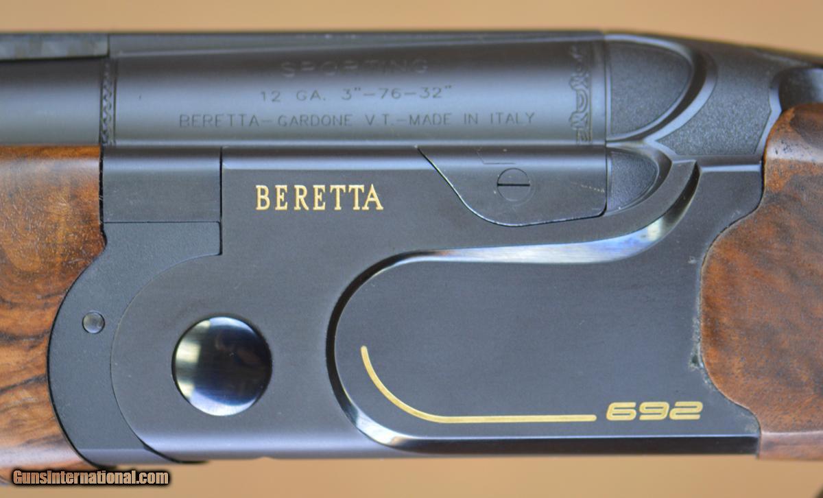 Description: New Beretta 692 Black Sporting 12GA with 32" OP HP factory choked barrels. Features carbon fiber rib, black action with gold high-lights. Outstanding factory right-hand sporting stock with palmswell and schnabel forearm. Includes factory case, chokes & tools. SOLD |