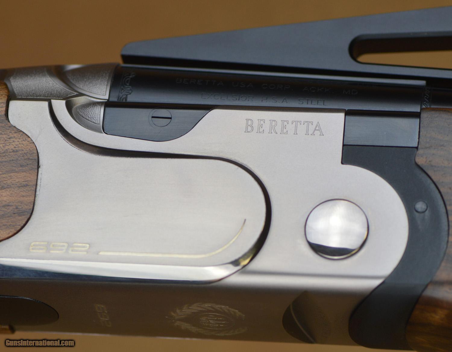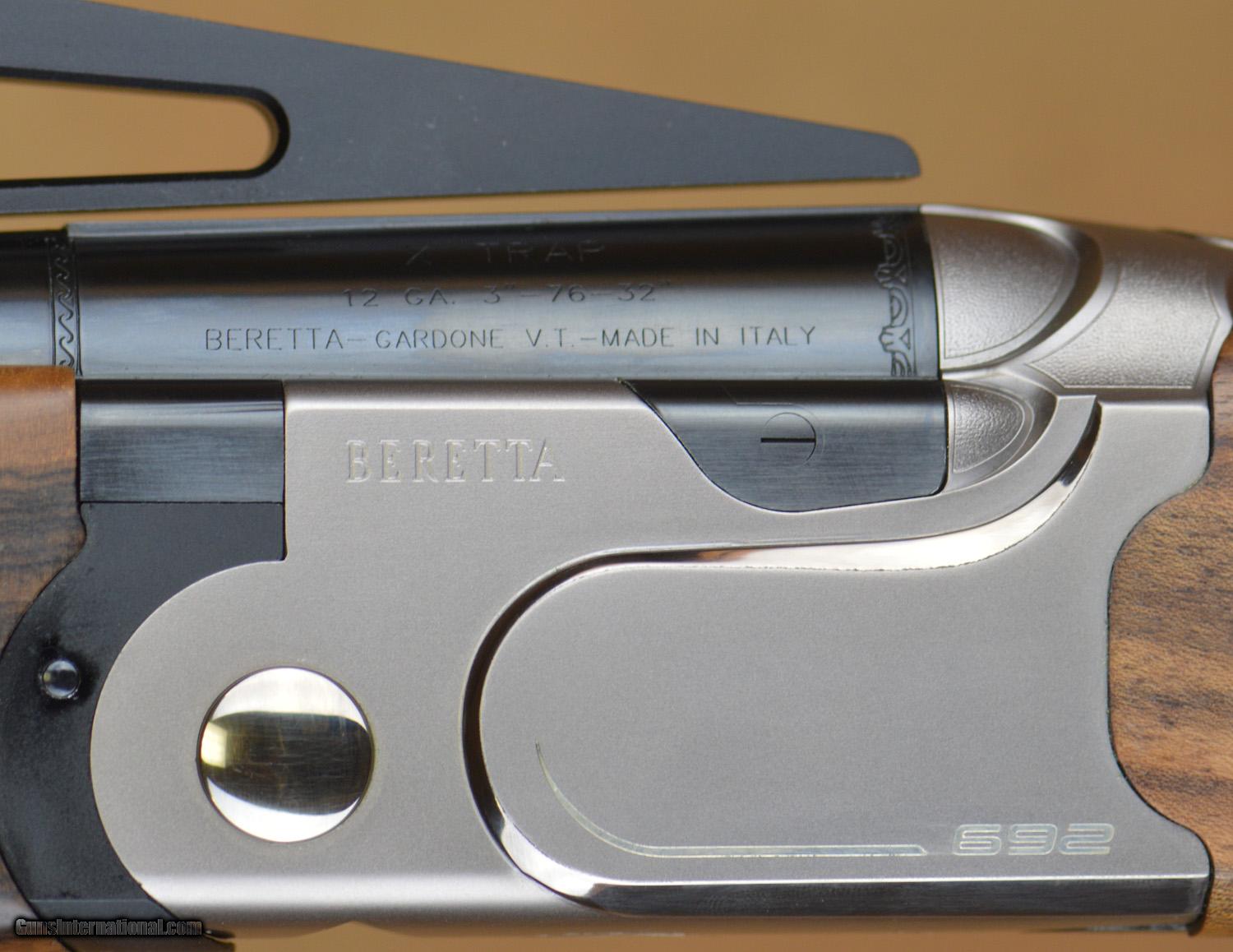 Description: New Beretta 692 X-Trap 12GA with 32" factory adj. rib barrels, factory Optima-HP flush choke tubes. Nickel action, factory Adj. Comb Monte Carlo stock with beavertail forearm. Includes factory case, chokes and tools. SOLD |