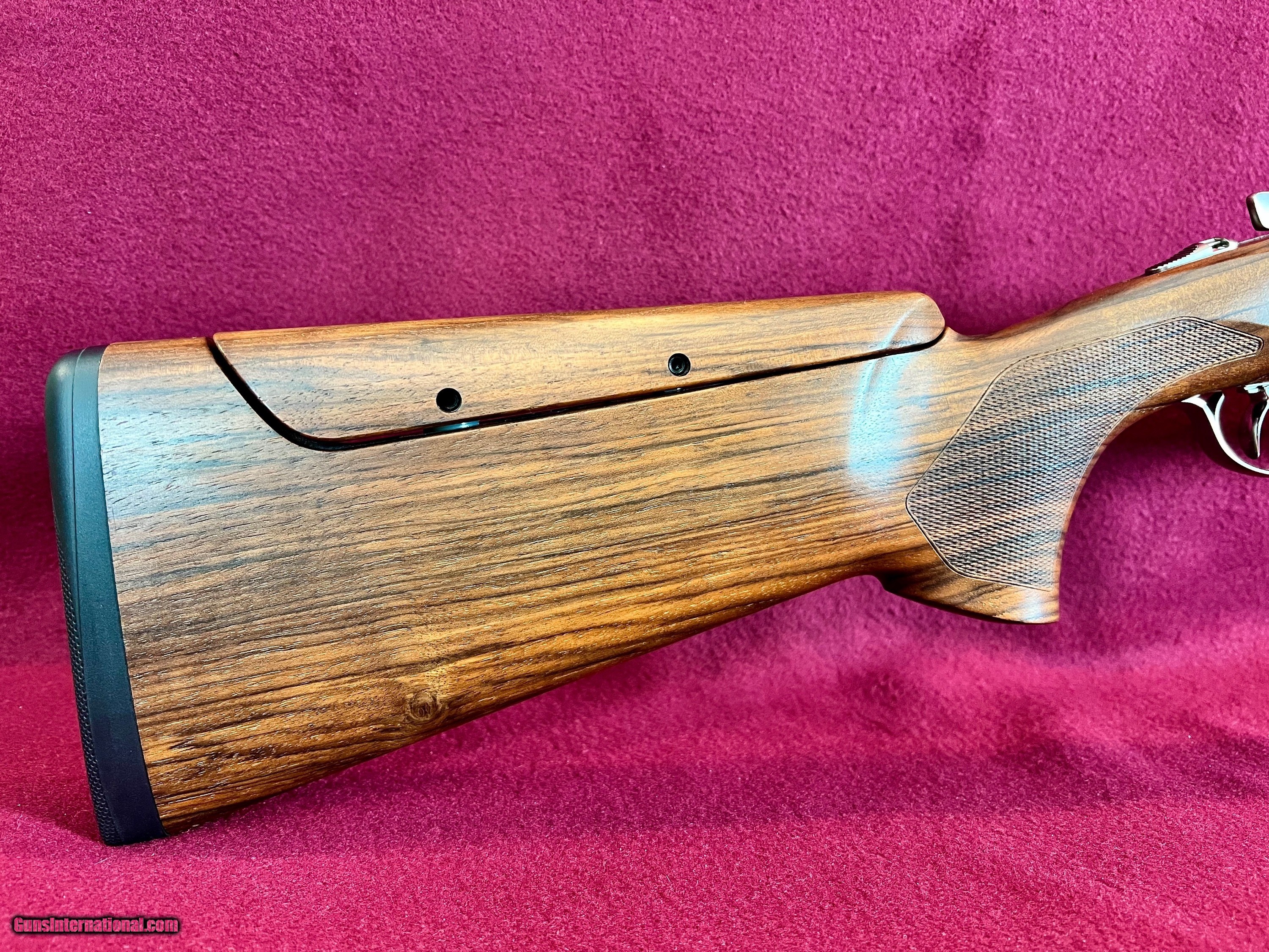 Description: I have for sale a Beretta Model 694 BFast Sporting Model with 30 inch barrels. The gun was purchased new on 3/7/24. This is a one owner gun and it has an extremely low round count. The gun was sent to Briley to have a complete set of their top of the line Ultimale Ultralight tuges fitted in 20, 28, and 410 gauges. The tube set comes with 4 tubes for each gauge, all the installation tools, choke tube wrenh and the fitted Briley Negrini luggage case #16407. The sub gauge tube set sells for $2095 dollars and the case sells for $249. The gun itself is as close to new as you will find in a "used" gun. I can only find a couple of the very smallest marks on the stock. The gun comes with 2 flush choke tubes in skeet and skeet, and 6 extended tubes in skeet, skeet, cylinder, Improved cylinder, modified, and improved modified. Stock dimensions are 1 1/2 X 2 1/4 X 14 3/4 over the thinner of the two Beretta fitted pads and with the adjustable trigger in the middle position and the adjustable comb in the lowest position. The stock is cast off for the right hand shooter and has a right hand palm swell. Gun comes in the original fitted Negrini case and the stock and barrel sleeves. All original paperwork is included as well along with the stock weight to allow you to adjust the balance. The new price of the gun is $6049 plus $2350 for the sub gauge tube set and case, plus a couple additional extended choke tubes and you have a total new price of over $8400. My no haggle price on this complete set is $5750 plus $100 shipping to your FFL. As always there is a three day non-firing inspection period with the buyer paying shipping charges if returned. Look carefully at the attached pictures. This gun is in 99% plus condition. Manufacturer: Beretta Model: 694 Sporting Barrel Length: 30 Inches Chambers: 3 Inch Ejectors: Selective Well Timed Condition: Excellent Plus Metal Condition: Excellent Plus Wood Condition: Excellent Plus Bore Condition: Perfect Action: boxlock Stock: Adjustable Comb Stock Comb: 1 1/2 Stock Heel: 2 1/4 Stock Cast: Right Hand Butt Pad: 2 Beretta Pads LOP: 14 3/4 Rib: Vent Finish: oil Finish Weight: 8 pounds 8 ounces Sights: Front and mid bead Chokes: 8 screw in Extras: Sub Gauge Tube Set Case: Factory Luggage Price: $5,750.00 Shipping: $100.00 Contact Seller |