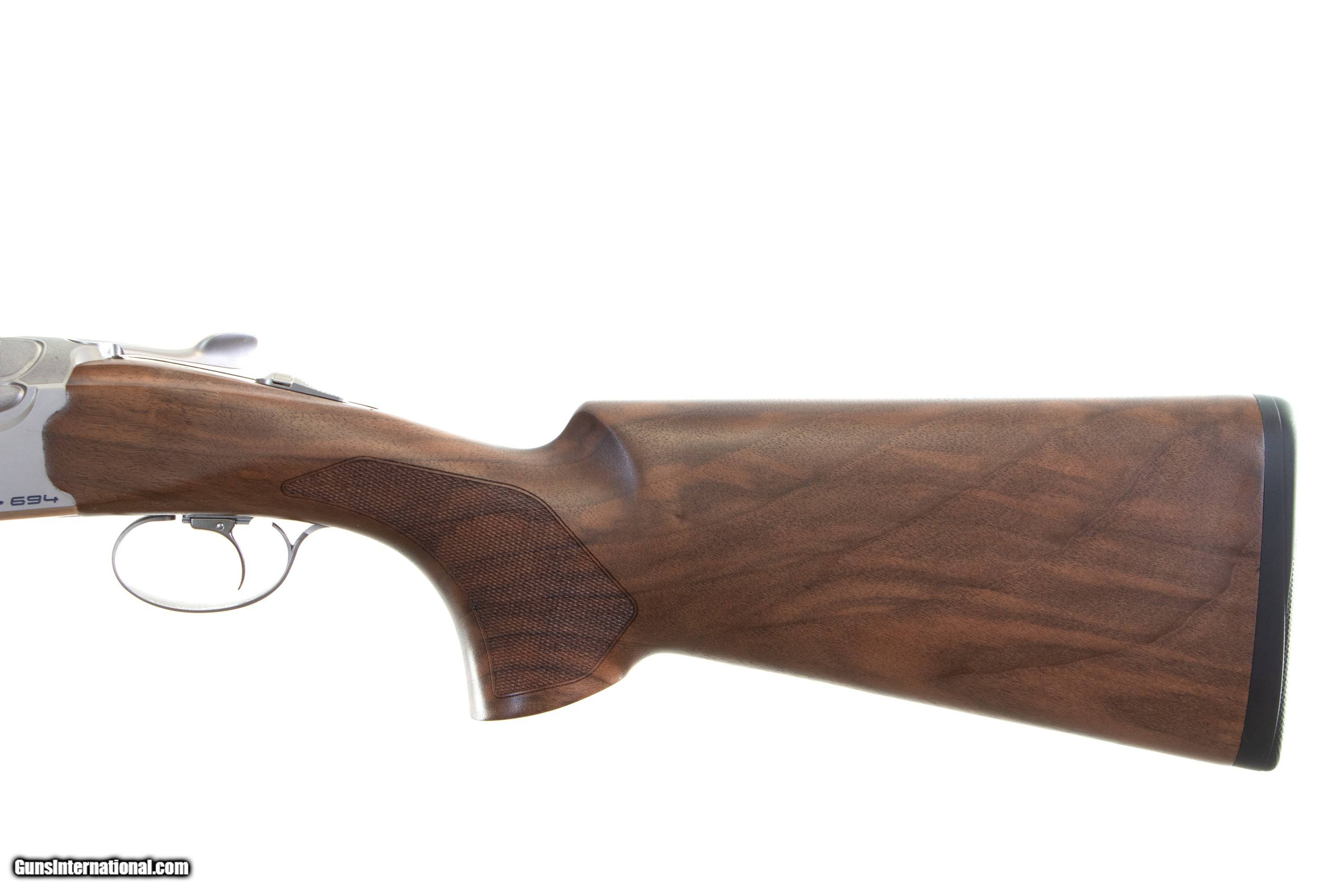 Description: Beretta 694 Sporting Shotgun | 12ga 30" | SN:ST18646R Designed and tested in collaboration with the Beretta Shooting Team, 694 is the new over-and-under platform designed specifically for competition shooting, with a precise objective in mind: to help shooters increase their success rate. Thanks to a meticulous mechanical and ergonomic design process, the 694 represents a perfectly balanced over-and-under competition shotgun. Natural and immediate when shouldering, it features a precise swing and it’s easy to control. The new shape of the action and the stock provide increased field of vision, while the new forend iron system allows the user to maintain the opening load constant over time, and the Steelium Plus barrels guarantee a dense, uniform pattern every time. The slim, modern design lends the 694 a "racing" feel. Did you know that Cole Gunsmithing is one of the only shotgun dealers in the US that is also a factory authorized service center for the brands we sell? We are authorized to perform service on your Beretta, Perazzi, Zoli, Blaser and Fausti shotguns, When you service, customize or buy your shotgun from us you get the Cole Experience- superior service, knowledge and expertise backed by 40 years specializing in the repair and customization of fine Shotguns. Build a relationship with your gun dealer and gunsmith all in one place. We're your one stop shop, and we've been waiting for you! Federal firearms laws do not allow us to ship firearms directly to you. Please contact us for ordering and shipping information. Located in our Harpswell, Maine Showroom Gauge12ga Barrel Length30" Barrel Weight1540g Bore Diameter18.6 Chamber3" Chokes5 Beretta Optima HP Extended Chokes Rib 10mm - 8mm Tapered Ventilated Stock Dimensions Drop at NoseAdjustable Drop at Heel 2" CastRH approx 1/8" Length of Pull 14 3/8" Forend StyleRounded Sport CombAdjustable Weight8 Lbs. 5.6 oz Warranty3 Years SOLD Shotgun Gauge: 12 Gauge |