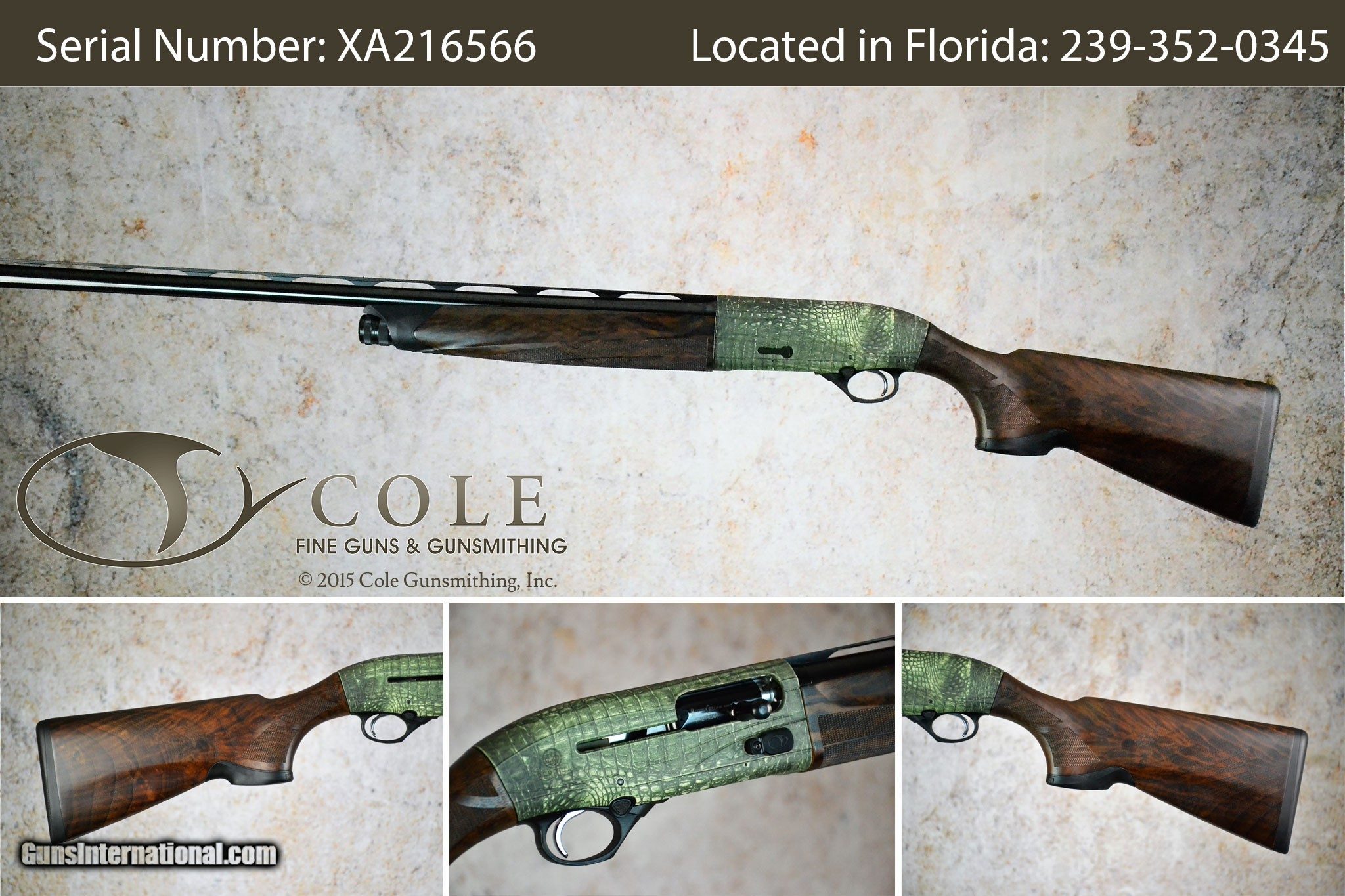 About Us: Family owned since 1985, Cole Fine Guns & Gunsmithing is the #1 Beretta Premium Dealer in the USA and a Beretta Authorized Warranty Service Center. We are a stocking Dealer for Perazzi (Authorized Factory Service Center), Blaser (Authorized Factory Service Center), Zoli (Authorized Factory Service Center), Rizzini (Authorized Factory Warranty Service Center), Caesar Guerini, Syren, Fabarm, and Benelli. We are TSK USA, importer, and distributor of TSK Stocks, The Fully Adjustable Stock.