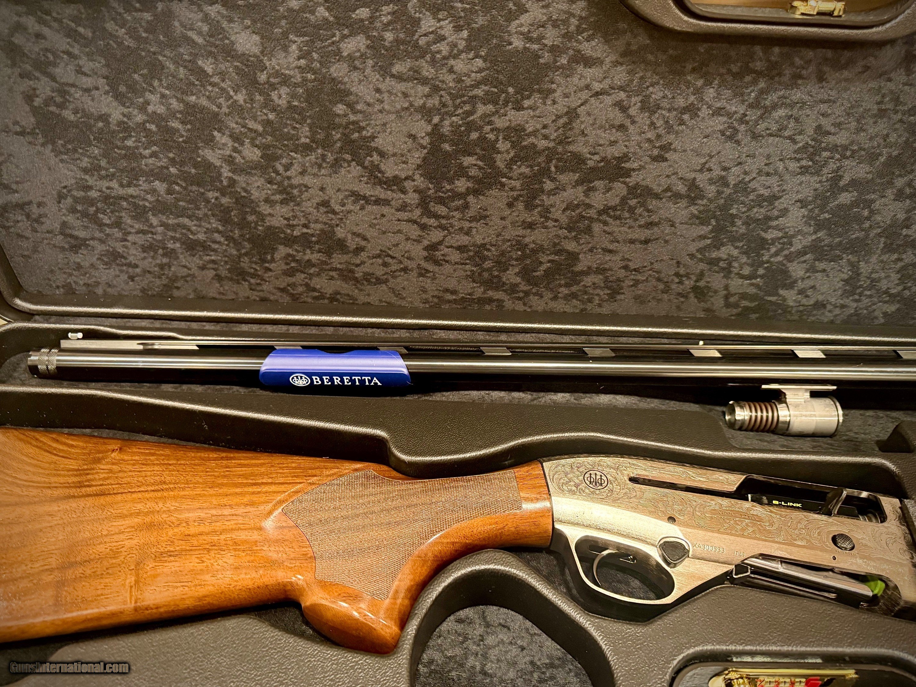 Description: We finally received the oh so beautiful Berett A400 L Sporting! We currently have two in stock and will not last long! Don't miss your chance. Built on the revolutionary A400 action, the newest iteration of the Beretta A400 Xcel Sporting features an exclusive, eye-catching engraving and a highly figured European walnut stock. The A400 L has some of the latest in Beretta’s barrel technology, including a Steelium® Plus barrel, as well as an aluminum trigger guard along with enlarged controls, and the innovative B-Link gas operating system for 36% faster follow-up shots for enhanced stability, comfort, and control for faster target acquisition. Already a favorite among serious competitive shooters, its sleek lines, elaborate full receiver engraving, Steelium® Plus barrel, and superior ergonomics are designed with one goal in mind: naturally following your eye to the target, while your competition eyes your shotgun. Features: GRADE 2.5+ EUROPEAN WALNUT