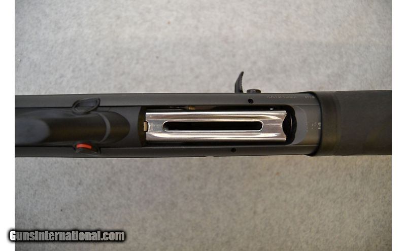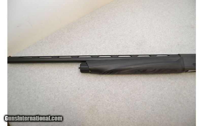 Description: Very good condition overall. The stock has a few rubs that manifest as lines of shine in a few spots but most are invisible under normal light. Metal is good and clean save for a fine scratch on the barrel that runs about 2½" down the left side from the muzzle and another on the other side. A working shotgun that should last a great number of seasons yet. 12 Gauge SOLD Metal Condition: Good to very good. Wood Condition: Furniture is in very good condition. Bore Condition: Excellent. Mirror shine and no deformities. Barrels: 26" Satin blued with ventilated rib. Triggers: Nickel plated with smooth surface. Stock Dimensions: Matte black synthetic with Kick-Off system and a 14½" LOP. Fore End: Matte black synthetic with rubberized grip area. Butt Pad: Black rubber pad. Weight: 7lbs 14oz Sights: Red front light pipe. Chokes: "Comes with improved cylinder, full, and a Carlson's Cremator long range choke. Item Location: Green Bay |