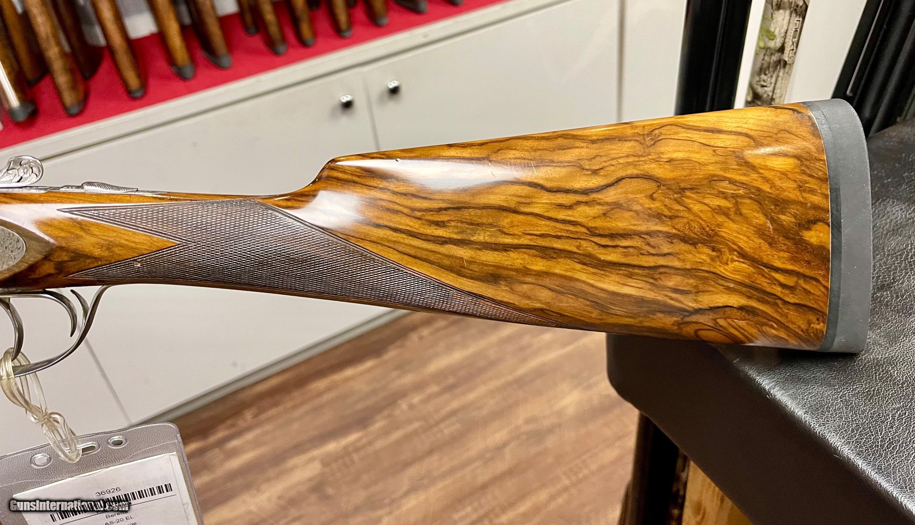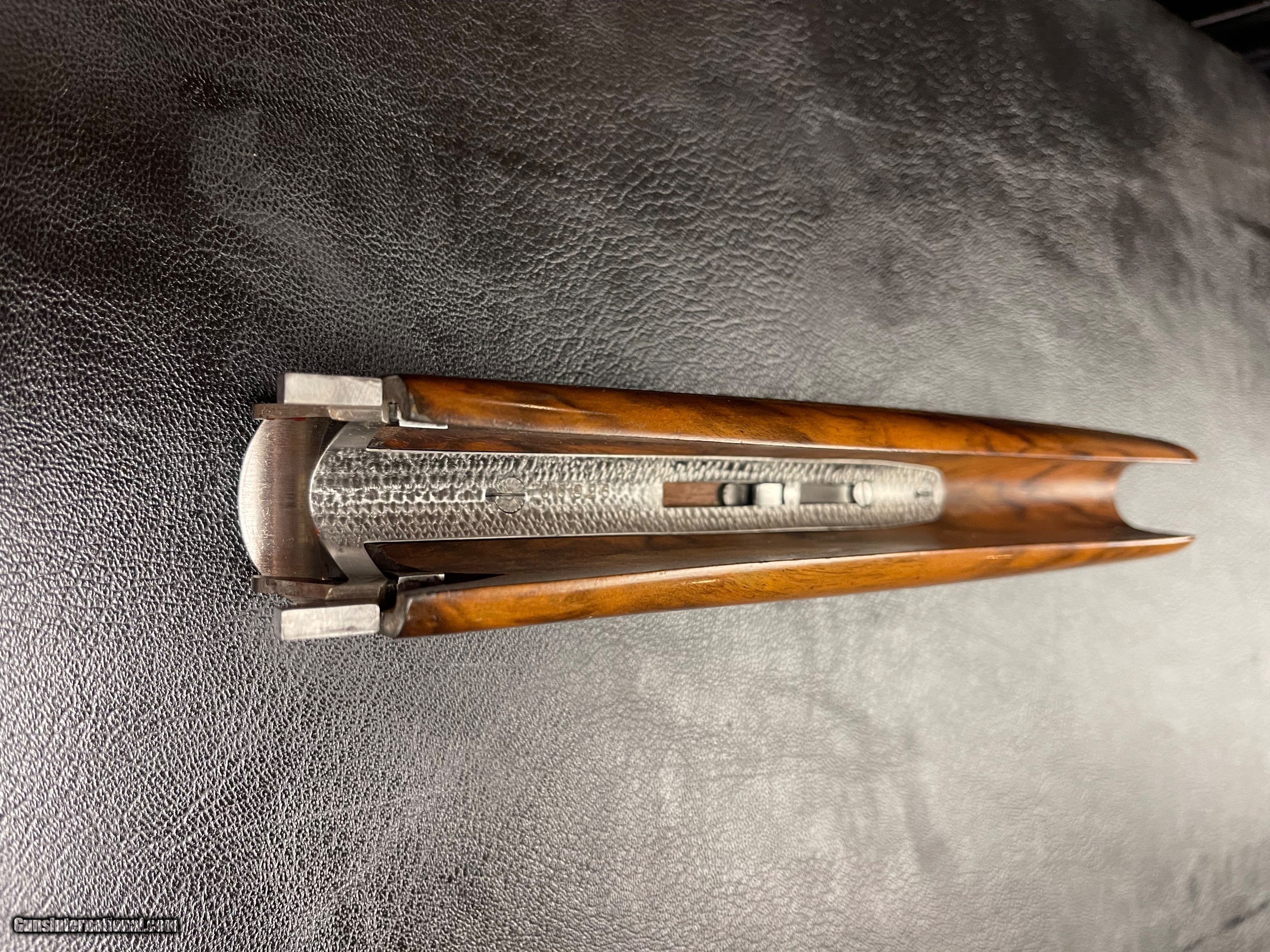 Description: Preowned - Beretta AS-20 EL - Double Trigger - Cross Bolt Action - Sidelate receiver with hand engraved game scenes > Pintails, Pheasants, and Quail. Long bottom tang. 20ga 28" fixed choke C/IC barrel with ventilated rib. Right handed straight English stock with a LOP of 14 7/16". Pierced top lever with gold crown on top. Date stamped (BB) 1992. Overall this gun is a very sweet smooth action 20ga Field gun by Beretta. Weighing in at 5lb 6oz total weight. Some handling marks through out stock and minimal blueing wear. Americase included. SOLD Shotgun Gauge: 20 Gauge Manufacturer: Beretta Model: AS-20 EL Barrel Length: 28” |