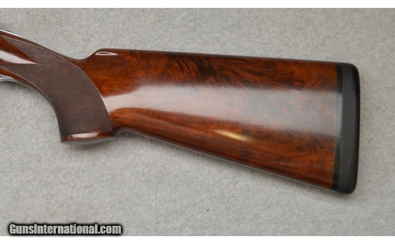 Description: Manufactured from 1992 to 1999, this shotgun features a 29 1/2 inch vent rib barrel with double bead sights, chambered for 2 3/4 inch shells with Full & IC choke tubes installed, and 5 additional choke tubes included. The length of pull is 14 3/4 inches. The receiver is engraved on both sides with a gold washed "PB" encircled in a wreath, the bottom has the script signature, "ASE 90", and the Beretta logo, and the trigger guard has "TRAP", all with a gold wash. It is fitted with a fancy checkered forearm and pistol grip stock with a black Decelerator recoil pad. Includes hard case containing an extra trigger assembly, tool, and five additional choke tubes. 12 Gauge SOLD Chambers: 2 3/4 Metal Condition: "Excellent, Minus wear on ends of barrel and under handguard Wood Condition: "Excellent, minus minor blemishes on cheek rest and pommel Bore Condition: Clean Barrels: 29 1/2 Stock Dimensions: 14 3/4" LOP Weight: 8 LB 14 OZ Chokes: Full & IC Item Location: Fort Worth, TX |