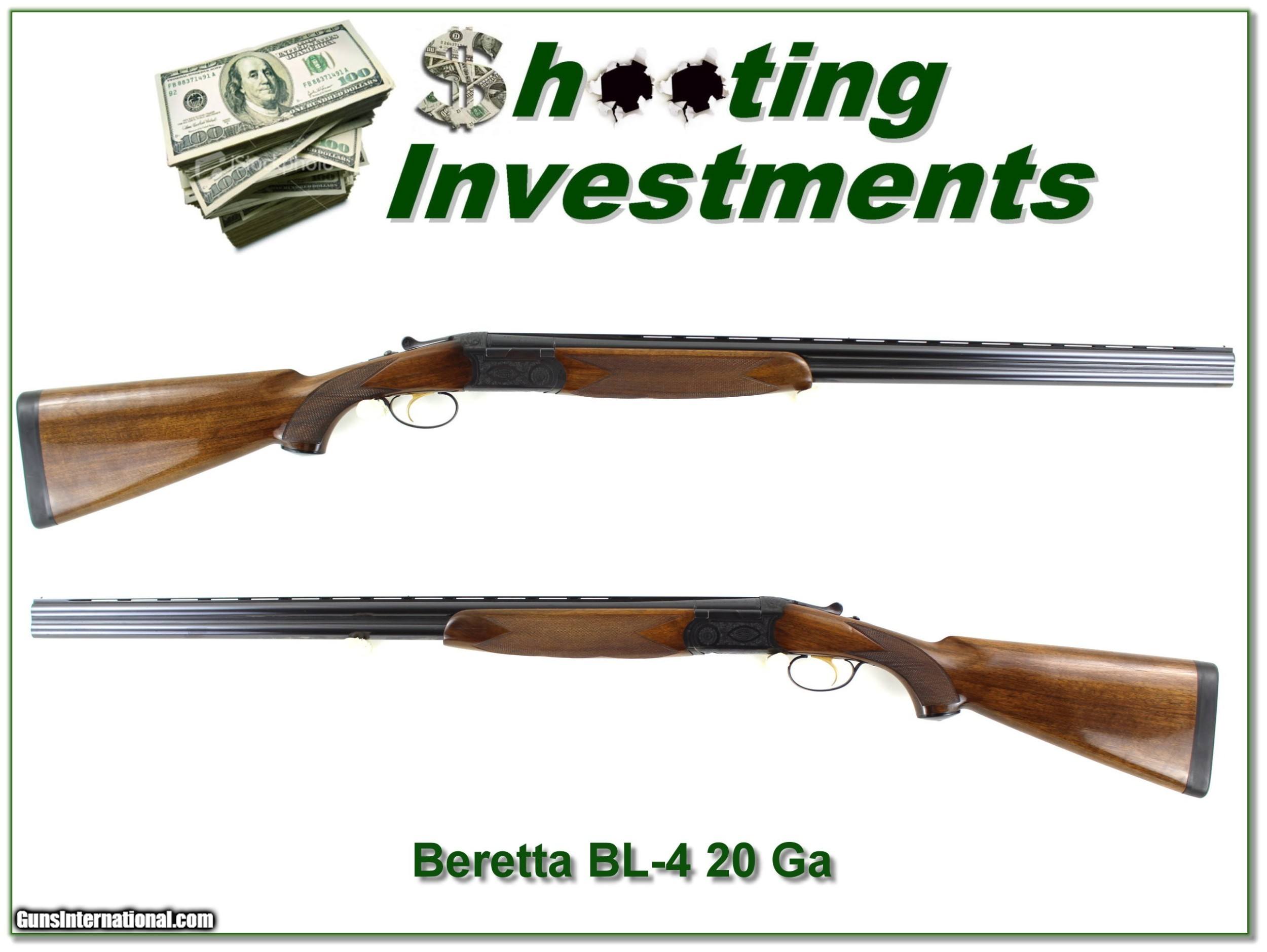Description: This is a very nice and hard to find Beretta BL-4 in 20 gauge. It locks tight and has even harder to find 28in barrels choked IC and Full. The LOP is an extended 14.75in over recoil pad. I find only a few minor handing marks. I am selling this one on consignment and as such lay-a-way can’t be used. It does of course have the standard 3-day inspection. Shipping and insurance is $39. Please email me with any questions or larger pictures. (Consign your quality firearms with Shooting Investments for only 12%! Let me know if you have any you would like to sell!) 20-0632 Payment: Payment is by Money Order, Cashiers Check or Personal Check. I can now also accept Credit Cards (MasterCard, Visa, Discover & American Express) with a 3% convenience fee. Shipping: The shipping charge will be listed in each description. It is $39 for most firearms. Some heavy guns or those insured for over $2000 will be higher. Shipments to Alaska and Hawaii are higher because air shipment is required. Most firearms are shipped on Tuesday and Thursday and usually in 5 days of receipt of payment. We package all shipments carefully and insure them. Optics are shipped Priority Mail and most other non-firearm shipments are shipped First Class. Returns: Our return policy is simple. If for any reason you are not pleased with your purchase, you may return your item for a full refund of purchase price. Ammunition cannot be returned. It is important to us that you are happy. Guns cannot be fired or dissembled before returning them and they must be returned in the same condition as received. Notification of a return must occur with-in 3 days of receipt at your dealer. Shipping, convenience and dealer fees are not refundable and are the responsibility of the buyer. Lay-a-way: If needed, we offer a 60 day lay-a-way option on most firearms. It is 1/3 now, 1/3 in 30 days and 1/3 in 60 days. Lay-a-way firearm sales are final and if not completed the first payment cannot be returned. Consigning your firearms with Shooting Investments: We will help you get top dollar for your firearms. While most local guns shops charge 20% or more, our fee is only 12% with a minimum of $75. At your local gun shop it might take months to sell. Selling on-line provides instant access to thousands of interested buyers. You won’t find any other on-line dealer willing to sell your firearms for only 12% or listing every gun on 3 separate s. Selling through an House typically costs the seller 15% and the buyer an addition 15% (so 30%) and you have to wait several months to sell and longer to receive funds. If properly priced, we will sell your firearms in a few weeks. Send us an email or give us a call and we’ll explain how easy it is for you to get top dollar. Trading: Trading for use is really just buying your gun to re-sell. If you have a gun you want to trade, please email a picture and we will let you know what we can give or it. You will always get more if we sell it for you on consignment. Help for California Buyers: We are happy to ship to California. It is the buyer’s responsibility to make sure any item you buy is legal in your state. We are also happy to help with your purchase of a firearm from someone other than us. If you see a gun you would like to buy but the seller can’t or won’t ship to California they can ship to use and we’ll then ship it to your California dealer. The cost for this service is only $30 + shipping. Let us know if we can help! SOLD |