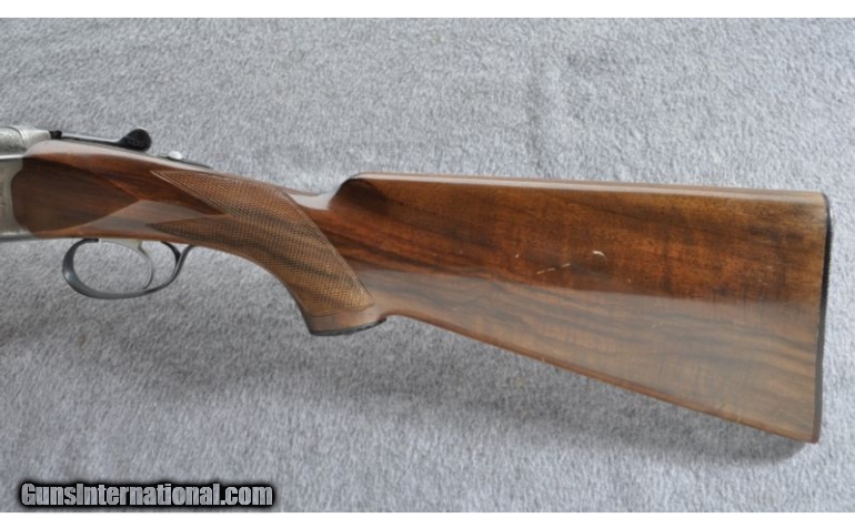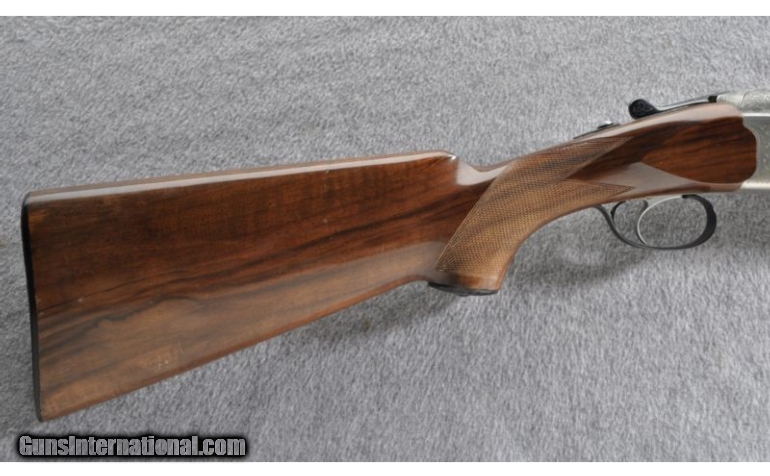 Description: SOLD Caliber Info: 12 Gauge Chambers: 2 3/4 Metal Condition: Showing some handling wear and discoloration at the receiver. Some blue wear shows at the top lever. Wood Condition: Some dents and scratches appear at the butt stock Bore Condition: Bright Barrels: 28" Vented Rib with Auto Ejectors Triggers: Single Selective Stock: Checkered pistol grip with cap Stock Dimensions: 14" LOP Fore End: Checkered Butt Pad: Beretta composite with logo Weight: 7 lbs 4 oz Sights: Metallic bead front Chokes: Fixed Full & Modified Item Location: Grand Junction, CO |