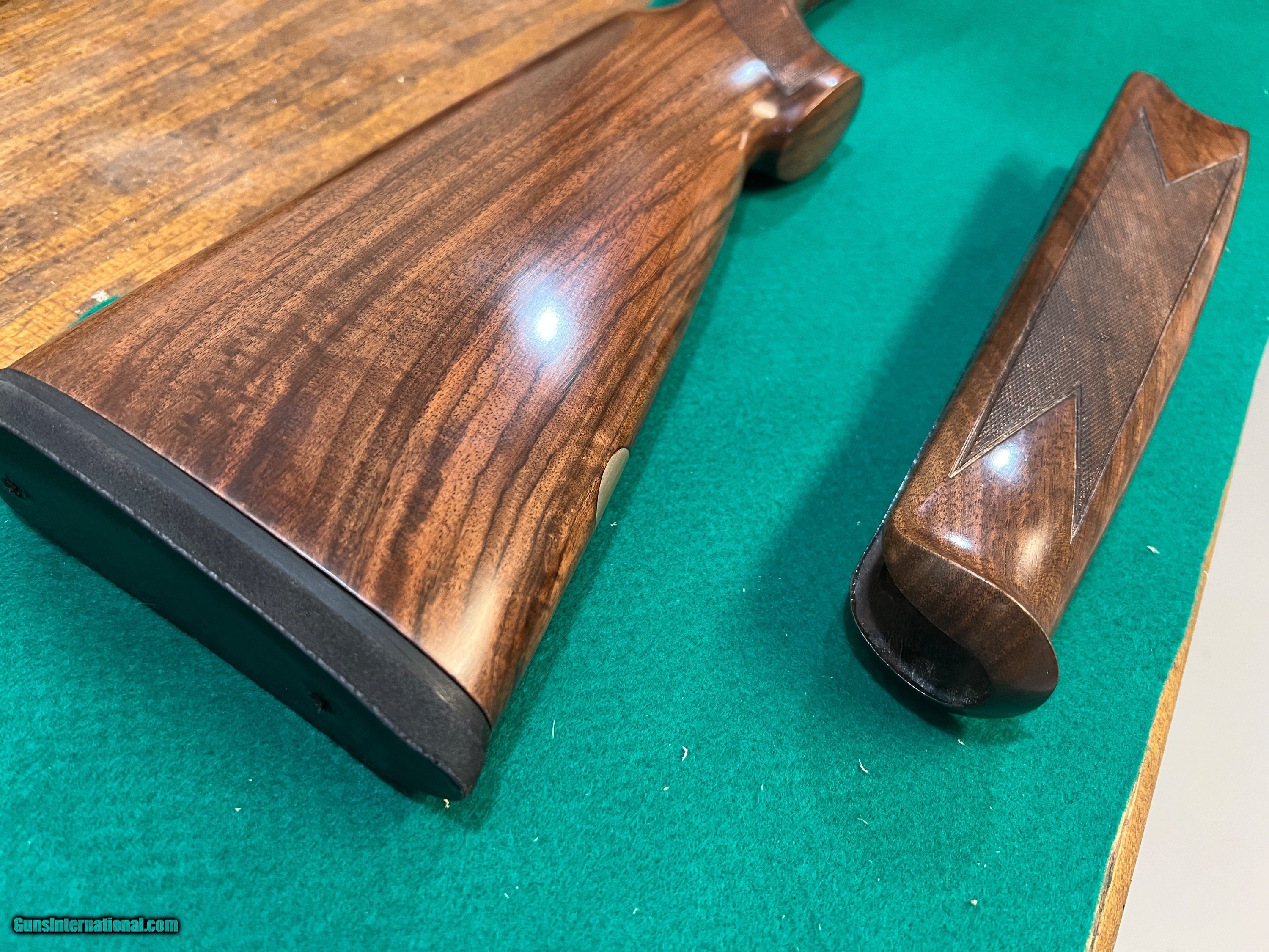 Description: Beretta Gold Pigeon II 12 gauge fully engraved nickel finish with beautiful side plates 28" barrel fixed chokes IC-M (.10 - .20) comes with two stock sets an English style exhibition grade straight grip and a level three standard grip stock set in like new condition with leather covered pad.The gun is in pristine condition with almost no sign of use, cased in it's original case. For additional questions or to purchase call/text 512-595-1248 Overall a beautiful shotgun with two choices of stock configuration is excellent condition at a very attractive price . We buy Krieghoff Perazzi and English sporting rifles in any condition Shotgun Gauge: 12 Gauge Manufacturer: Beretta Model: Gold Pigeon II Barrel Length: 28” Condition: 100% Bore Condition: 100% Stock: Two stock sets LOP: 14-1/2” Engraving: Yes Case: Yes Item Location: North Carolina Price: $3,600.00 Contact Seller |