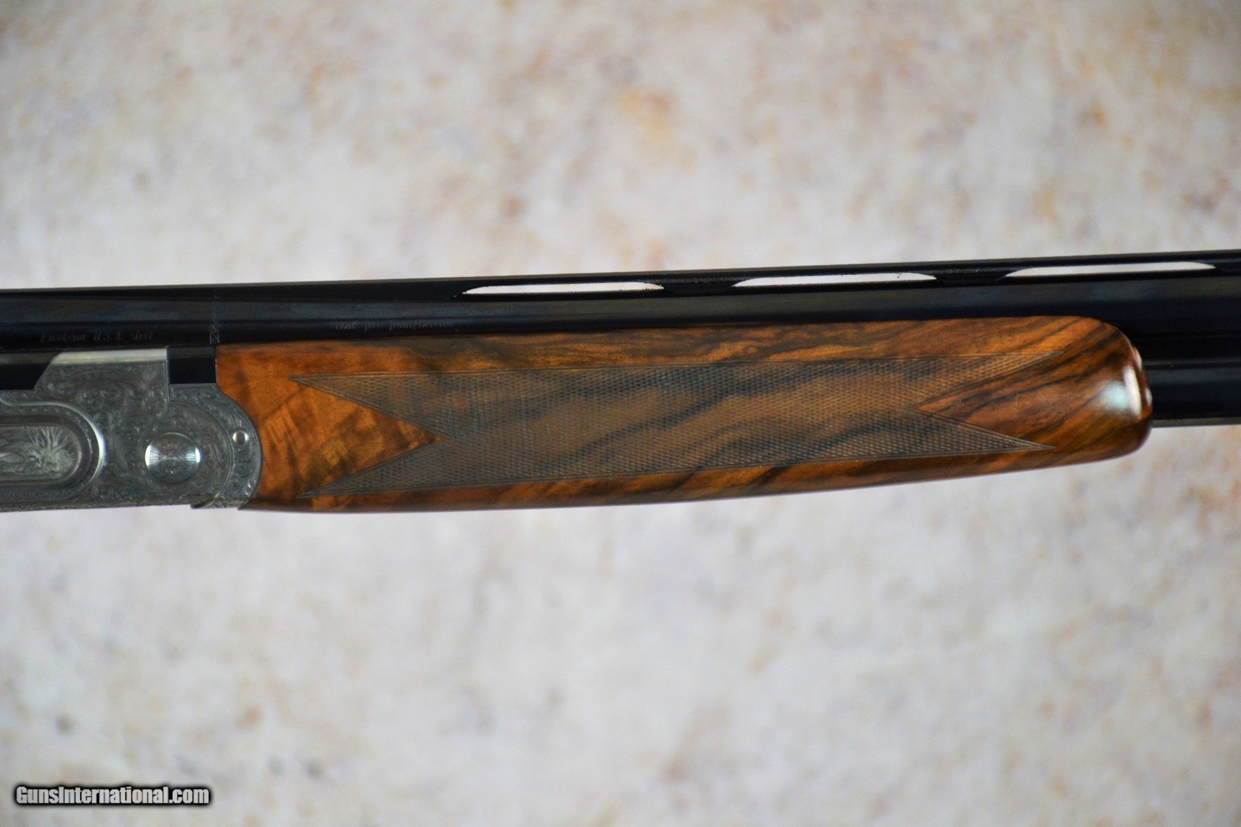 Description: Beretta Jubilee Sporting 12g 30" SN#:GIU355C~~Pre-Owned~~ Everything you would expect in a Jubilee. Manufactured in 2014; metal is in 100% condition-minor handling marks on the wood. Game scene engraving, exhibition grade wood with a leather covered pad. Federal firearms laws do not allow us to ship firearms directly to you. Please contact us for ordering and shipping information. Gauge: 12g Barrel Weight: 3lb 4oz Barrel Length: 30" Chamber: 3" Bore Diameter: 18.4 Chokes: Flush Mobil Chokes Rib: 10mm Sporting Tapered Rib Stock Dimensions Drop at nose: 1 3/8" Drop at heel: 2 3/16 Cast Off: 1/8 RH Forend Style: English Sporting Length of pull: 14" Comb: Fixed Weight: 7lb 16oz SOLD |