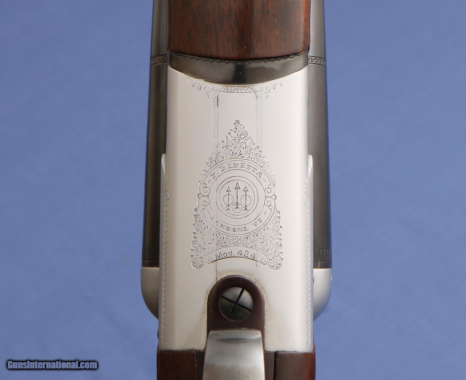 Description: 1982 - Beretta 424 12ga - 28" 2-3/4" M / F (.020 / 045), Extractors, Automatic Safety, Front Trigger Articulated, LOP 14" Drop 1-1/2" to 2-1/2", Slight Cast Off, Weight 6 lbs. 6 oz. Excellent used gun. Metal is 98+% showing little evidence of use. Stock has a few marks from handling - not in the field. The 42x Series are the best of the Beretta Box Lock SxS Guns.