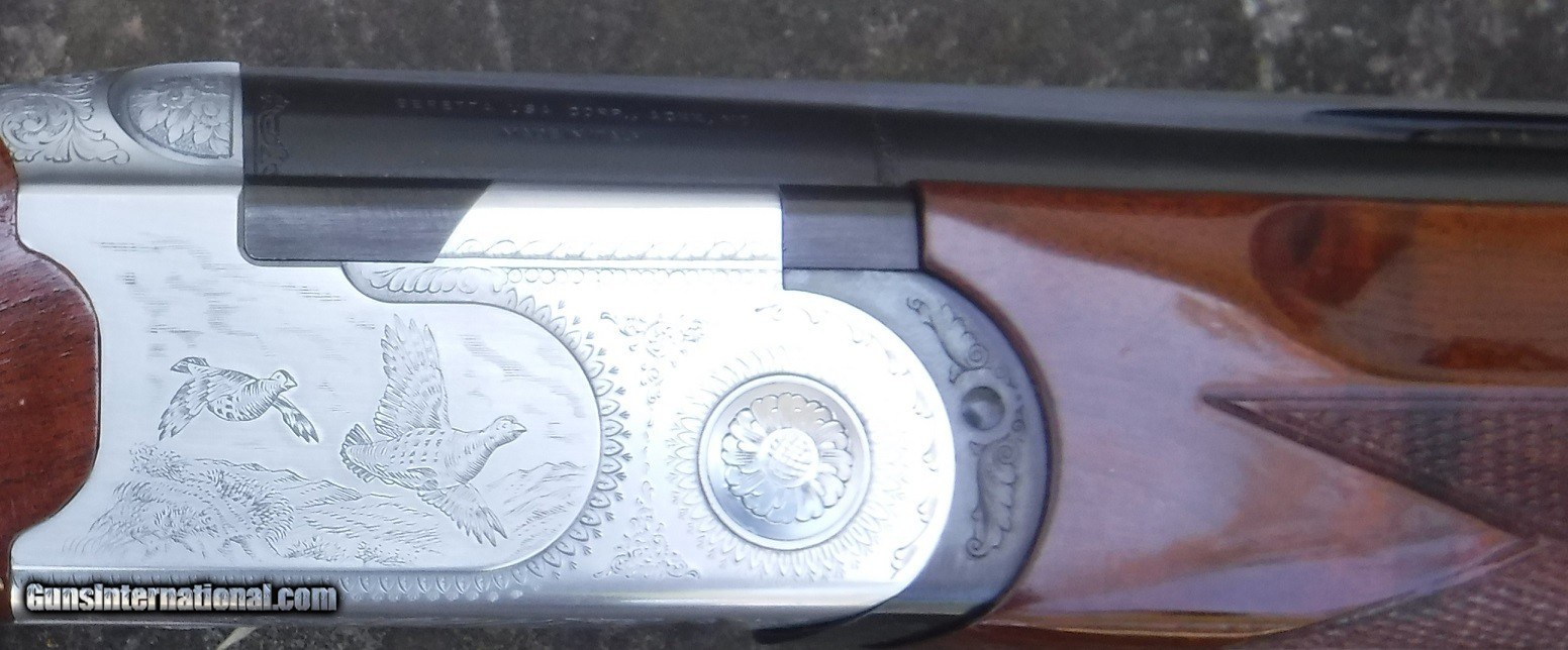 Description: BERETTA MODEL S687 20 GA. O/U - 28" VENT RIB BARRELS WITH 5 CHOKE TUBES - PISTOL GRIP STOCK - LOP 14 1/4" OVER NON FACTORY PAD - SINGLE SELECTIVE TRIGGER - COIN FINISH RECEIVER WITH GAME SCENENENGRAVING - MANUAL SAFTEY - DROP COMB 1 3/8" - DROP COMB 2 1/4" - COMES WITH FACTORY PLASTIC HARD CASE. GUN IS IN EXCELLENT SHAPE EXCEPT FOR SCRATCH ON BUTT STOCK. SOLD |