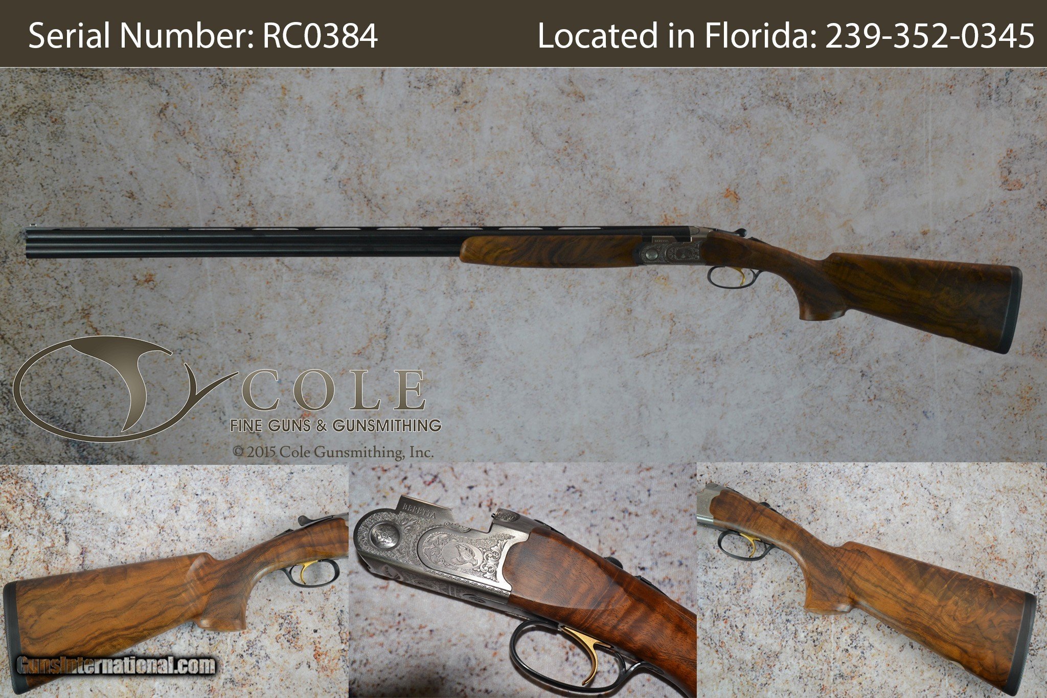About Us: Family owned since 1985, Cole Fine Guns & Gunsmithing is the #1 Beretta Premium Dealer in the USA and a Beretta Authorized Warranty Service Center. We are a stocking Dealer for Perazzi (Authorized Factory Service Center), Blaser (Authorized Factory Service Center), Zoli (Authorized Factory Service Center), Rizzini (Authorized Factory Warranty Service Center), Caesar Guerini, Syren, Fabarm, and Benelli. We are TSK USA, importer, and distributor of TSK Stocks, The Fully Adjustable Stock.