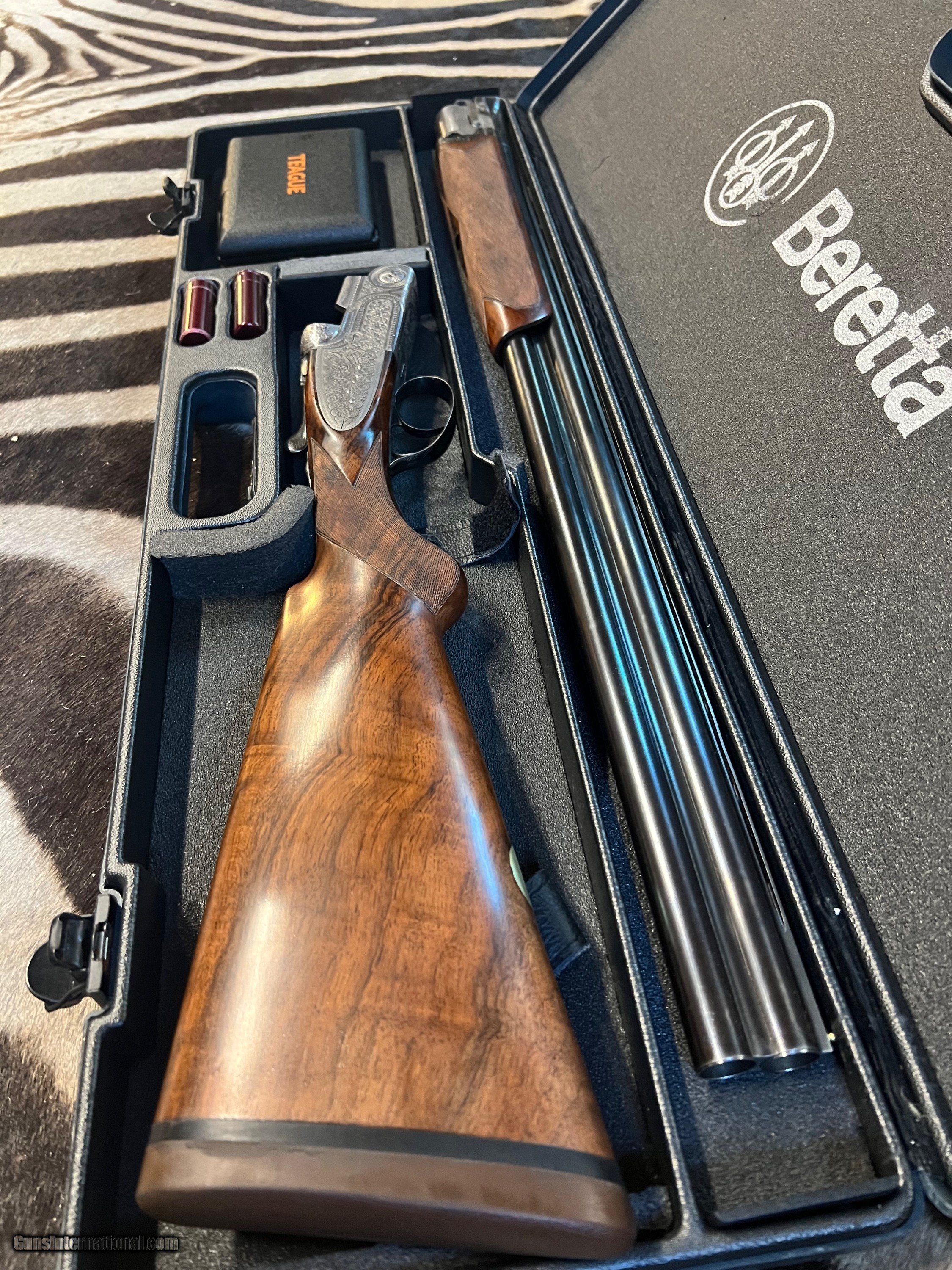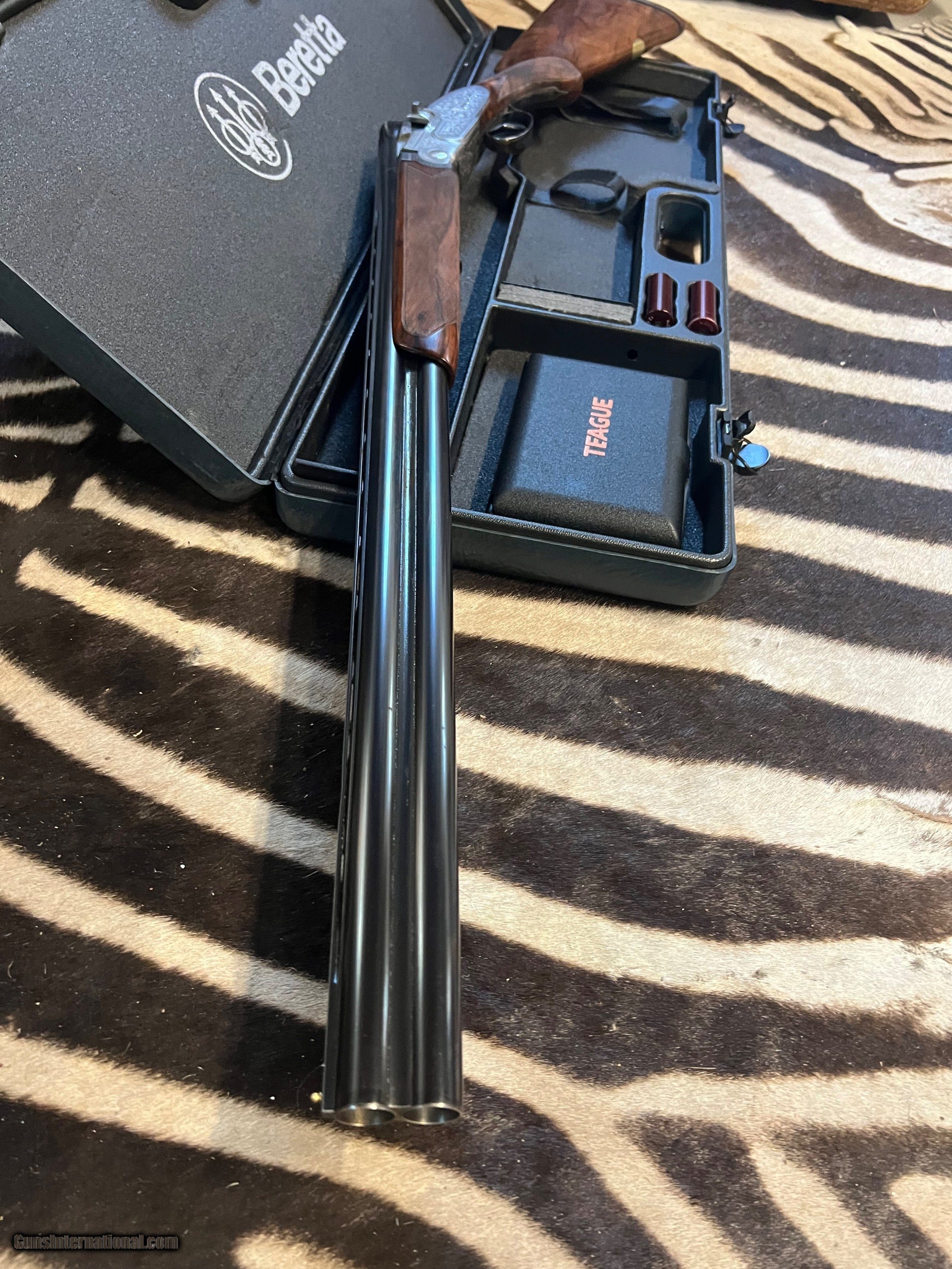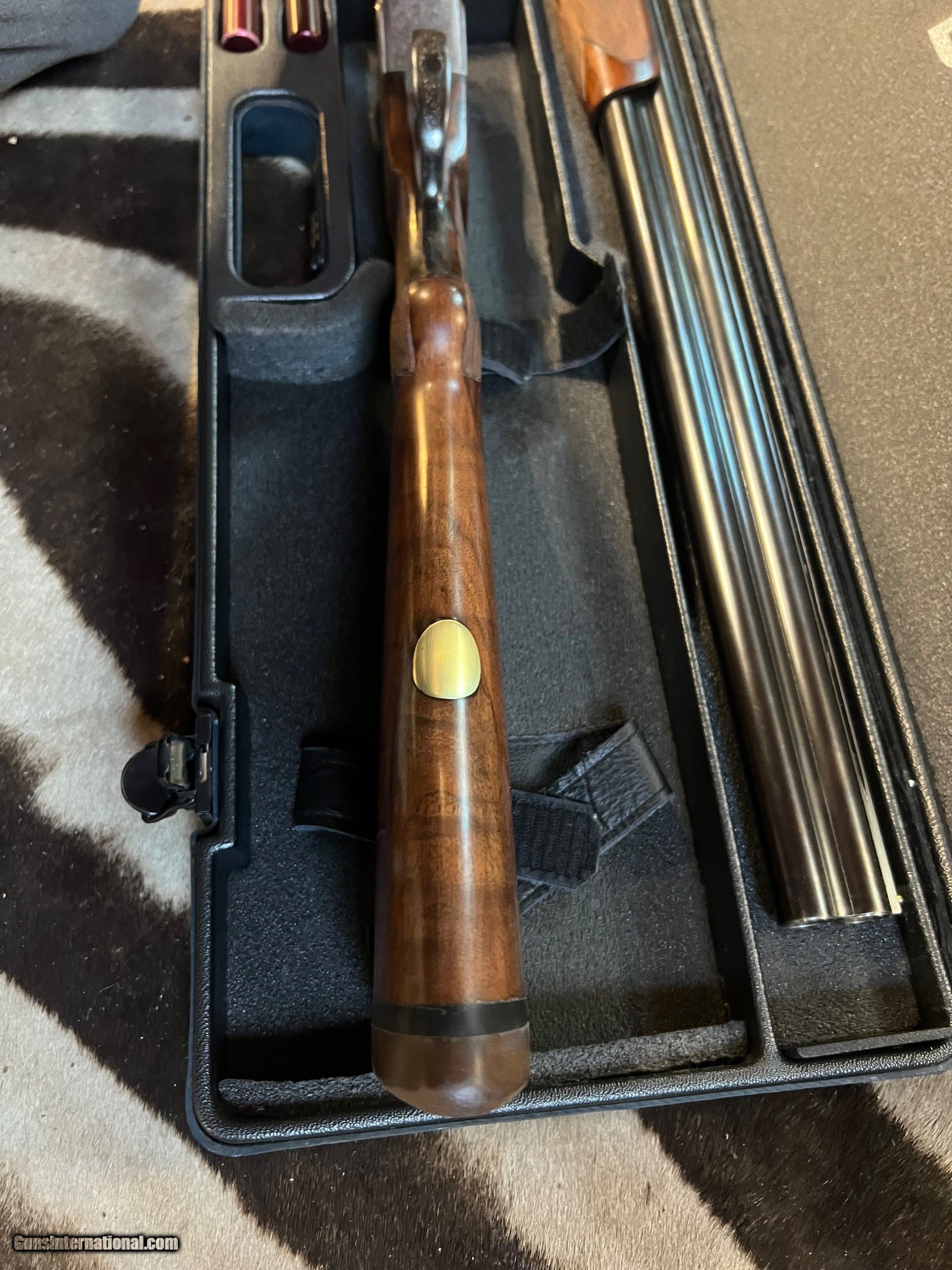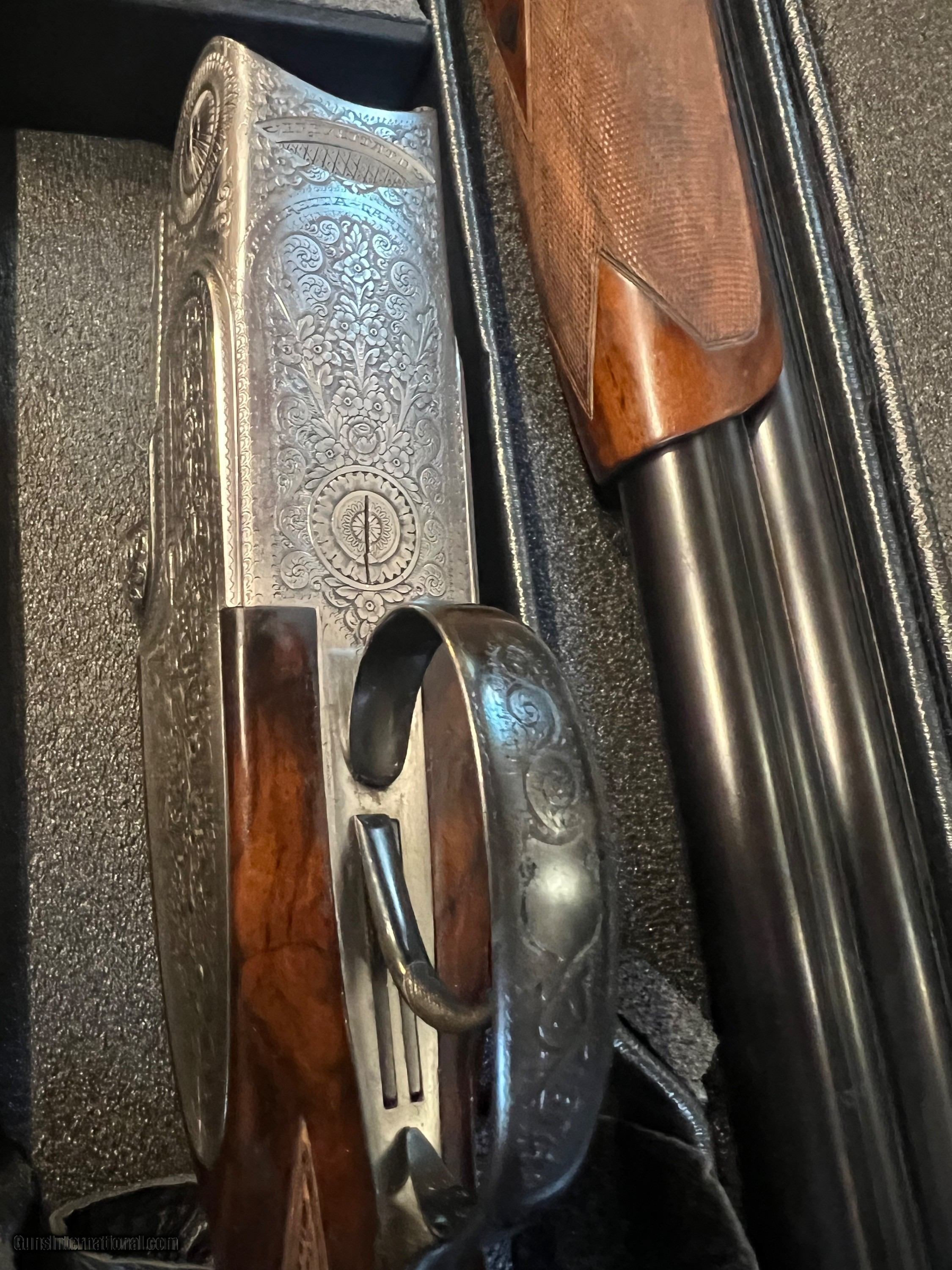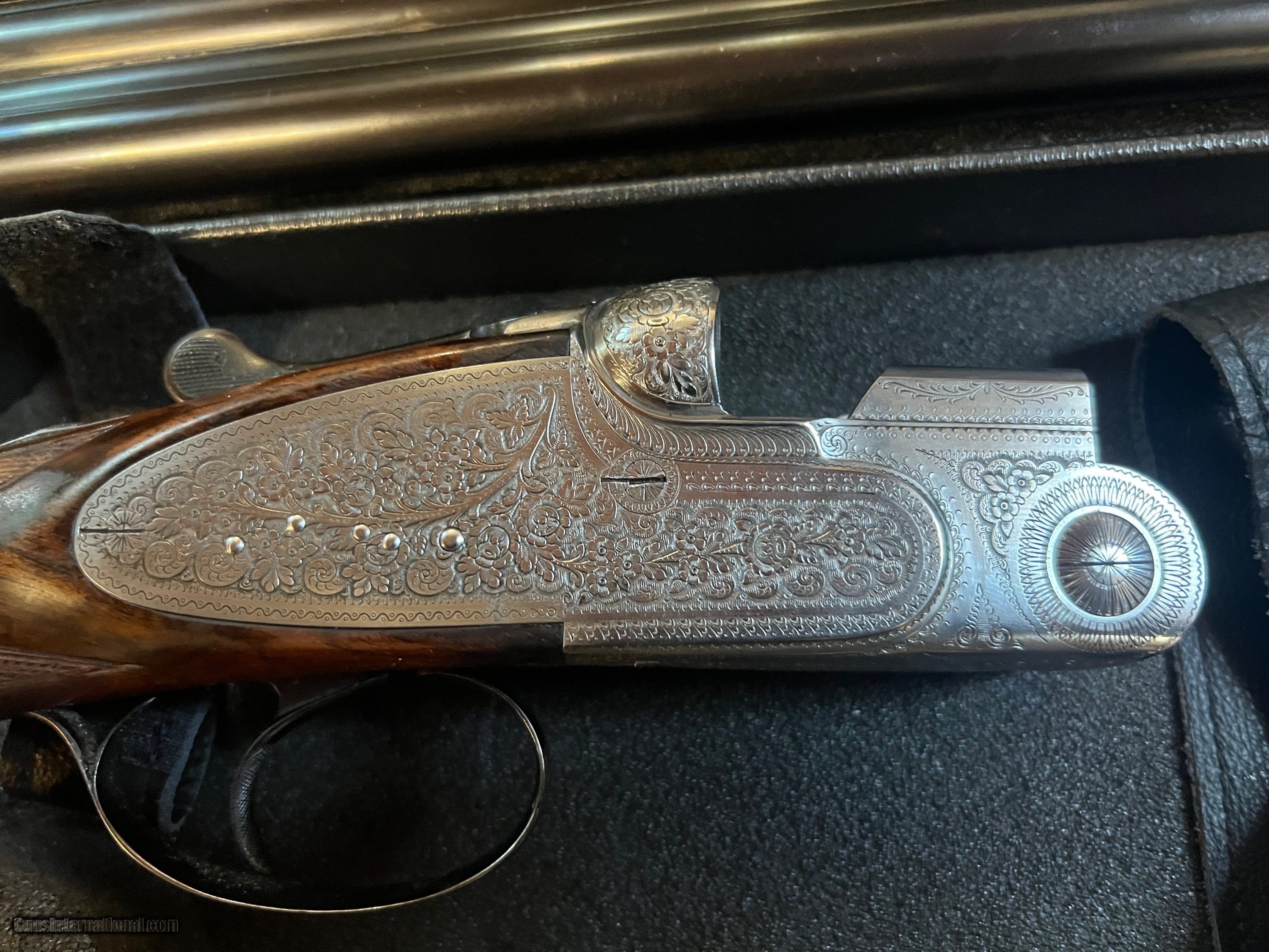 Description: Beretta S3 True Sidelock 28" barrel with Teague removal chokes (full set) Beautiful Circassian Walnut stock DC 1-3/8, DH 2-1/8 , 14-3/4" LOP right hand cast. Beautiful rose and scroll full coverage hand engravings signed by master engraver Ferruccio Iora. Metal and wood remain in 90% condition with very little sign of use. Cased in original Beretta case with full set of Teague chokes. A beautiful example of hand built true Sidelock Beretta S3 shotgun at a very attractive price. For additional information or to purchase call text 512-595-1248 Quality trades like Krieghoff Perazzi and English sporting rifles welcomed Manufacturer: Beretta Model: S3 Barrel Length: 28” Chambers: 2-3/4” Ejectors: Yes Condition: 90% Bore Condition: 100% Barrels: Boehler Antinit Steel Barrel Type: Sporting/hunting Action: Sidelock Triggers: Single Stock Comb: 1-3/8” Stock Heel: 2-1/8” Stock Cast: Right LOP: 14-3/4” Weight: 7 pounds 8 ounces Chokes: Removable Teague Engraving: Full coverage Rose and scroll by F. Iora Case: Factory Item Location: North Carolina Price: $7,600.00 Contact Seller |