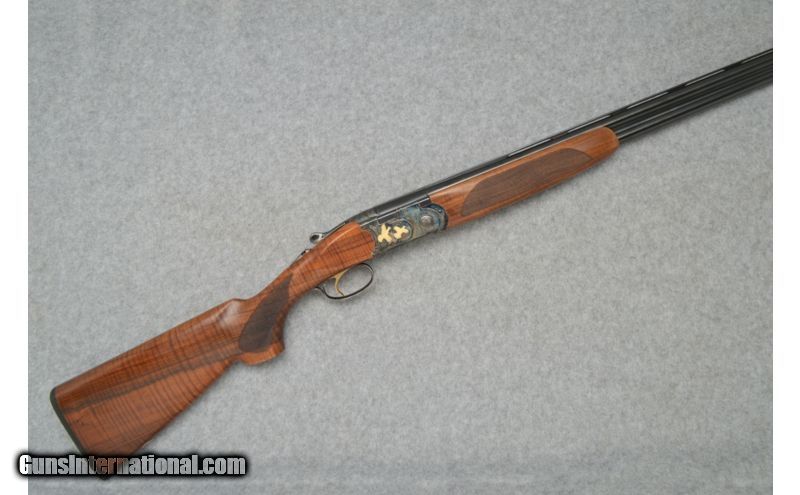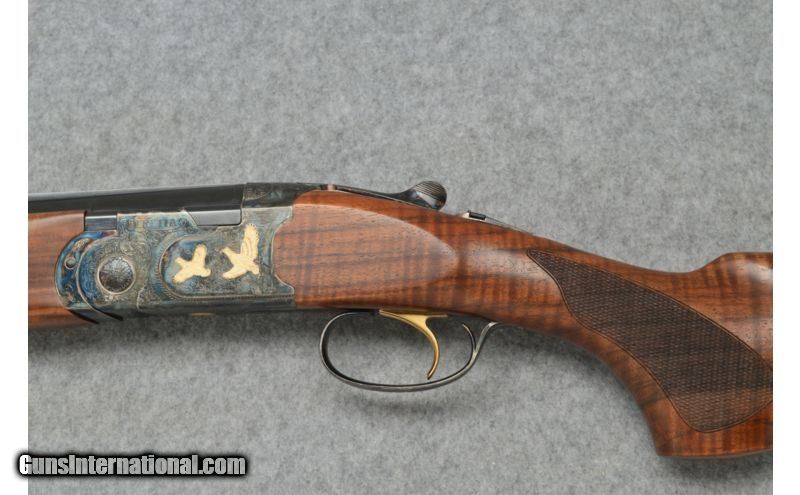Description: Used, but looks like it was never even taken out of the box! An absolutely beautiful fiddleback walnut stock paired with gorgeous color case hardening and engraving make a very attactive shotgun in an excellent gauge. SOLD Manufacturer: Circa 2012 Caliber Info: 28 Ga. Chambers: 2-3/4 Metal Condition: Excellent Wood Condition: Excellent Bore Condition: Excellent: Clean & Bright Barrels: 28" Blued with Vent. Rib Triggers: Smooth, Gold Stock: Checkered Pistol Grip; Fiddleback High Grade Walnut Stock Dimensions: LOP: 14 3/8" DAC: 1 3/8" DAH: 1 13/16 Fore End: Checkered High Grade Walnut Butt Pad: Textured Black Rubber with Beretta Logo Weight: 6 Lbs. 2 oz. Sights: Front: Silver Bead Chokes: Modified / Improved Cylinder Extras: Includes Hard Case, Manual, Choke Tool, Sling Attachment Pieces, 2 extra Butt Pads, and 5 Chokes Item Location: Sun Prairie, WI |
