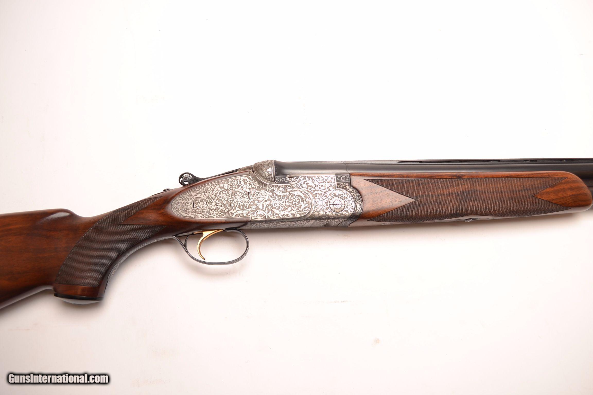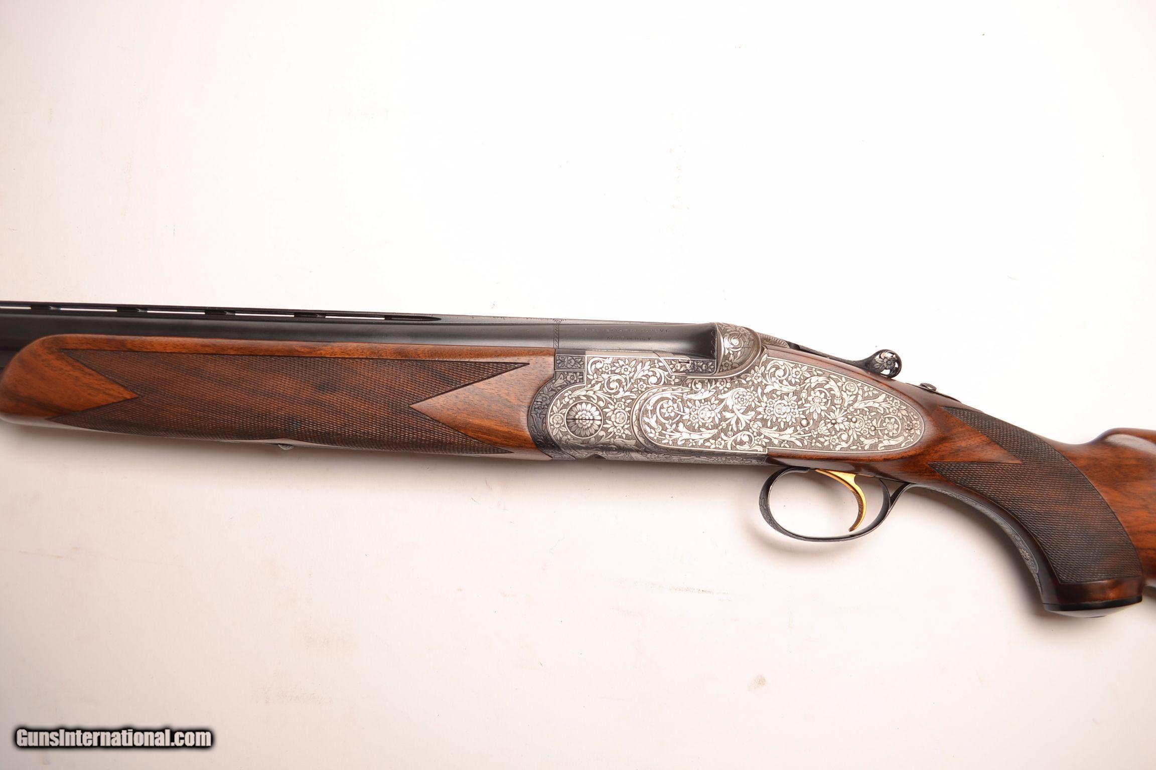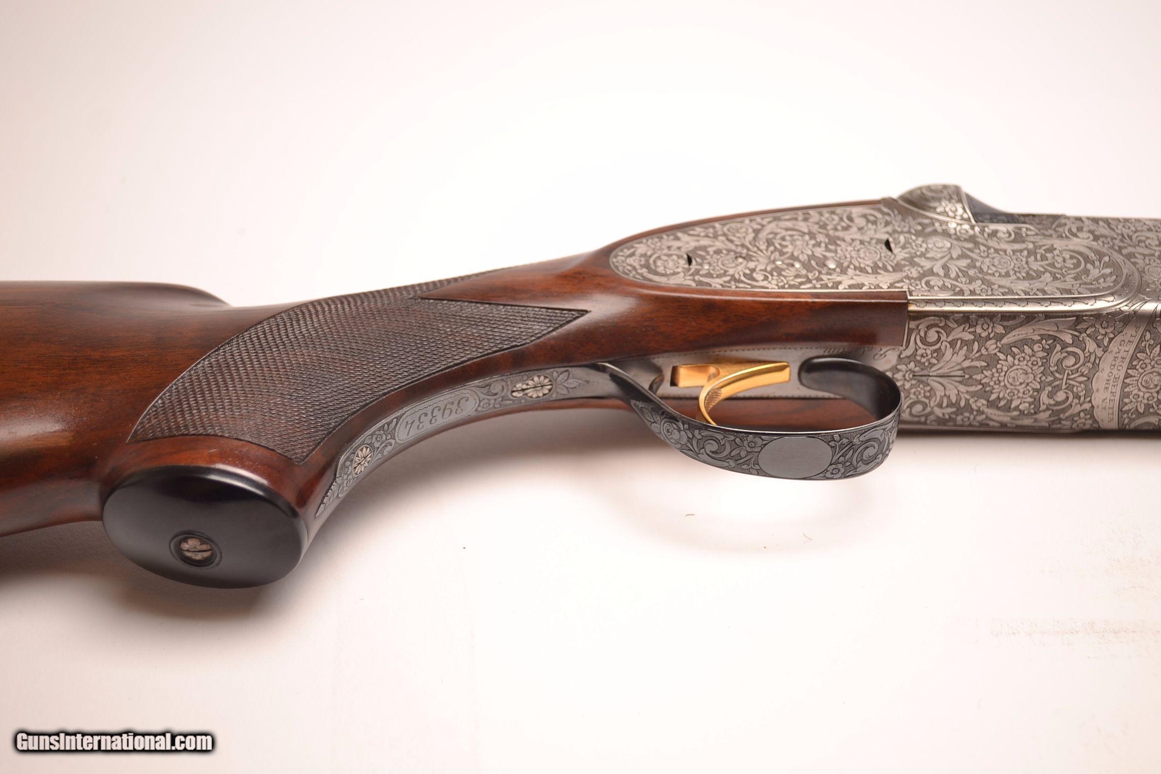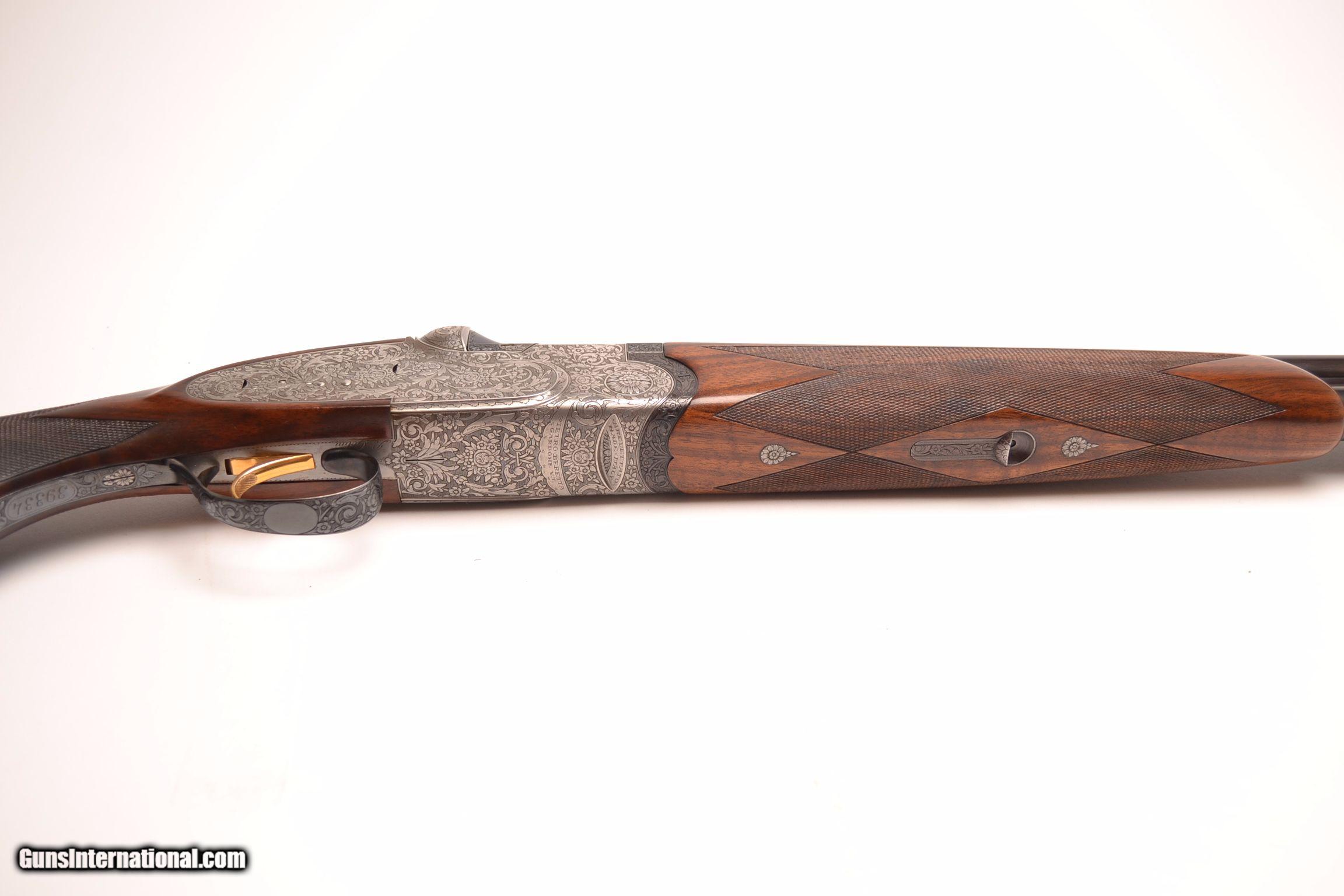 Description: Beretta - SO5 EELL, Two Barrel Set, 12ga., 26” barrels choked IC/M, 28” barrels choked M/F, beautiful European walnut capped pistol grip stock, checkered butt, gold single selective trigger, automatic ejectors, ventilated ribs, slender hunting forend, full sidelock gun with hidden fastener hand detachable locks, magnificent full coverage relief ornamental floral engraving over a coined finish, signed by R. Goliui, the gun remains in excellent overall condition with very minor handling marks, a wonderful example, ideal configuration, cased in leather trunk case, available for immediate delivery.