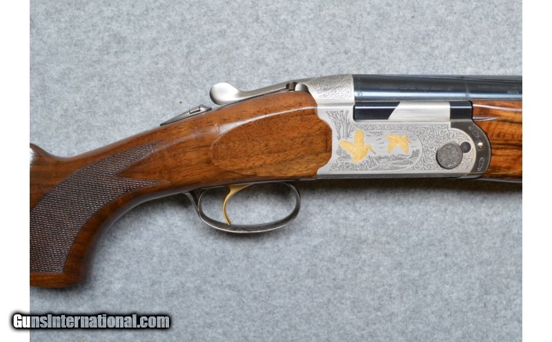 Description: Has a low profile aluminum alloy receiver with titanium breech face insert; game scene engraving. SOLD Manufacturer: SN:N79868B Caliber Info: 12 Gauge Chambers: 2 3/4 Metal Condition: Very Good Condition Wood Condition: Very Good Condition Bore Condition: Bright And Shiny Barrels: 28" .Vented Rib Barrel Triggers: Single Selective Trigger Stock: Checkered Pistol Grip Stock Dimensions: 14 1/4" LOP Fore End: Checkered Schnabel Butt Pad: Beretta Recoil Pad Weight: 5 lbs. 14 ozs. Sights: Front Green Bar, Chokes: Mobilchoke Tubes Item Location: Hazelwood, MO |