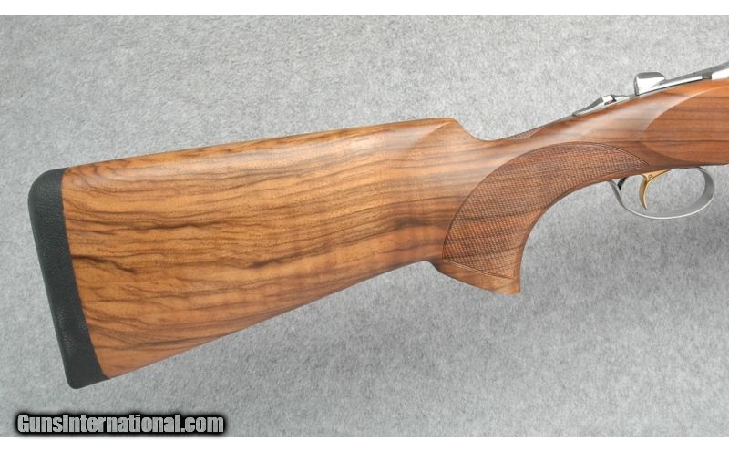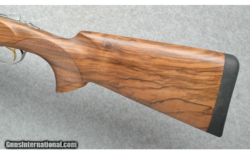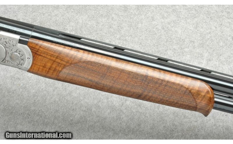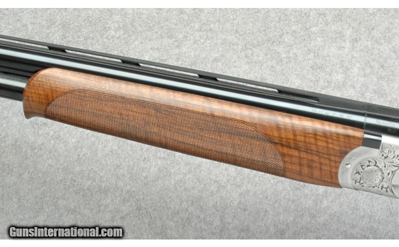 Description: Mint Condition. Coin finished Monoblock receiver with cross-bolt, engraved scroll and game scene. Nicely figured high grade walnut. SOLD Caliber Info: 12 Gauge Chambers: 3 Inch Metal Condition: Excellent Wood Condition: Excellent Barrels: 30 Inch Triggers: SST Stock: Checkered Pistol Grip Stock with Right Palm Swell, High Grade Wood Stock Dimensions: 14 1/2" LOP, 2 3/8" DAH, 1 3/8"" DAC, Suggestion of Cast-off Fore End: Schnabel Butt Pad: Beretta recoil pad Weight: 8 Lbs 3 Ozs Sights: Vent Top and Side Rib with White Bead Front Chokes: 5 Optima Choke Tubes.with Tool Extras: Makers ABS Travel Case, Chokes, Spare Parts Item Location: Boise, ID |