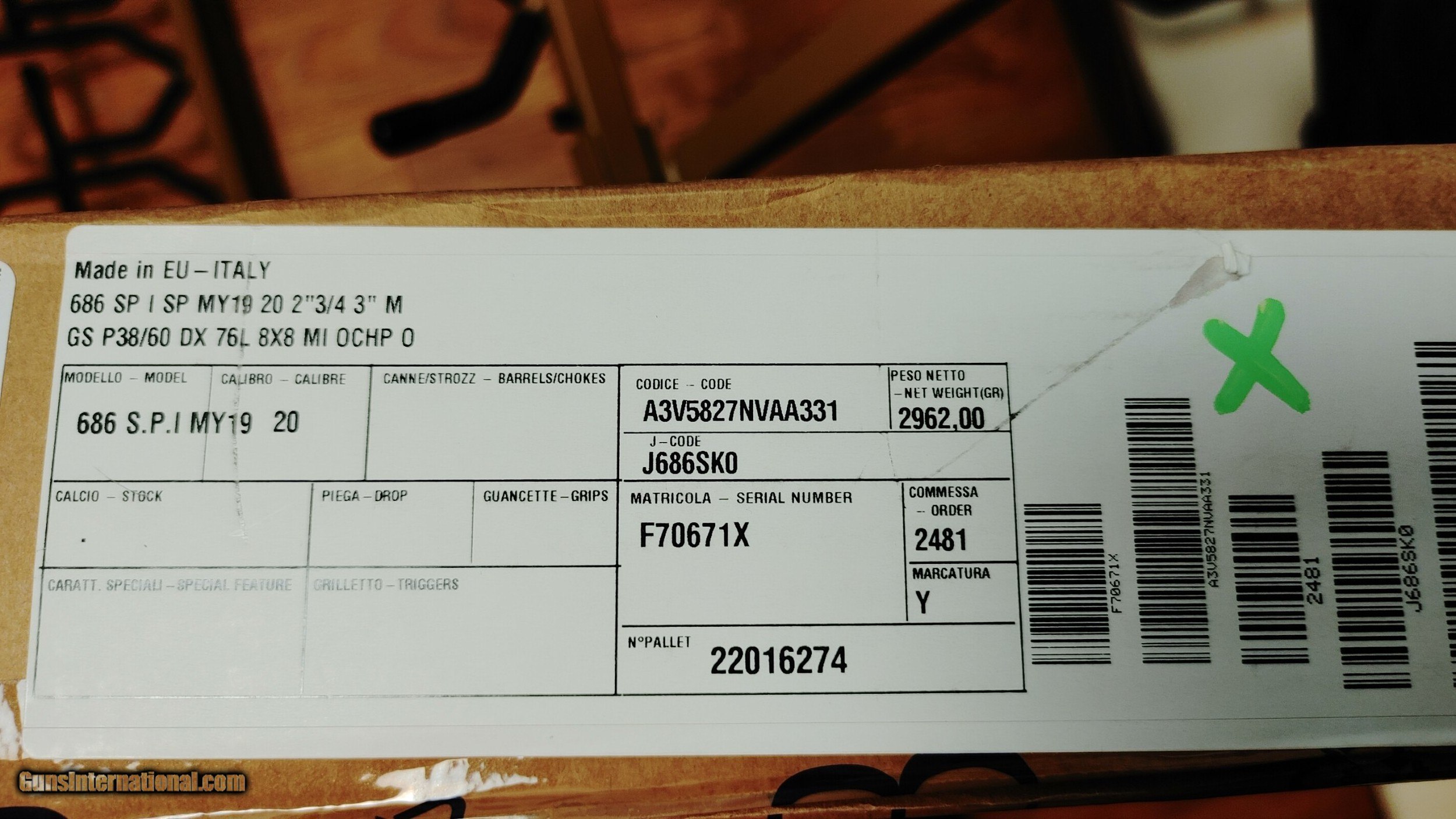 Description: new SILVER PIGEON I SPTNG 20/30 3 J686SK0 SPORTING OPTIMA CHK-HP new in luggage case (MODEL:686 SILVER PIGEON I SPORTING); (ACTION:OVER / UNDER); (SIGHTS:WHITE FRNT BEAD/STEEL MID BEAD); (STOCKFRAMEGRIPS:OIL FINISHED SELECT WALNUT WOOD STOCK); (CHAMBER:3); (BARREL LENGTH:30); (DRILL-TAPPED:FALSE); (CAPACITY:2); (SHOTGUN:SHOTGUN) Buyer pays shipping Millers Gun Center Located in New Castle, Delaware "Home of TAX-Free shopping" No Credit Card Fees Send Gun international inquiry and then call 302-328-9747 to complete your purchase SOLD Serial Number: F70671X |