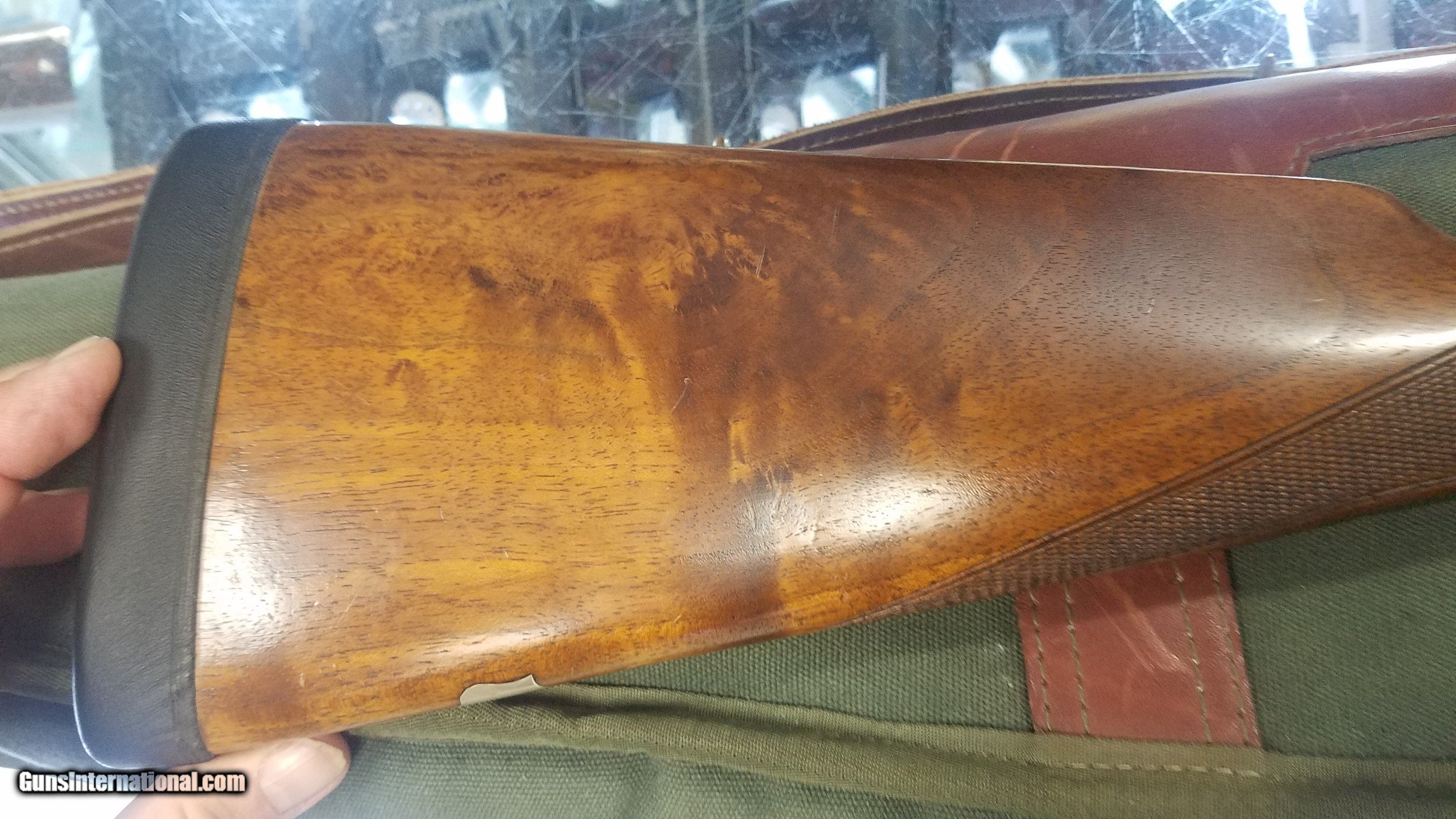 Description: V. Bernardelli Italia 20 ga rebounding modern hammer gun made in 1959. The gun has 26 in barrels with level filed rib and choked ic/mod and extractors. The stock is a straight stock with 15 in Lop over and leather pad and splinter for arm. The wood has a nice figure and the checkering is in excellent shape...gunoverall show only a little use for it's age. She weigh in about 5 3/4 lbs and handles great. Drops are about 1 3/8 x 2 3/8. Fun gun with 2 3/4 chambers shoots modern ammo. $3200 SOLD Curio/Relic: Yes Manufacturer: V Bernardelli Model: Italia Chambers: 2 3/4 Ejectors: No Condition: 95% Metal Condition: 95% Wood Condition: 95% Bore Condition: 99% no pitting Barrels: 26 in Action: Sidelock hammergun Triggers: Double triggers Gauge Info: 20 Stock: English Stock Comb: 1 3/8 Stock Heel: 2 3/8 Fore End: Splinter Butt Pad: Leather pad LOP: 15 on Rib: Level filed Weight: 5 3/4 Manufacture Date: 1959 Choke Left: Mod Choke Right: Ic |