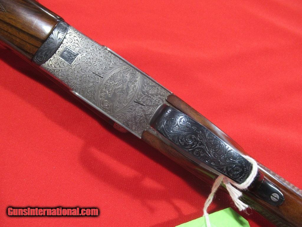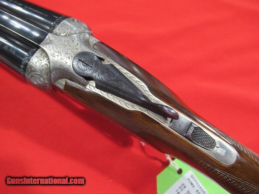 Description: Bernadelli Roma 6E 28ga 25 5/8" -- FULL SIDELOCK GUN WITH EJECTORS, FULL COVERAGE RIBBON AND SCROLL ENGRAVING, SINGLE TRIGGER, STRAIGHT GRIP, BEAVERTAIL FOREND, FACTORY BUTTPLATE, CHOKES HAVE BEEN IMPROVED BY KEN EYSTER OF HERITAGE GUNSMITHS, GUN REMAINS IN NEAR MINT CONDITION. SOLD |