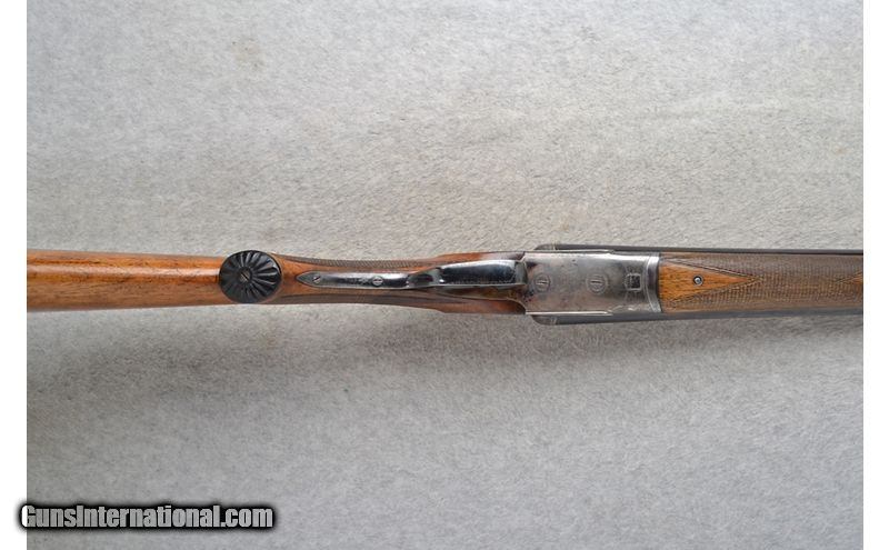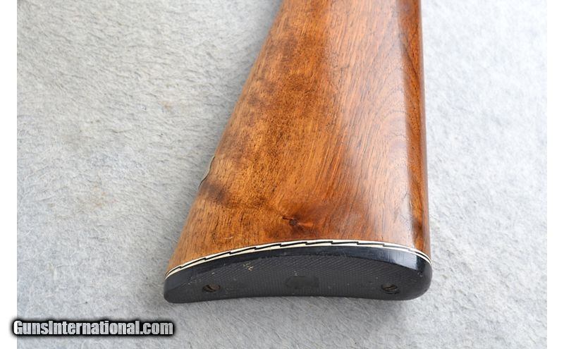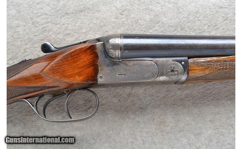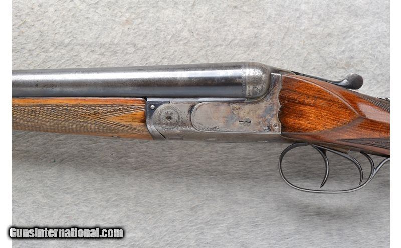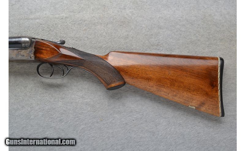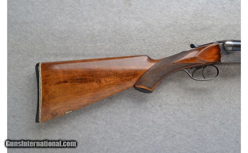 Description: This Bernardelli Model Acciaio Special is a side by side shotgun in 12 Ga. It has 27.5 inch barrels with extractors and a solid rib. a brass bead front sight. With 2 3/4 inch chambers it has fixed Full and Extra Full chokes. The butt stock is a checkered grip walnut pistol grip with a black cap. The forearm is a checkered grip walnut splinter. It has double triggers. The case colord receiver is lightly engraved. 12 Gauge SOLD Chambers: 2 3/4 inch. Metal Condition: Good. Blue wear and handling marks. Wood Condition: Good. Handling marks. Crack left side behind receiver. Bore Condition: Bright and shiny. Barrels: 27.5 inch side by side barrels with extractors and a solid rib. Triggers: Double. Stock Dimensions: LOP 14 1/4 inches. Fore End: Checkered grip walnut splinter. Butt Pad: Checkered black plate. Weight: 6 lb. 14 oz. Sights: Brass bead front. Chokes: Fixed Full and Extra Full. Item Location: Bristol, TN |