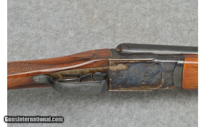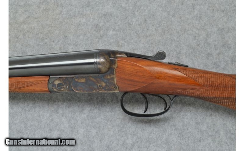 Description: Used. A fine example of a quality made Italian SxS. Beautiful color case hardening on reciever and nice looking wood combine to make a gun that would be great on a fall pheasant or grouse hunt. Includes Original Box. SOLD Caliber Info: 12 Ga. Chambers: 2 3/4" with extractors Metal Condition: Very Good to Excellent; some minor speckling near muzzles and one small scratch on side of left barrel above forearm Wood Condition: Excellent; some small compressions on comb and underside of stock near butt Bore Condition: Excellent; Clean & Bright Barrels: 25" Blued Barrels Triggers: Smooth Blued Dual Triggers Stock: Checkered Walnut Straight Grip Stock Dimensions: LOP: 14 Fore End: Checkered Walnut Butt Pad: Grooved Black Hard Pastic; "Bernardelli Gardone V.T." with Logo Weight: 6 Lbs. 12 oz. Sights: Front: Gold Bead Chokes: MOD / FULL Extras: Includes Original Box Item Location: Sun Prairie, WI |