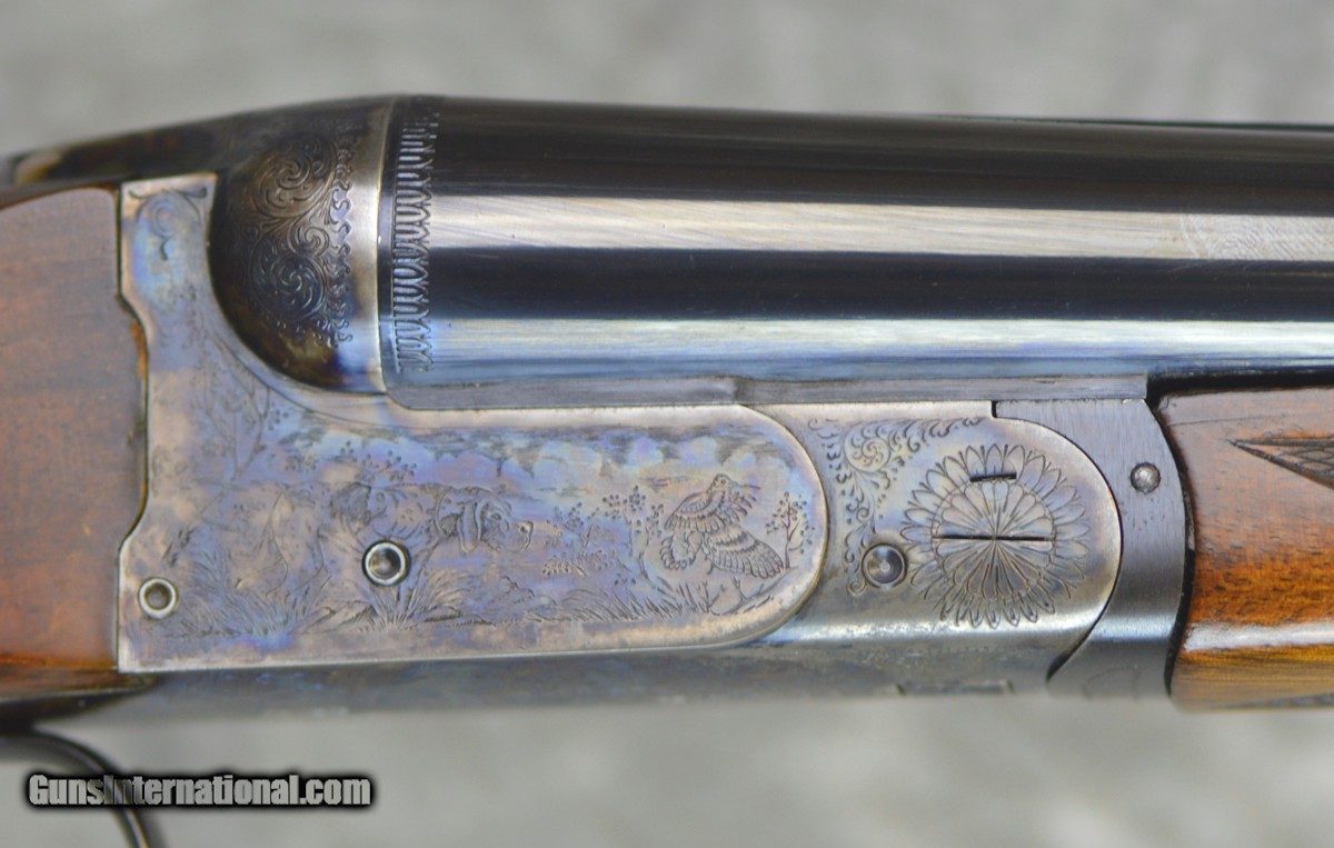 Description: Pre-Owned Bernardelli "Hemingway" Boxlock Field 1GA with 25 1/2" fixed (Full/Full) choke barrels, solid concave filed rib. Double triggers with extractors, case-color hardened receiver with engraved game scenes, minor finish wear, 85% of factory finish remains. English straight-hand stock with handling marks and minor finish wear, splinter forearm. Manufactured for Cabela's. Does not include case, consignment ineligible for trade-ins, sold as-is no warranty or returns. SOLD |