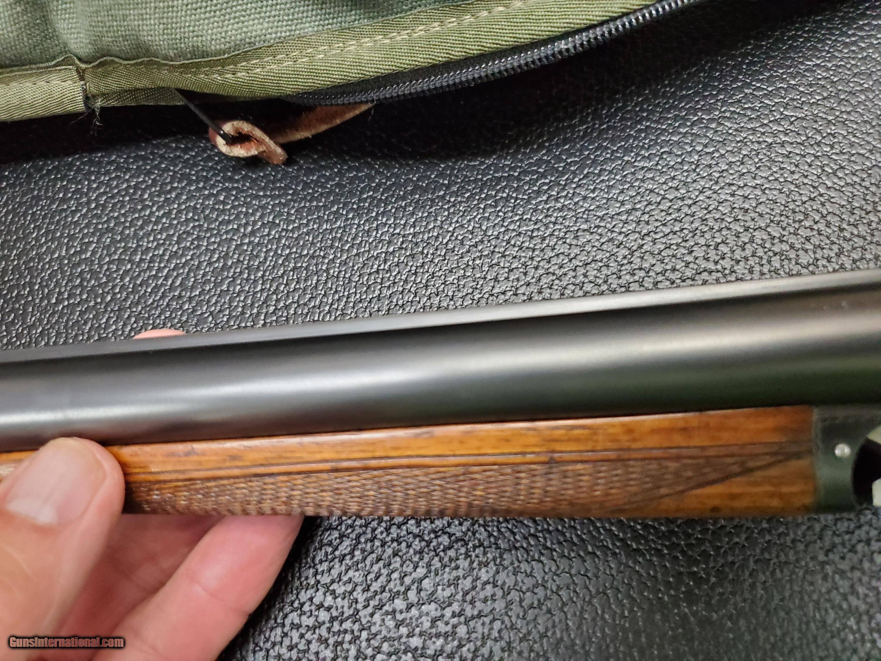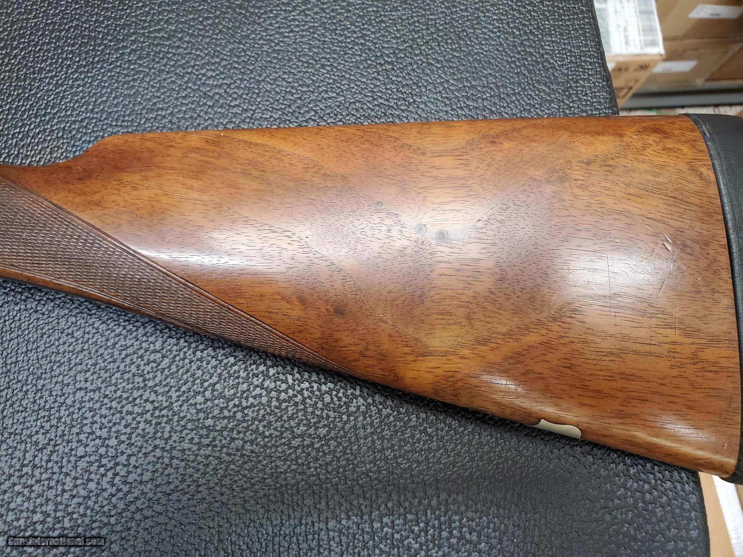 Description: 1958 Bernardelli Italia 20 gauge modern hammergun... excellent plus shape ... English stock has had and very nice leather pad added making the LOP just under 15 in. Gun has english stock and splinter forearm. The 26 inch barrels are choke ic/ mod and have 2 3/4 chambers...gun weighs 5 3/4 lbs and has 1 3/8 and 2 3/8 drop. Nice wood and excellent bluing... hammer gun fun with modern ammo $2850 sale pending SOLD Curio/Relic: Yes Chambers: 2 3/4 Ejectors: No Metal Condition: 95% Wood Condition: 95% Bore Condition: 100% Action: sidelock hammer gun Triggers: Double Stock Comb: 1 3/8 Stock Heel: 2 3/8 Fore End: Splinter Butt Pad: leather covered pad LOP: 15 Rib: Level filed rib Weight: 5 3/4 Manufacture Date: 1958 Choke Left: Mod Choke Right: Ic Engraving: Floral 100% coverage |