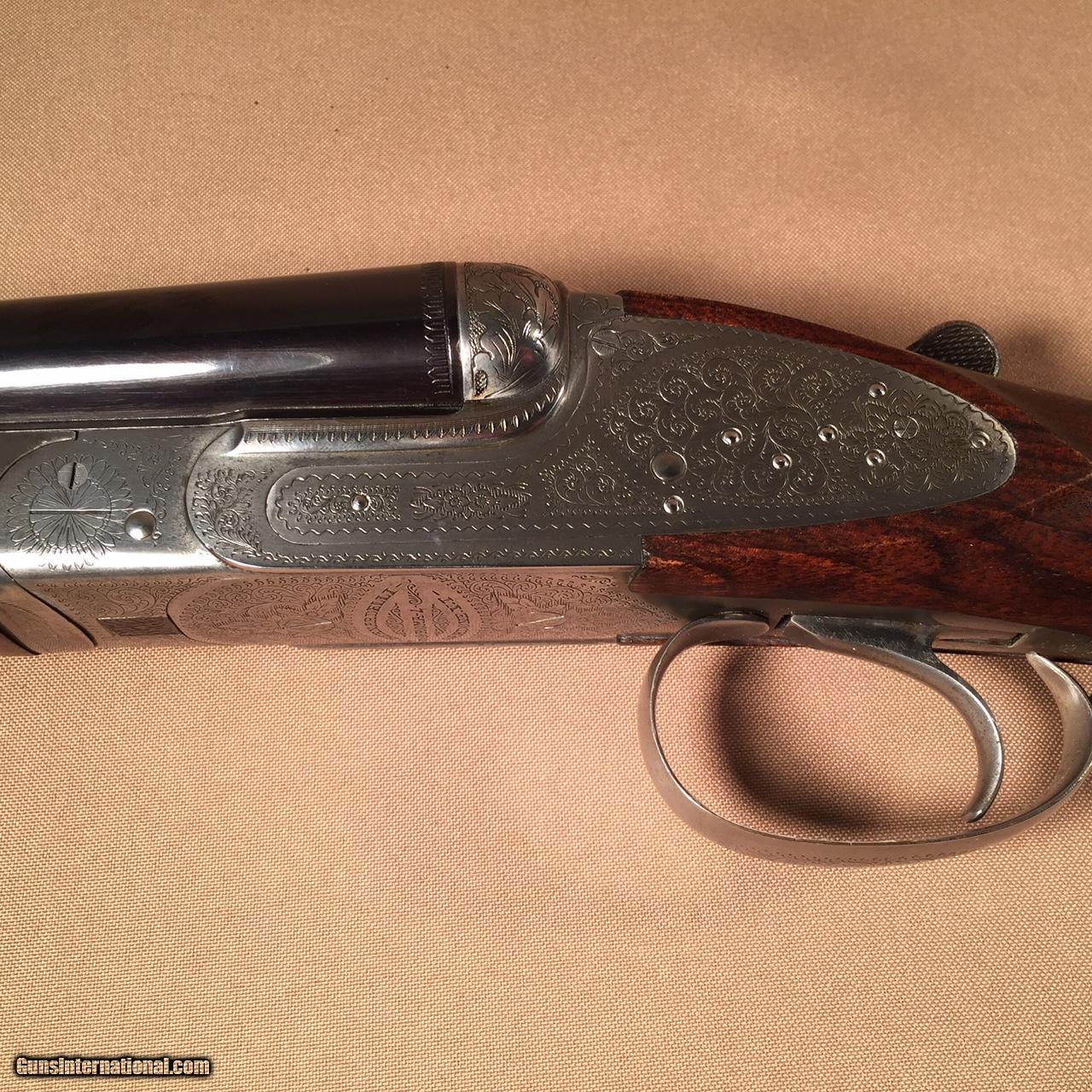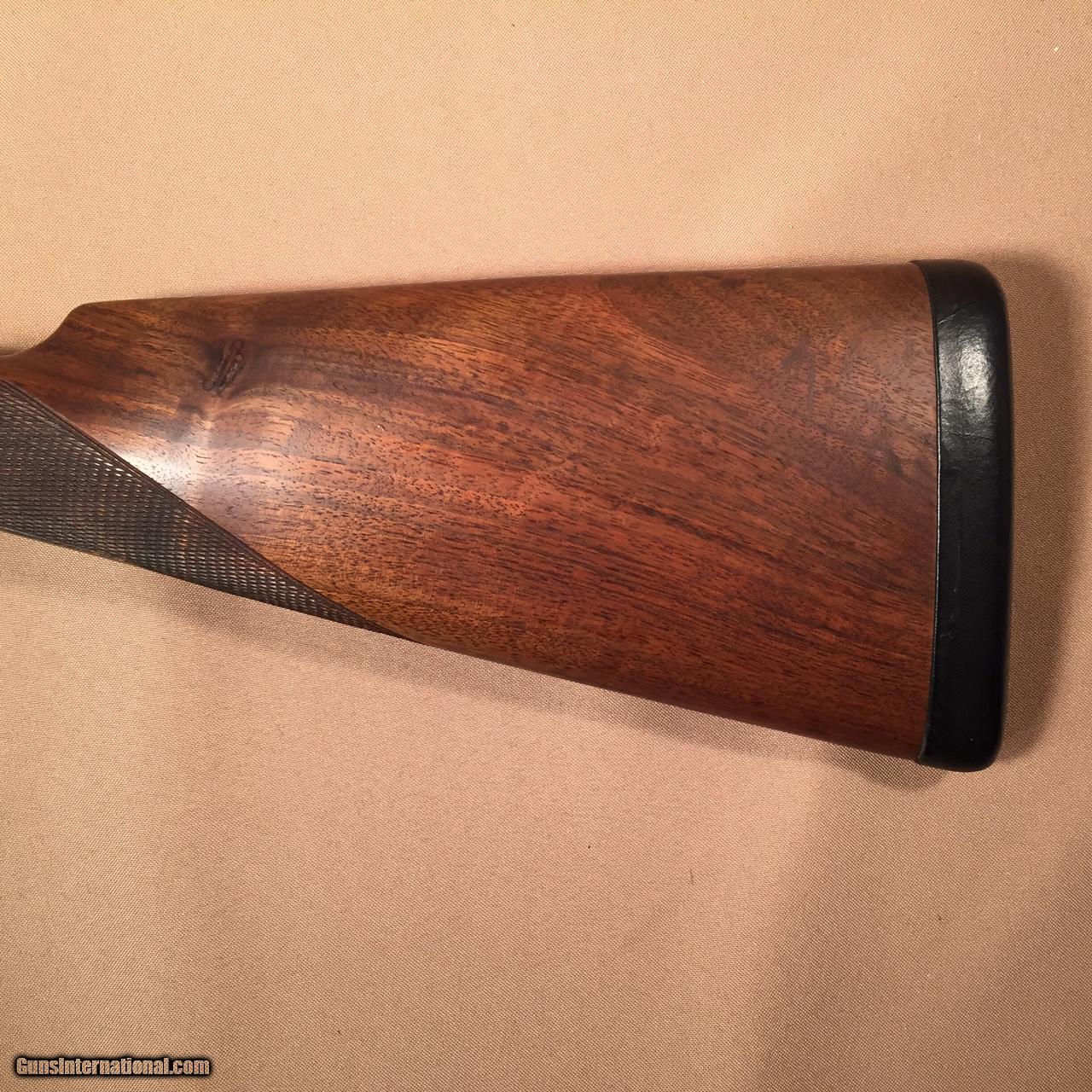 Description: Bernardelli Roma-4 20 gauge Very fancy Italian boxlock with dummy sideplates for a great price. 95% with some staining on the action near the safety. 27" barrels choked IC/M. 3" chambers and non-selective trigger. Auto safe and eject. 6 1/4 lbs. Really delightful field gun. Get yourself in a double gun without busting the bank! Call or email for additional photos and dimensions. SOLD |