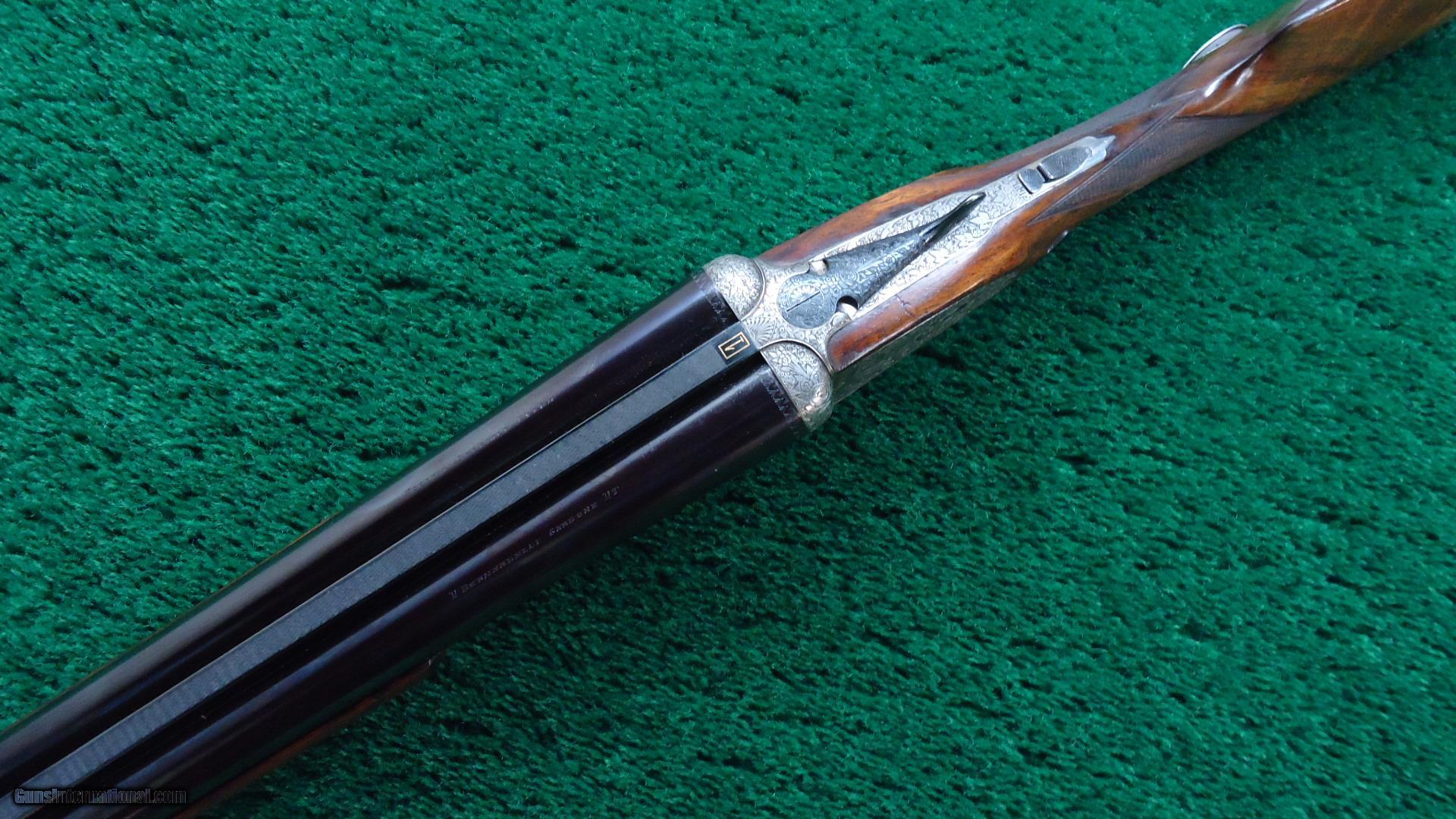Description: 12 ga. Both bbls measure 27-1/2". Gun features 15" LOP with 2-3/4" chambers. Choking is improved modified and modified on one bbl. The other is full and improved modified. This is one of the most elaborate Bernardelli's I have seen. The receiver is covered with beautifully executed engraving. English in style with flower scrolls, banners and ribbons. This gun was probably made in the early 1950's. Straight stock is checkered and of beautiful circassian walnut. Retains most orig finish. Red Pachmayr pad. Full detachable side locks style action. Features ejectors. Bbls have most blue remaining. Receiver is coin finish that shows no wear as does the wood. Cased in orig Bernardelli case. Full leather with light green felt interior. Beautiful outfit! Leroy Merz Antique Firearms specializes in antique and vintage Winchesters and other fine American firearms. Since 1965 Mr. Merz has taken part in the world of firearms and has been a contributor to many well known reference books. Just recently we mailed the 129th edition of our privately-published catalog. We have hundreds of additional guns in every price range at our home online. Search for Merz Antiques in google. SOLD Curio/Relic: Yes |
