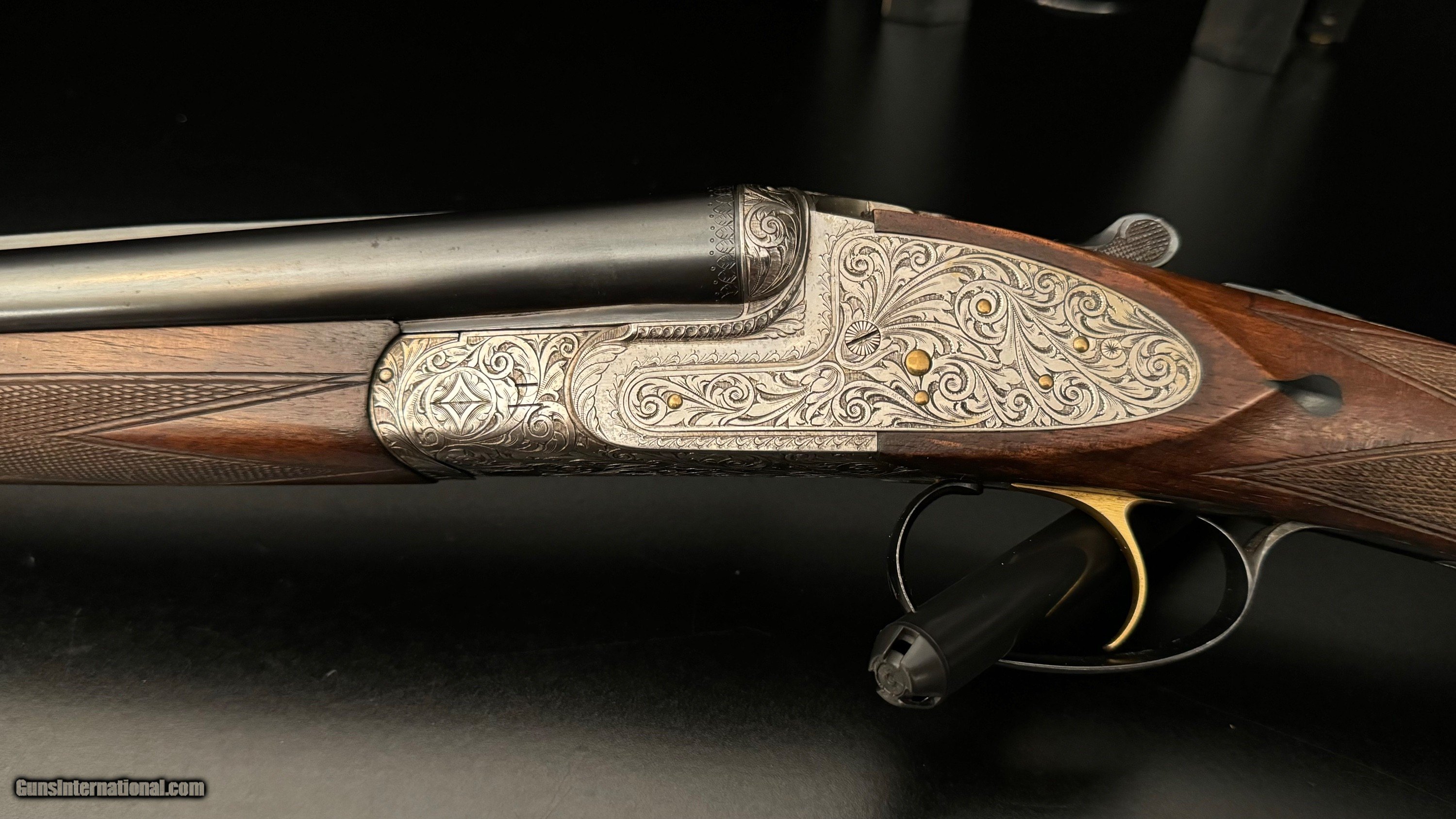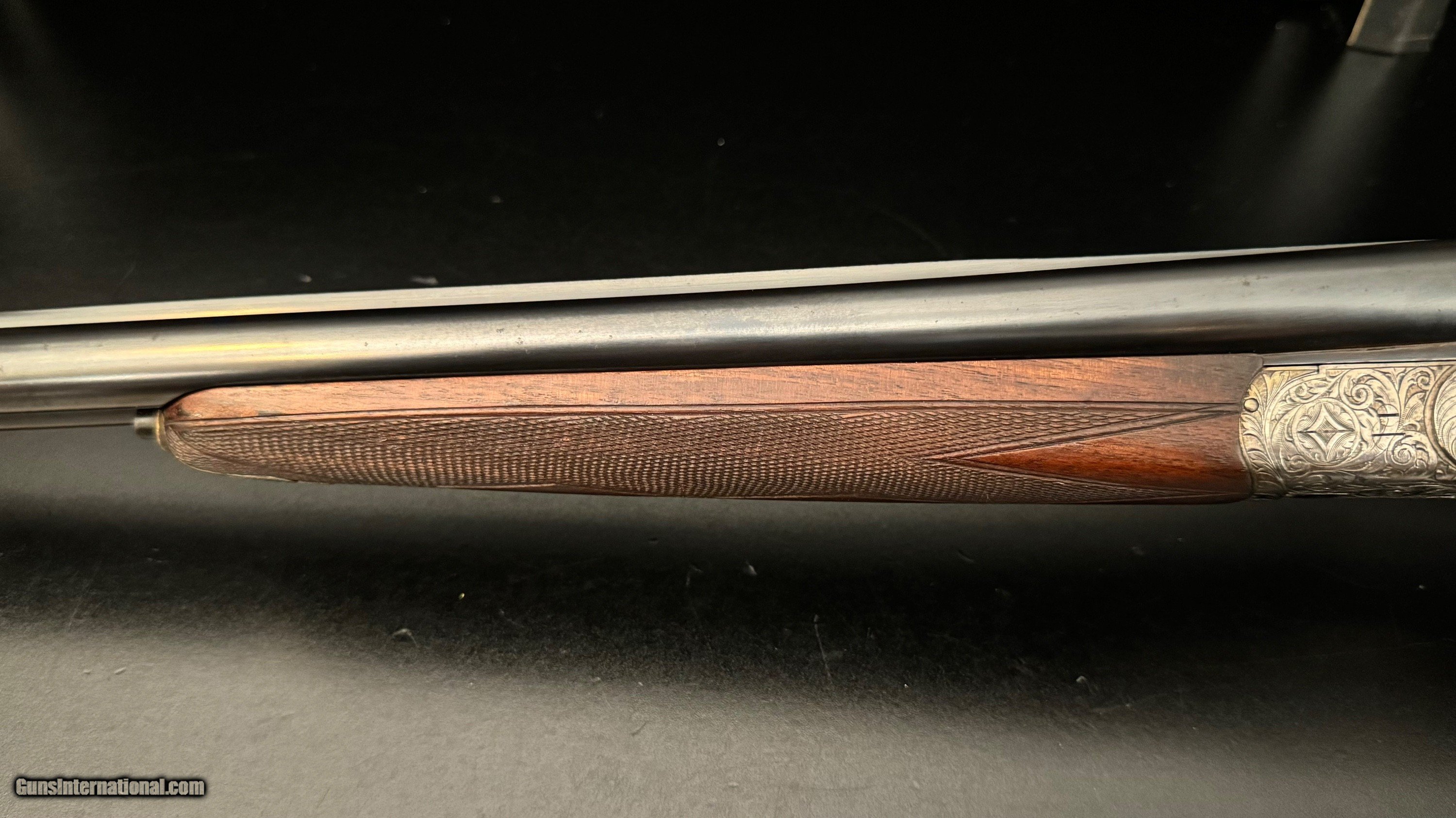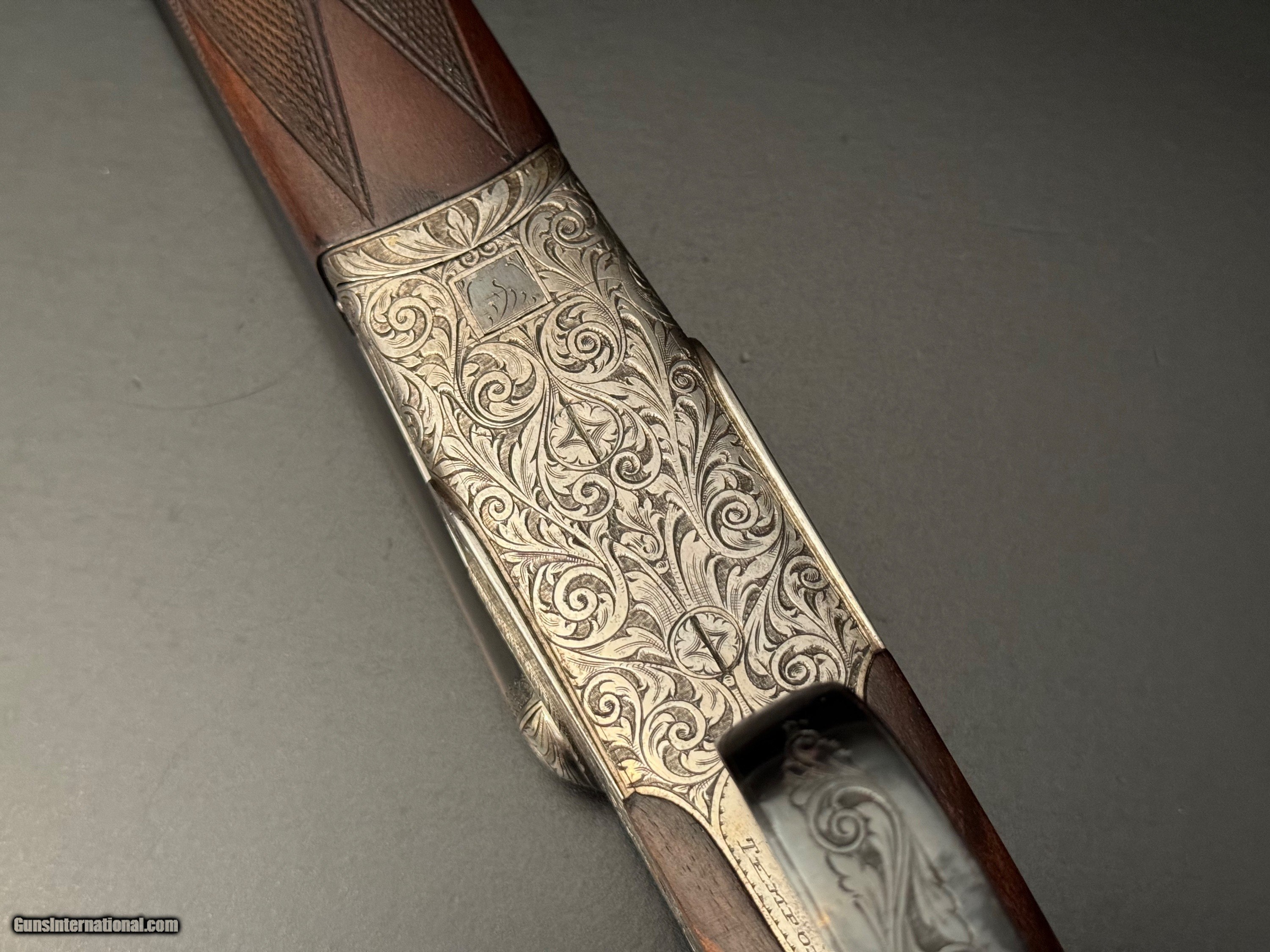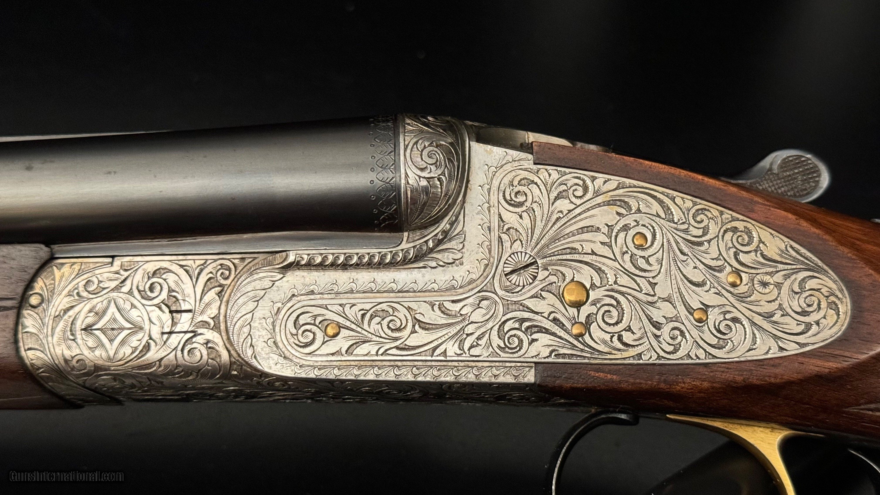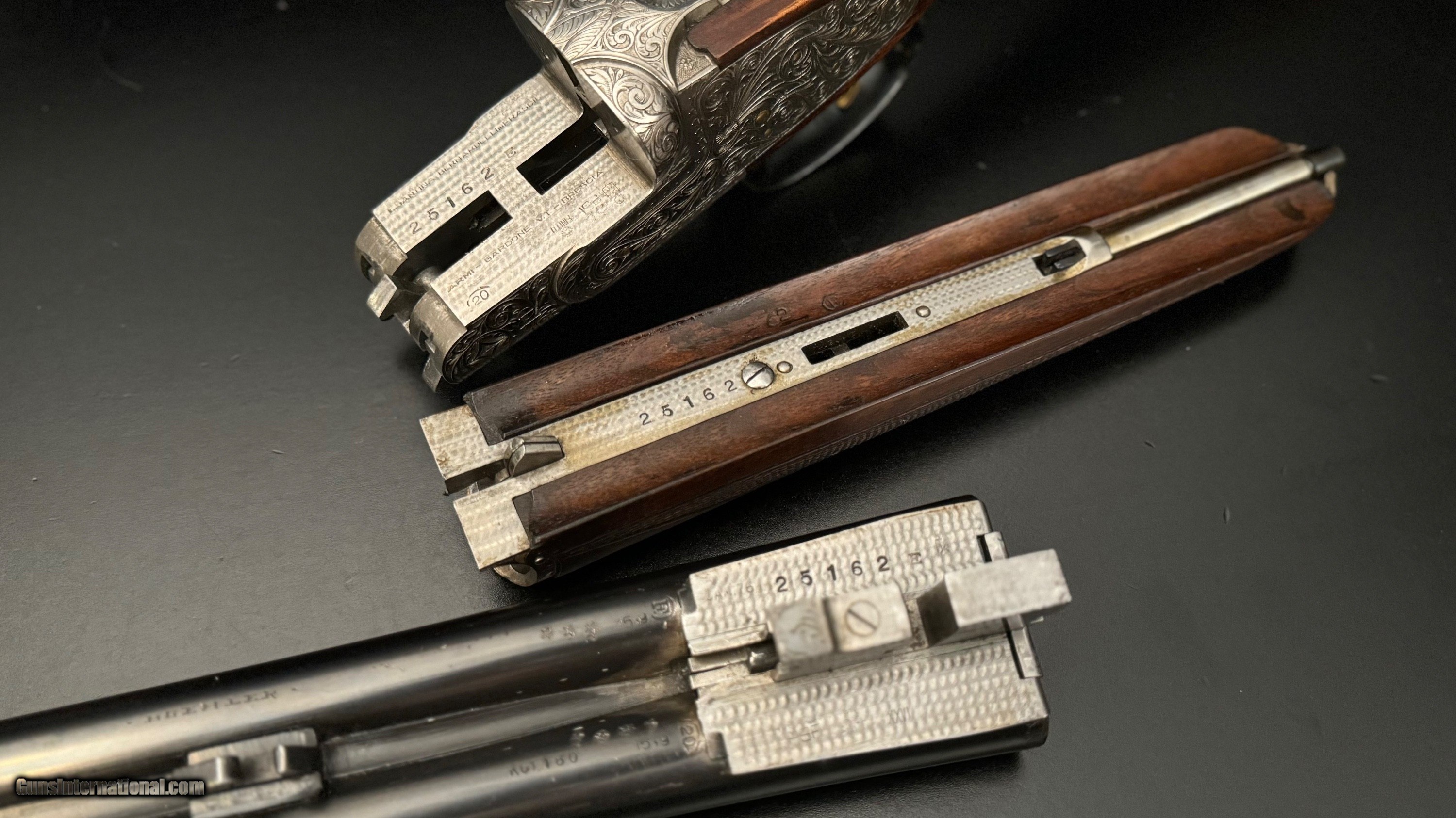 Description: Looking to sell a rare L. Santina Bernardelli 20GA Engraved Side Lock SxS Double Barrel Shotgun. This EXQUISITE shotgun is in used condition and features a 5 pin Holland and Holland style side lock action, 25 1/2" Boehler steel barrels chambered in 2 3/4", fully engraved reciever with gold push pins, checkered walnut stock with silver shield inlay, checkered/diamond pattern forend with engraved push button release, gold trigger, trigger guard is blued with light engraving, beaded fences, auto-ejectors, steel bead front and mid sights, and reco il pad. The left barrel is stamped with 3 stars "MOD" choke and the right barrel is stamped with 4 stars "IMP. CYL" choke. DO NOT consider shooting this until you have the information verified by a good gunsmith that knows shotguns and how to read proof marks. Serial #25162 Standard Italian proof mark (XXVI) on the flat dates it to 1970. OAL - 42 1/2", LOP 14" The detailed engraving on this shotgun is a work of art and speaks for itself. The coin finished receiver is hand engraved and signed by V. Temponi. This shotgun has a overall nice patina and retains 98% of its bluing on the barrels with some light marks here and there. The wood has some light dings and scratches, but no cracks. ALL original matching numbers and proper...this shotgun is a must-have for any collector or gun enthusiast. Please see all pics and you be the judge! Note: ALL SALES ARE FINAL, with the exception of 3-day inspection period for USED guns. Buyer pays $100 shipping & insurance to lower 48 States. PAYMENT: Cashiers Check, USPS Money Order or Personal Check only, unless pre approved by me. Payment is expected within 7 business days, not including weekends or holidays. Warranty/Inspection Period: All firearms should be checked over by your Gunsmith prior to being shot or handled. PLEASE know your own state and local laws prior to purchasing. NO sales to CA or where illegal. I will ship your firearm out via FedEx Ground from my FFL Dealer to your FFL Dealer once payment is received and cleared. Insurance IS INCLUDED in the shipping price. Should you have any questions, please feel free to email me. Thanks SOLD Shotgun Gauge: 20 Gauge Manufacturer: Bernardelli Model: Side Lock Serial Number: 25162 Barrel Length: 25 1/2 Condition: Very Good LOP: 14 Manufacture Date: 1970 |