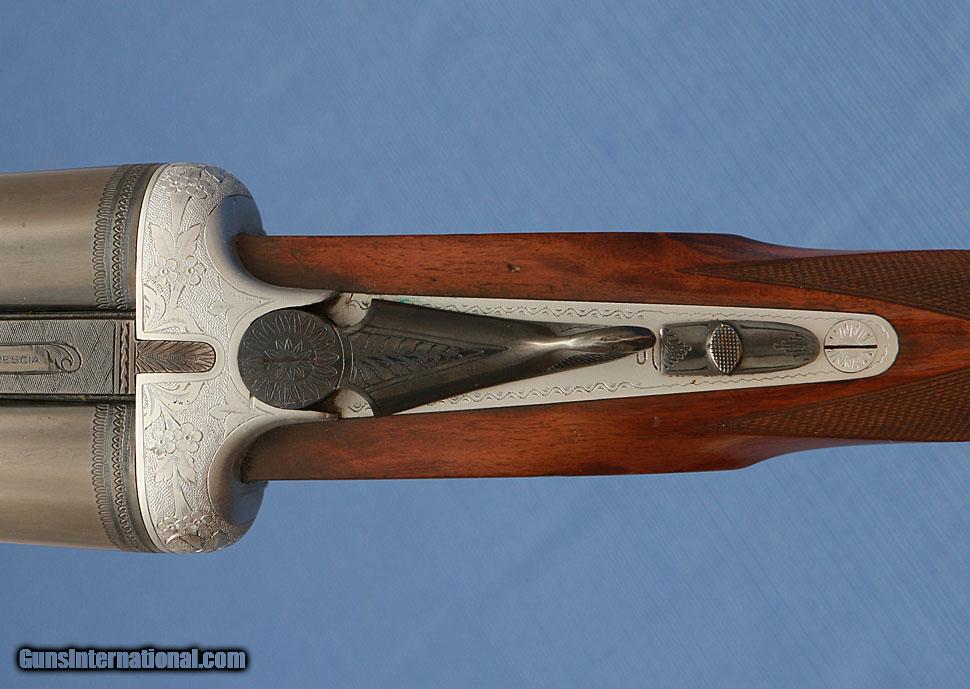 Description: 1972 - L. Santini Bernardelli - Venus Royal Best Gun - Bar Action Side Lock Ejector - 10 Bore, 32" 3-1/2" Chambers, Choked Full / Full, LOP 14-3/8" over what appears to be an original equipment White Line pad, Drop 1-5/8" to 2-5/8", Cast Off, Weight 11 lbs. 9 oz.