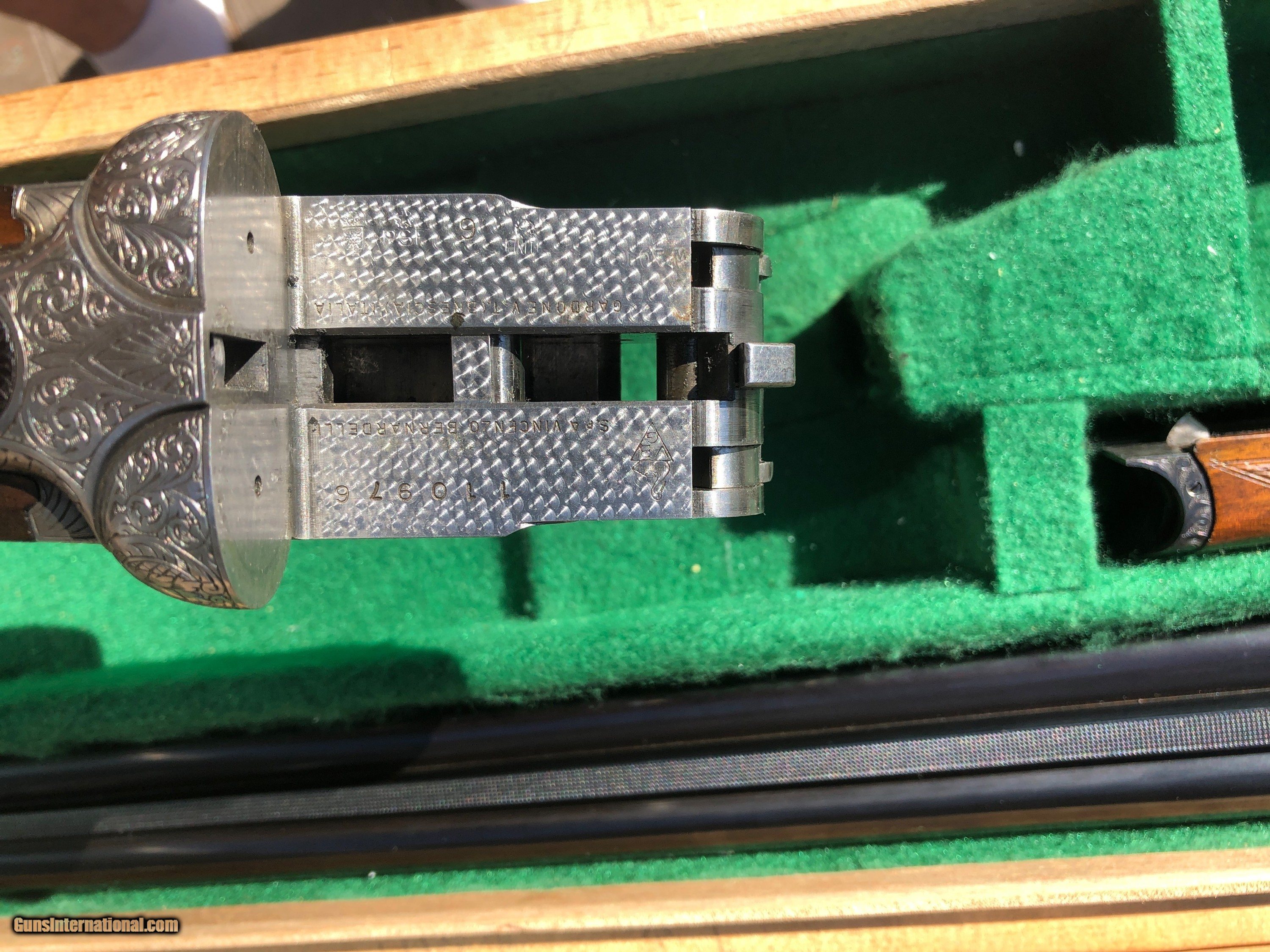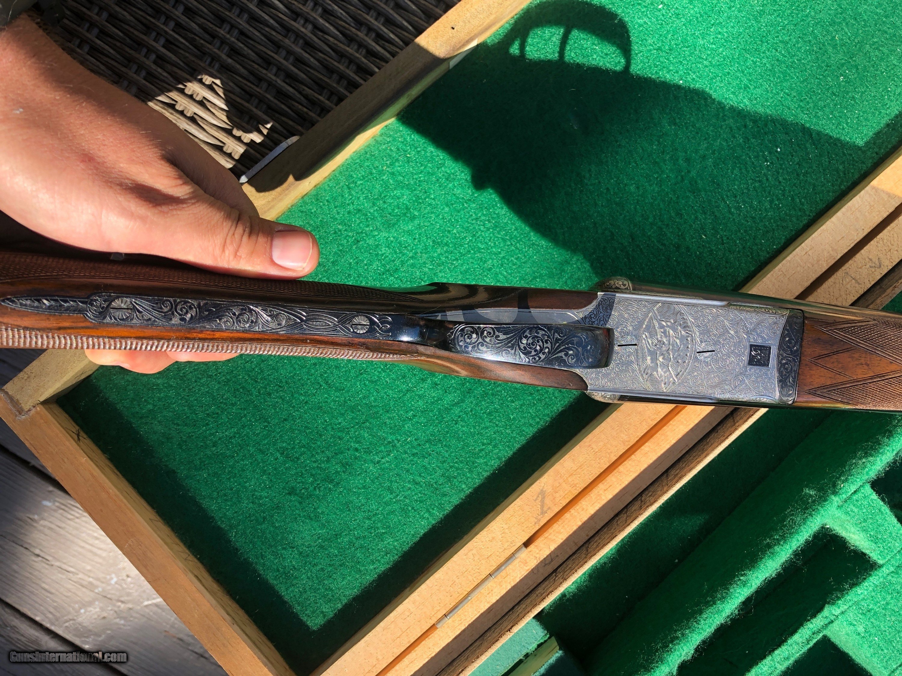 Description: Beautiful Italian sxs with 27” barrels, fixed chokes, very light. Comes with hard case. This gun has some handling marks on the stock but has been shot very little. Modified and Improved Modified, auto ejectors, 14 1/8 lop to front trigger to factory buttplate. Swing swivels. 6 lbs 9 ozs. $1700 + $40 shipping SOLD Shotgun Gauge: 12 Gauge |