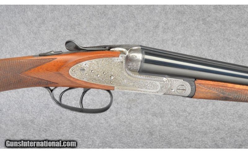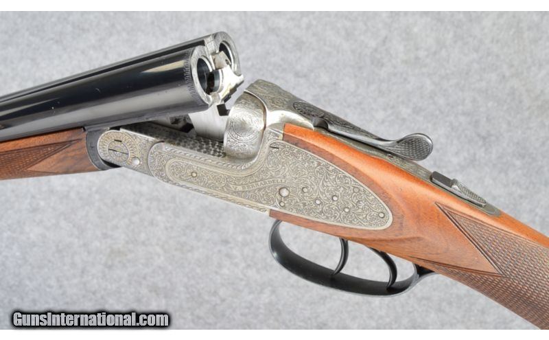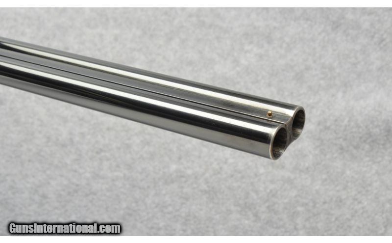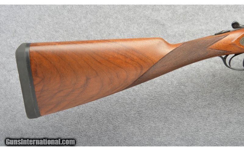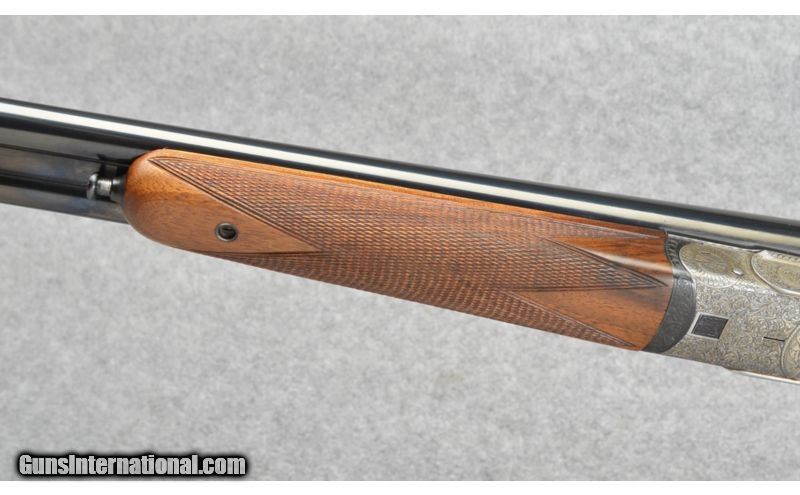 Description: V.Bernardelli Roma 6 chambered in 28 Gauge, c. 1991. Coin finished side plates are engraved with fine English scroll and game scene. Double triggers with ejectors, Oil finished walnut stock. Very high condition showing few handling marks. SOLD Manufacturer: 1991 Caliber Info: 28 Gauge Chambers: 2 3/4 Inch Metal Condition: Polished blue barrels, Few minimal handling marks Wood Condition: Few minimal handling marks Bore Condition: Very Bright Barrels: 26 3/4 Triggers: Double Trigger Stock: English Grip, Checkered Walnut Stock Dimensions: 15 " LOP Fore End: Splinter Butt Pad: 1 Inch KickEZZ Recoil Pad Weight: 6 Lbs 12 Ozs Sights: Matted rib, Metal bead Chokes: .012/ .030 Item Location: Buda, TX |