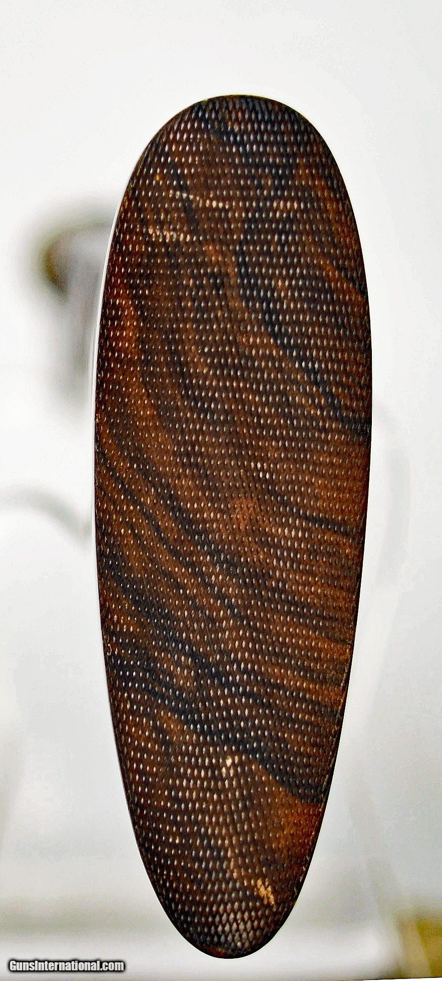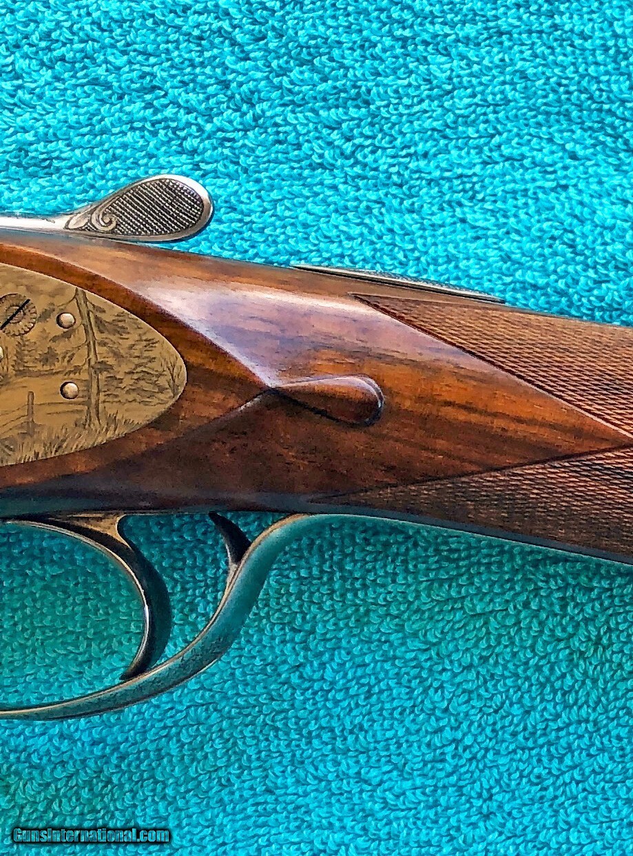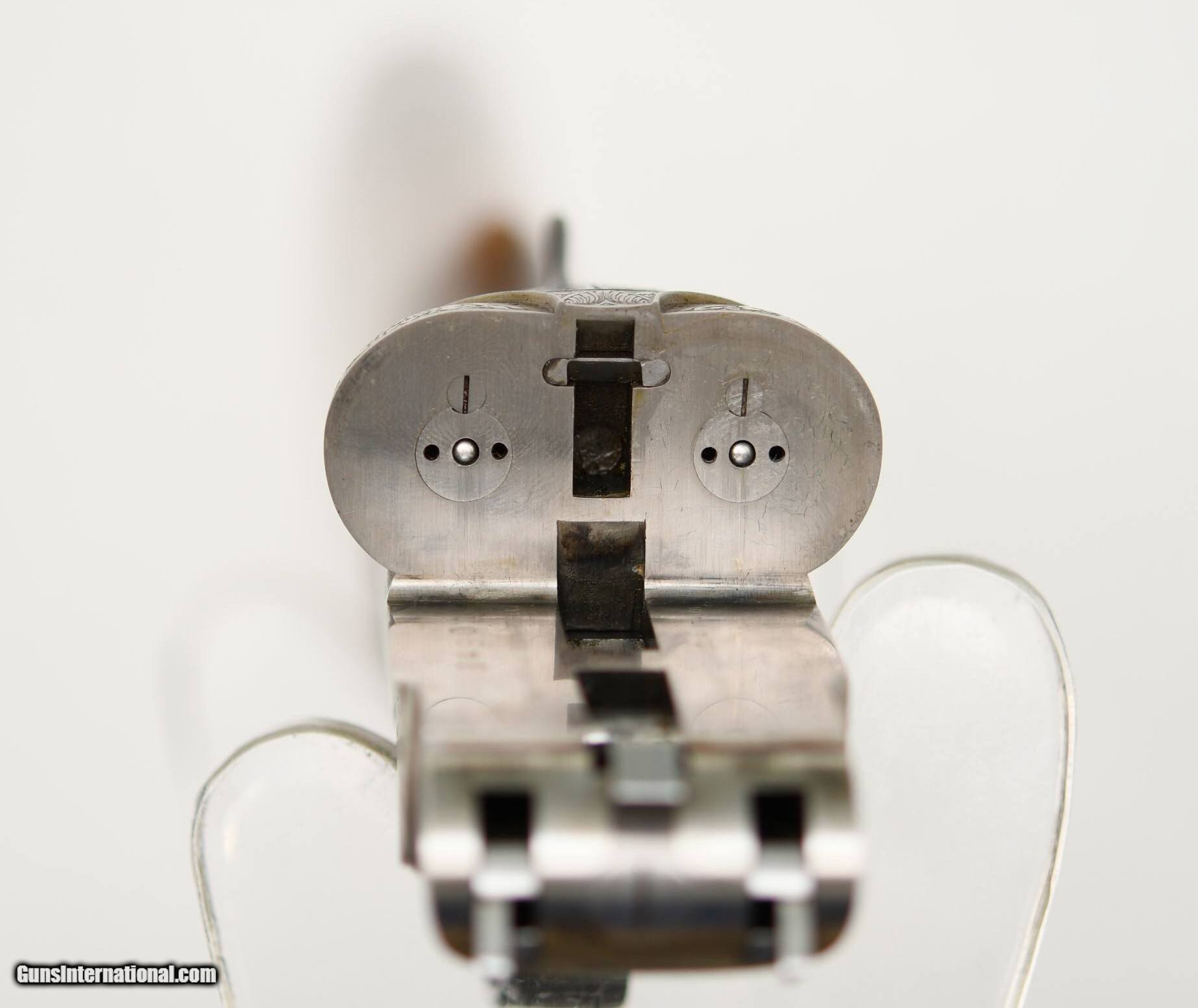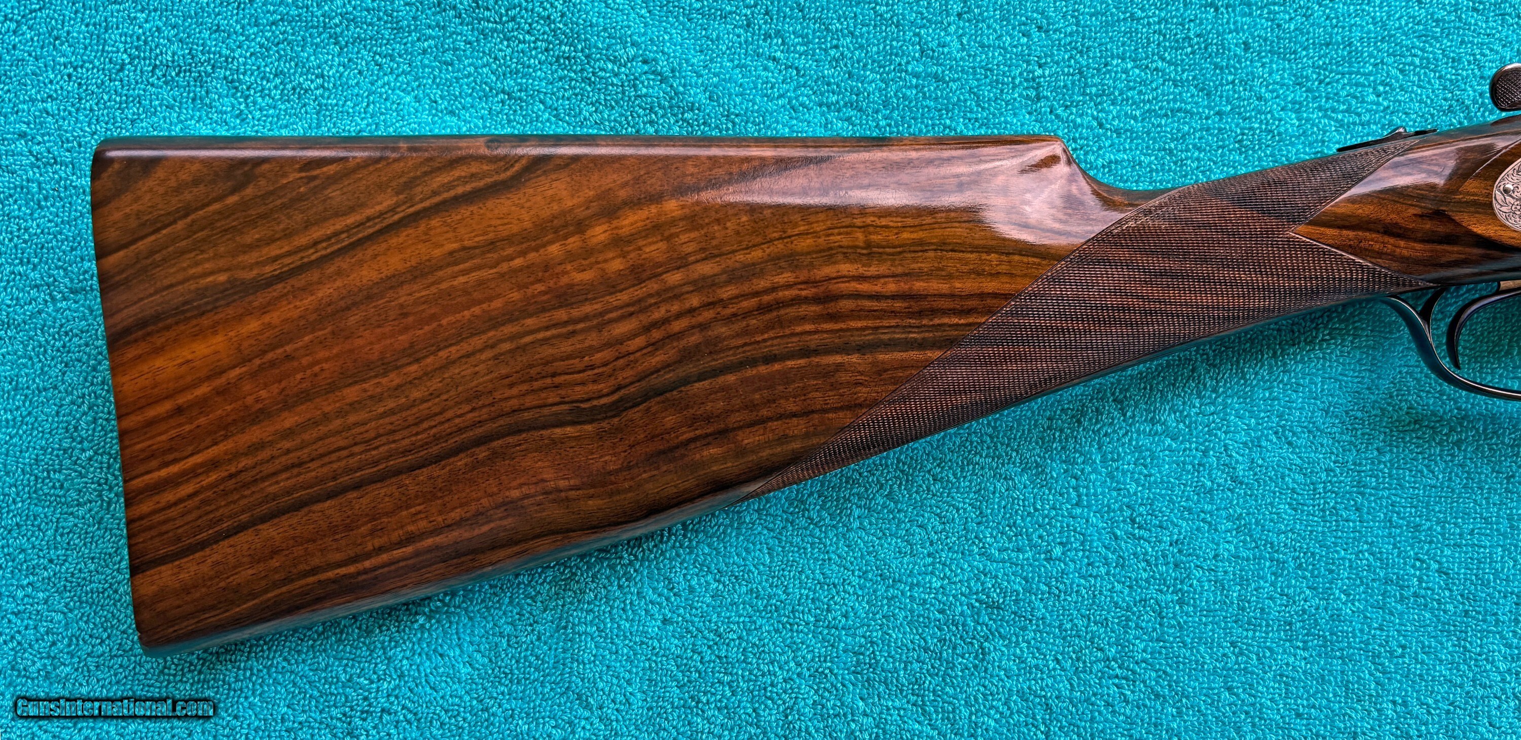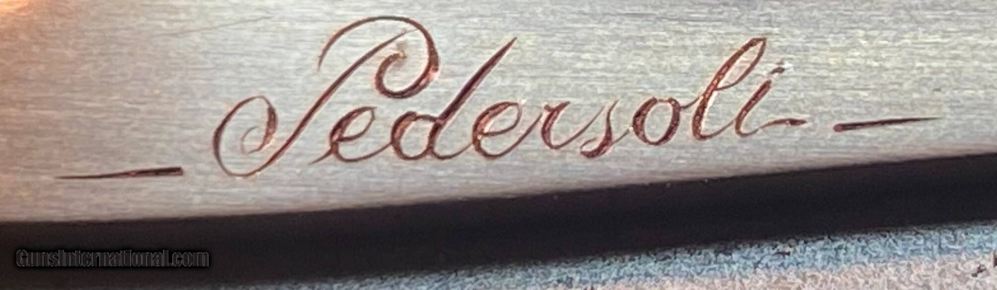 Description: V. Bernardelli Holland VB Extra SLE, Best Gun 12 Ga 28” bls 3” F/M, with leather case Engraved by Gianfranco Pedersoli, 1984 99% VERY RARE (Not to be confused with Pietro Bernardelli, a lower cost/quality Italian gumaker with similar name). V.Bernardelli’s Holland VB Extra is a handmade top-of-the-line sidelock side-by-side, an improved H&H Royal sidelock with more bells and whistles than H&H Royals and arguably equal in quality. This gun is featured with a 33 minute video at rogerrule, on YouTube, Special Guns with Roger Rule, Episode 40. A true handmade H&H 7-pin sidelock ejector action, that locks up with a Purdey triple compass turn lock (triple bolt) instead of the traditional double underlug (like H&H). It is engraved by the late great superstar* Gianfranco Pedersoli with his della robbia style that became his signature. Description: 12 guage, 3” chambers, choked M (.022) and XF (.042), 28” chopper-lump barrels (both bores measure .723) with grooved and finely arabesque rib and small silver front bead, built with the traditional classic English pattern -- straight-hand grip and splinter forearm (10 inches) –articulated front trigger and coin-finished receiver. Quality Features: This Holland VB Extra has all highest quality features: chopper-lump barrels, H&H high-grade double seared 7-pin sidelocks, H&H Southgate ejectors, integral bridles, H&H double safety sears, bushed strikers (with engraved locking screws), gas escape valves, cocking indicators, beaded fences, and a manual safety. The top lever is serrated for either hand. In addition to the two locking screws for the bushed strikers, there are five more: each side of the sidelock action screw, the front locking lug, and inside of the forearm iron… seven total. Notice also how the upper tang and the two-screw-down lower tang are designed with stepped-down points inlayed perfectly into the surrounding wood (best-gun only quality). Rub your finger over the area and you can’t detect where the metal ends and the wood starts. These are features that give away that this is a quality handmade gun, features generally found on Boss's, Purdey's and H&H Royals which new cost between 100K and 200K today! In fact, if the maker’s name was concealed for my inspection, I would bet heavy money that this shotgun is a F.lli Rizzini R1E, until I broke it open and see the Purdey 3rd bite which makes it more prestigious than a R1E. Like Beretta, V.Bernardelli built a large factory on the Mella River in Gardone. And like Beretta, besides their production guns made for the trades, V.Bernardelli also had a custom house that only built bespoke handmade best guns (of the highest quality of any Italian handmade gunmaker and priced similarly). Inscriptions: There are four: left barrel --”V.Bernardelli S.p.A. Gardone V.T.”; right barrel -- “Made in Italy”; and on the underside in a semi-circle bannner, ”V.Bernardelli Gardone V.T., and left of the trigger guard, the engraver’s signature, “Pedersoli.” The water table is stamped “AM” for 1984 – hard to believe looking at its 99% condition. The barrel flat is inscribed with maker’s name, serial number, proofs, logo stamp, “3” for chamber and “12” for gauge. Engraving: From the book, The Italian Gun, the authors state the Holland VB Extra features “Holland-style bouquet and scroll engraving on a coin-finished receiver,” buyer’s choice of either floral and scroll engraving or game-scene. A close examination shows this gun has the finest floral, bouquet, and ribbon scrollwork as only Pedersoli would do, and signed by him. Stock: Made of outstanding 4A walnut from Turkey, its contrasting dark and light streaks look rich, and shows equally on both sides and match the forend with its delicately inlaid Anson push-button release. The point pattern hand-checkering is 32 lpi, executed flawlessly and is generous with single borders wrapping around the forearm broken up with a diamond field. The pattern comes together surrounding the lower tang inlay with artistic detail. Finish: The pleasing walnut figure and great color contrasts stunningly with the clean polished coin-finished frame and deep rust blue barrels. The stock is finished with a hand-rubbed oil finish. Measurements: Dimensions are for modern shooters, 1 3/16” x 1 3/4” x 14 5/8" front trigger to checkered butt with neutral cast. Weight 7 lbs 7 oz. Includes maker’s leather trunk case and accessories. Condition: Near Mint: Although built in 1984, this gun has not been used and is 99.9% condition with the original case. Price: $ 12,450.00 Seller is the author of The Rifleman’s Rifle (Winchester pre-64 Model 70s), is liquidating his collection and will furnish a Letter of Provenance that this gun is from his collection. Please check out author’s feedback on ebay under rcrwin70roger. 3-day non-firing inspection for full refund, buyer contributes $100 shipping to buyer’s FFL, payment by MO, certified check, wire transfer or personal check with wait for validation. For questions, call (808) 989-1863 and ask for Roger. About the Engraver, Gianfranco Pedersoli September 7, 1946 -- July 24, 2021. From his published obituary: “At the age of 14 (1960), possessing good drawing skills, he abandoned his studies to devote himself fully to his art and began an internship with Master Engraver Giulio Timpini, who immediately became aware of his great talent. Eventually, Pedersoli created work on commission for clients that left him total freedom both for choice of subject and for his choice of themes. After each specific creation was developed, it was never repeated. Each work became unique. He is considered one of the most important engravers both nationally and internationally. In 2007, Blue Book Publications, Inc., produced a beautiful book entitled Gianfranco Pedersoli Master Engraver authored by Dag Sundeth about the man and his engraving art with magical photographs. Gianfranco Pedersoli’s