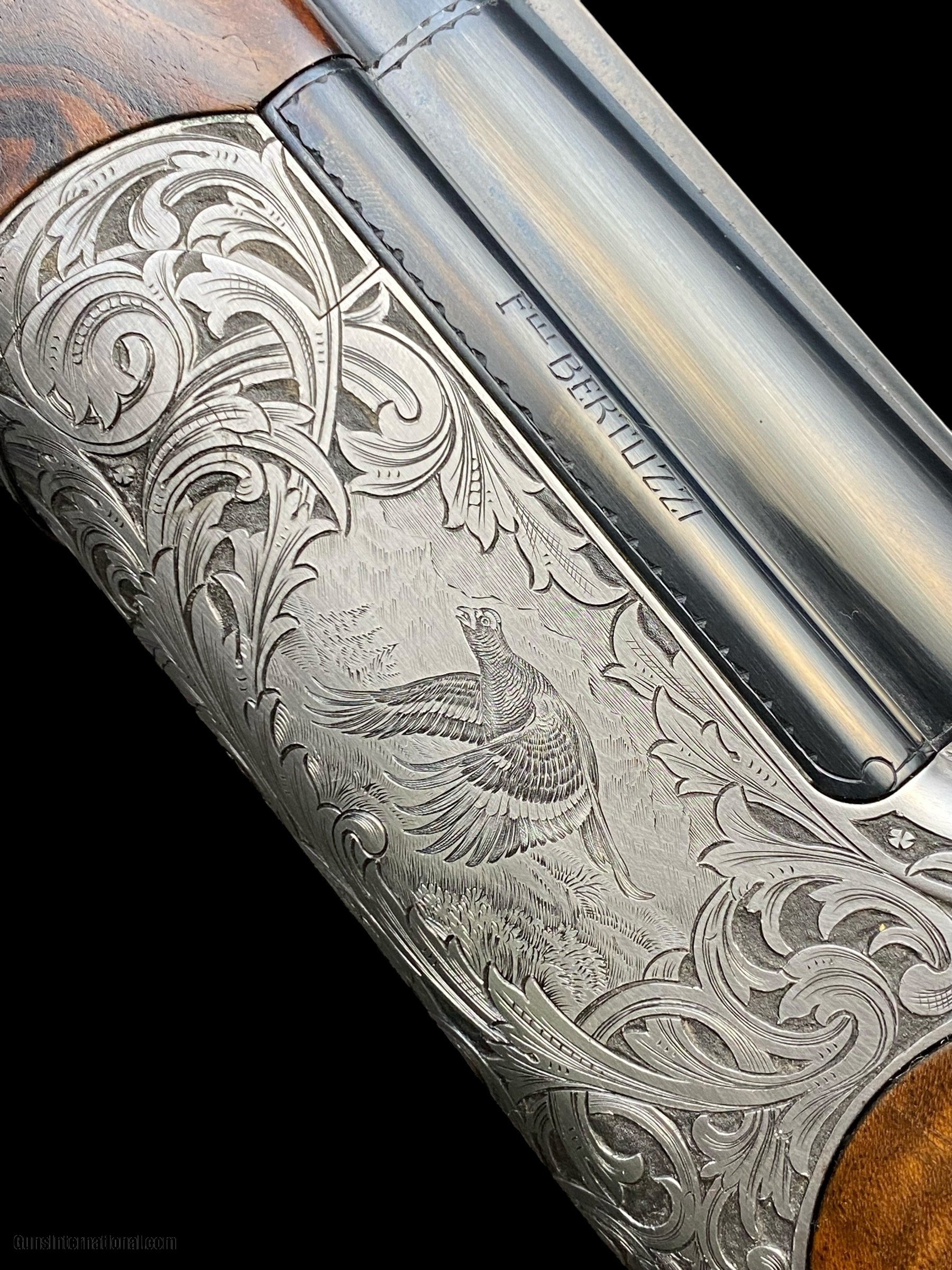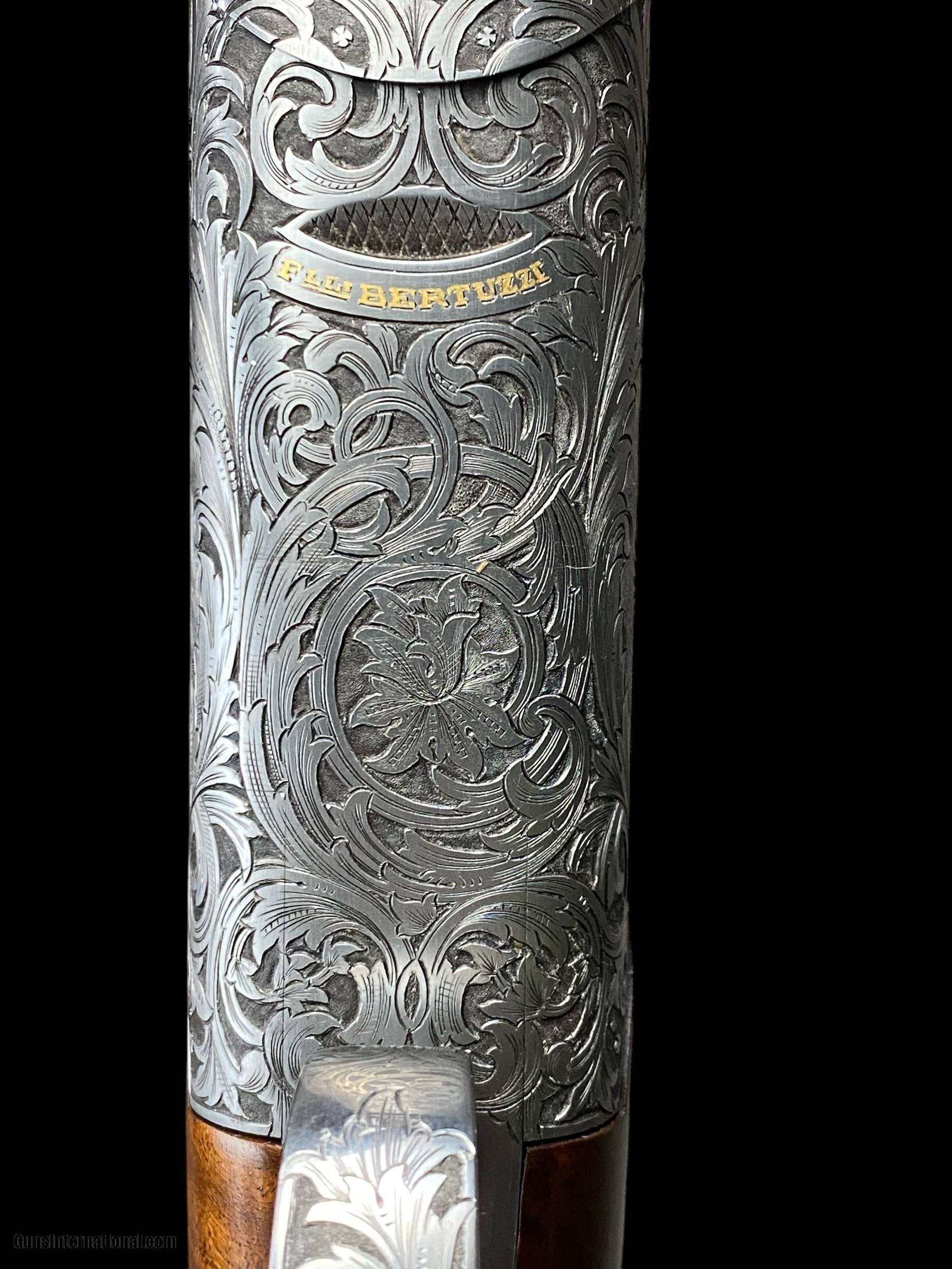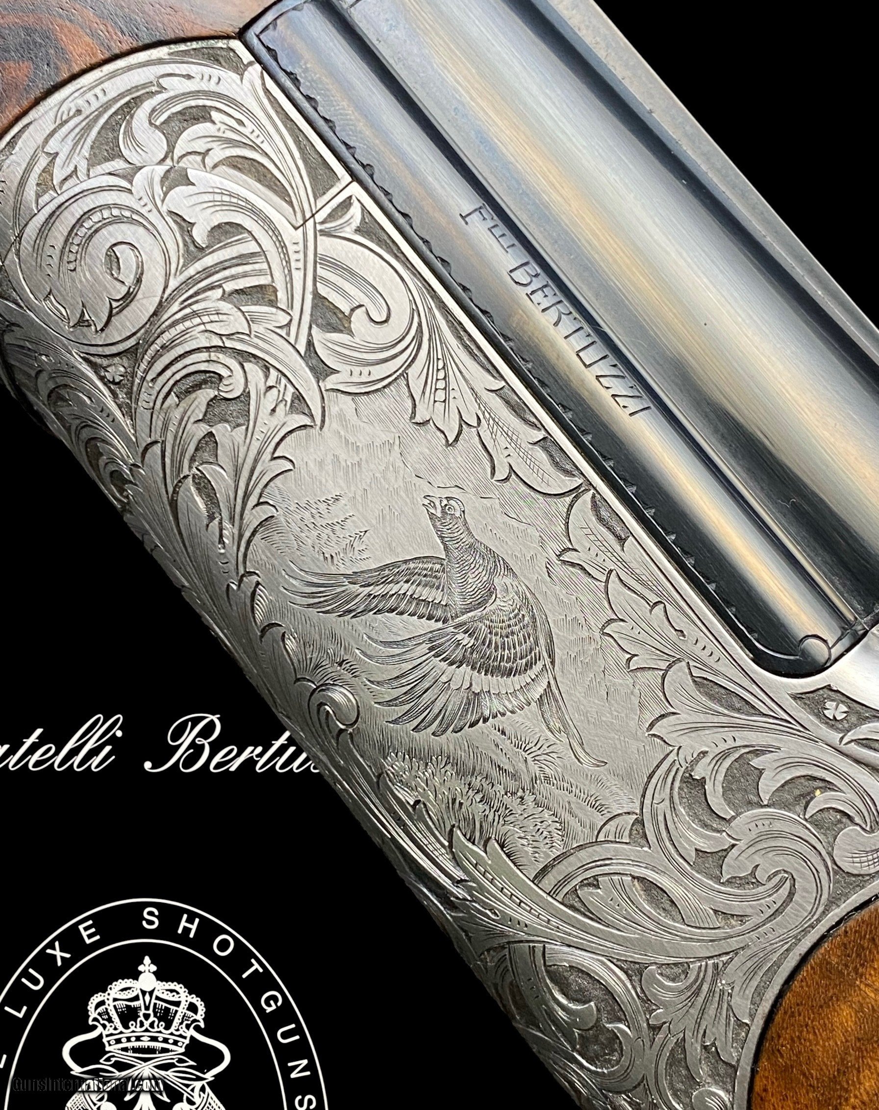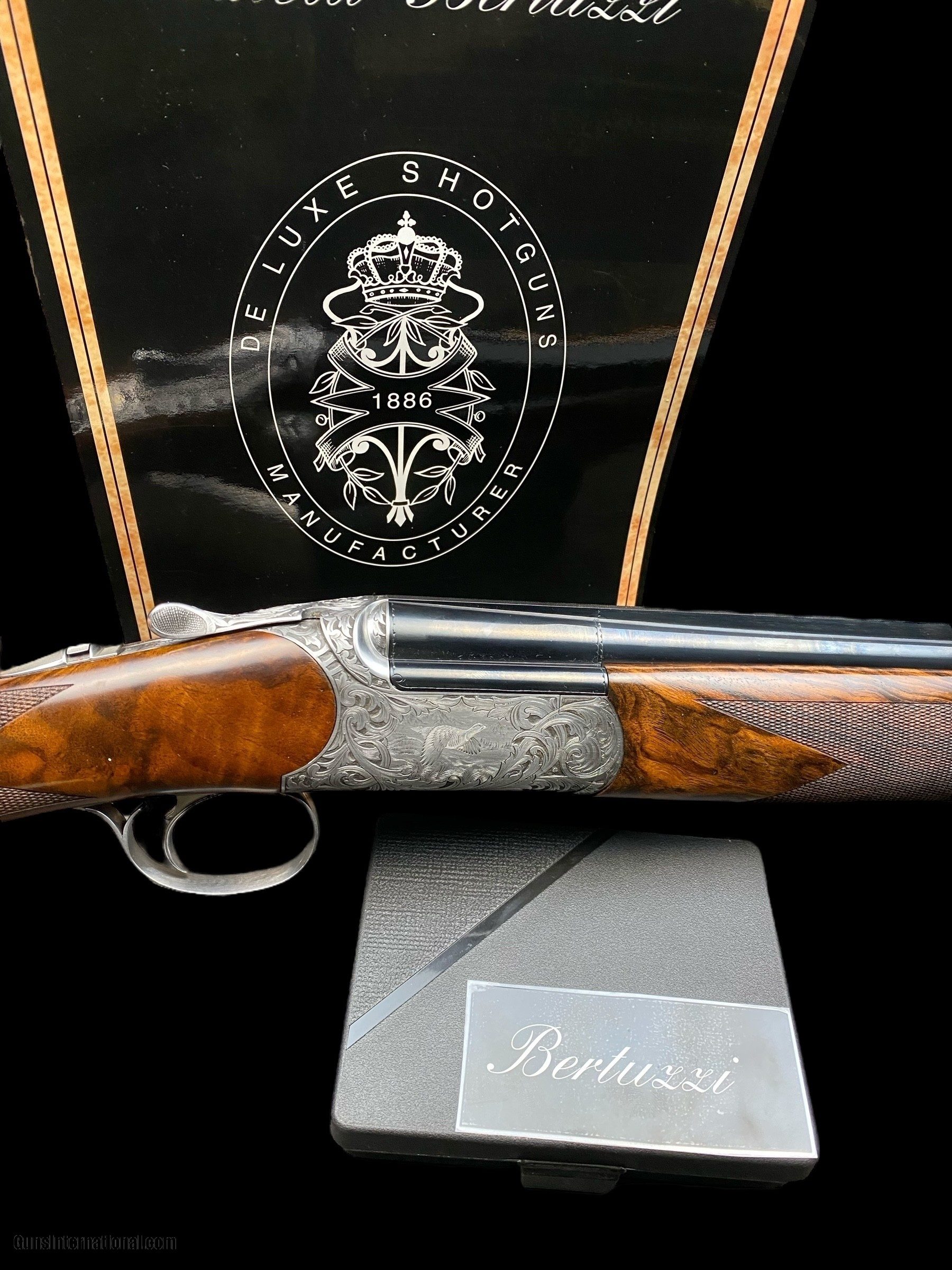 Description: SOLD !! TO A SATISFIED CLIENT! PLEASE SEE OUR OTHER FINE FIREARM LISTINGS! FLLI. BERTUZZI - ITALY ROUND BODY OVER / UNDER GAME GUN - MADE 2024 20GA - 3" / 76MM 30" SOLID RIB BBLS W/ BERTUZZI MULTI CHOKE SYSTEM STUNNING GAME SCENE AND FLOWING SCROLL ENGRAVED BY PAOLO BERTUZZI SINGLE SELECTIVE TRIGGER EJECTORS EXCEPTIONAL TURKISH WALNUT STOCK W/ PRINCE OF WALES GRIP AND WOOD BUTTPLATE DIMS: LOP 14 3/4" | DAC: 1 1/2" | DAH: 2 1/4" WEIGHT: 6LBS 8OZ CONDITION: SHOTGUN IS IN AS-NEW UNFIRED CONDITION FROM BERTUZZI WORKSHOP GENTLEMEN, THIS IS A FINE EXAMPLE OF FLLI. BERTUZZI WORKMANSHIP. THEY ARE PRODUCING ONLY A FEW GUNS A YEAR AND WE WERE LUCKY TO GET THIS FROM THEM DIRECTLY. A STUNNING GUN OVERALL! YOU WILL BE VERY PLEASED WITH THIS FINE FIREARM. PLEASE CALL NOW! FFL REQUIRED. FLAT $50 S/H/I CARD FEE APPLIES SOLD Shotgun Gauge: 20 Gauge Manufacturer: FLLI. BERTUZZI Model: ROUND BODY O/U Serial Number: 6171 Barrel Length: 30 Chambers: 3" - 76MM Ejectors: YES Condition: NEW Metal Condition: NEW Wood Condition: NEW Bore Condition: NEW Action: BLE Triggers: SINGLE SELECTIVE Manufacture Date: 2024 Chokes: MULTI Proof:Nitro: YES |