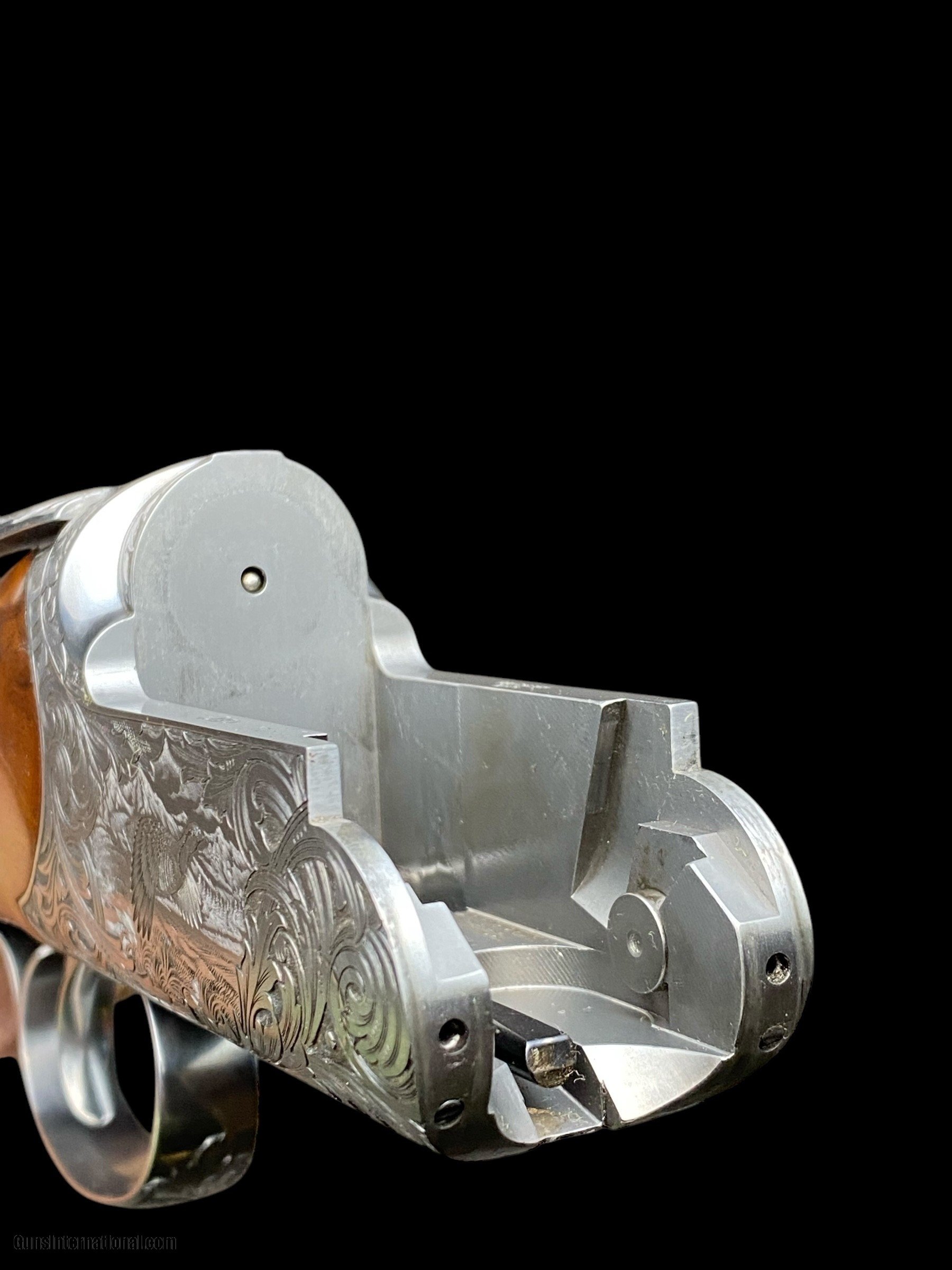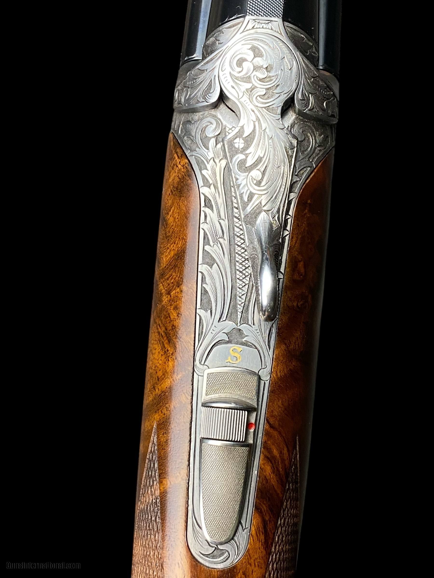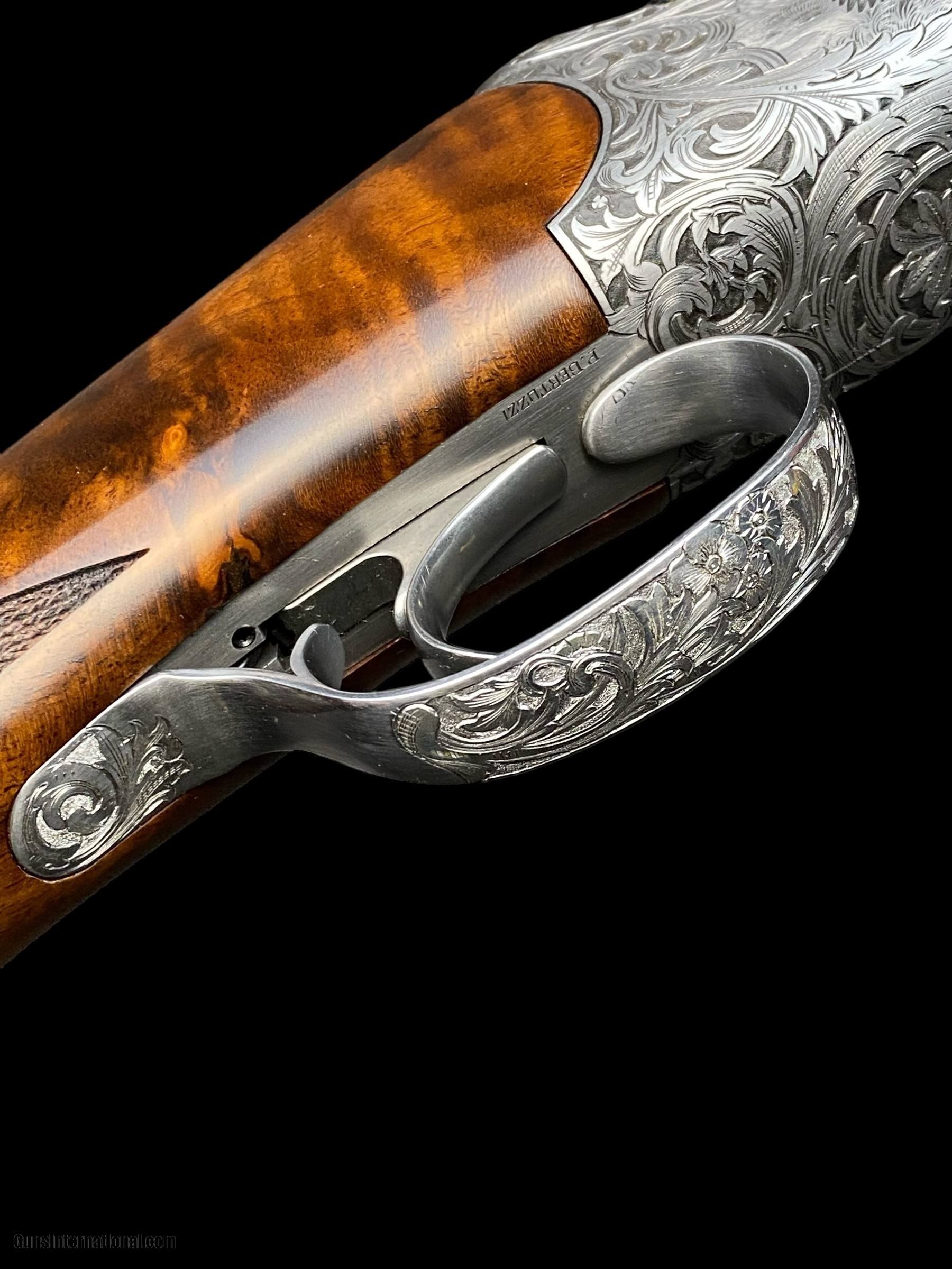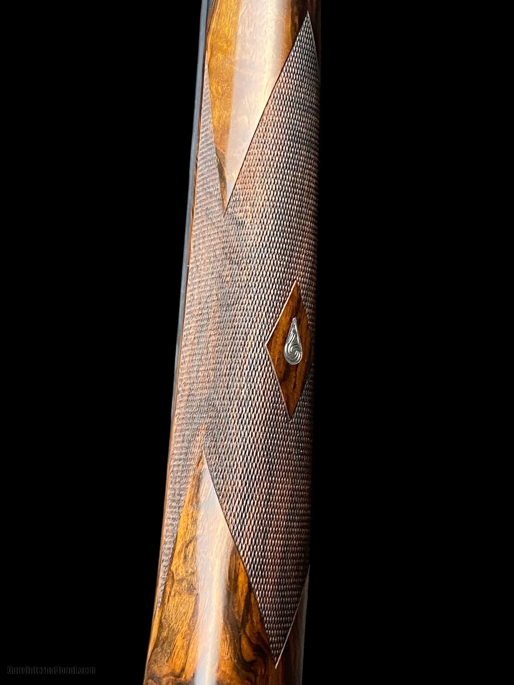 Description: SOLD !! TO A SATISFIED CLIENT! PLEASE SEE OUR OTHER FINE FIREARM LISTINGS! FLLI. BERTUZZI - ITALY ROUND BODY OVER / UNDER GAME GUN - MADE 2024 20GA - 3" / 76MM 30" SOLID RIB BBLS W/ BERTUZZI MULTI CHOKE SYSTEM STUNNING GAME SCENE AND FLOWING SCROLL ENGRAVED BY PAOLO BERTUZZI SINGLE SELECTIVE TRIGGER EJECTORS EXCEPTIONAL TURKISH WALNUT STOCK W/ PRINCE OF WALES GRIP AND WOOD BUTTPLATE DIMS: LOP 14 3/4" | DAC: 1 1/2" | DAH: 2 1/4" WEIGHT: 6LBS 8OZ CONDITION: SHOTGUN IS IN AS-NEW UNFIRED CONDITION FROM BERTUZZI WORKSHOP GENTLEMEN, THIS IS A FINE EXAMPLE OF FLLI. BERTUZZI WORKMANSHIP. THEY ARE PRODUCING ONLY A FEW GUNS A YEAR AND WE WERE LUCKY TO GET THIS FROM THEM DIRECTLY. A STUNNING GUN OVERALL! YOU WILL BE VERY PLEASED WITH THIS FINE FIREARM. PLEASE CALL NOW! FFL REQUIRED. FLAT $50 S/H/I CARD FEE APPLIES SOLD Shotgun Gauge: 20 Gauge Manufacturer: FLLI. BERTUZZI Model: ROUND BODY O/U Serial Number: 6171 Barrel Length: 30 Chambers: 3" - 76MM Ejectors: YES Condition: NEW Metal Condition: NEW Wood Condition: NEW Bore Condition: NEW Action: BLE Triggers: SINGLE SELECTIVE Manufacture Date: 2024 Chokes: MULTI Proof:Nitro: YES |