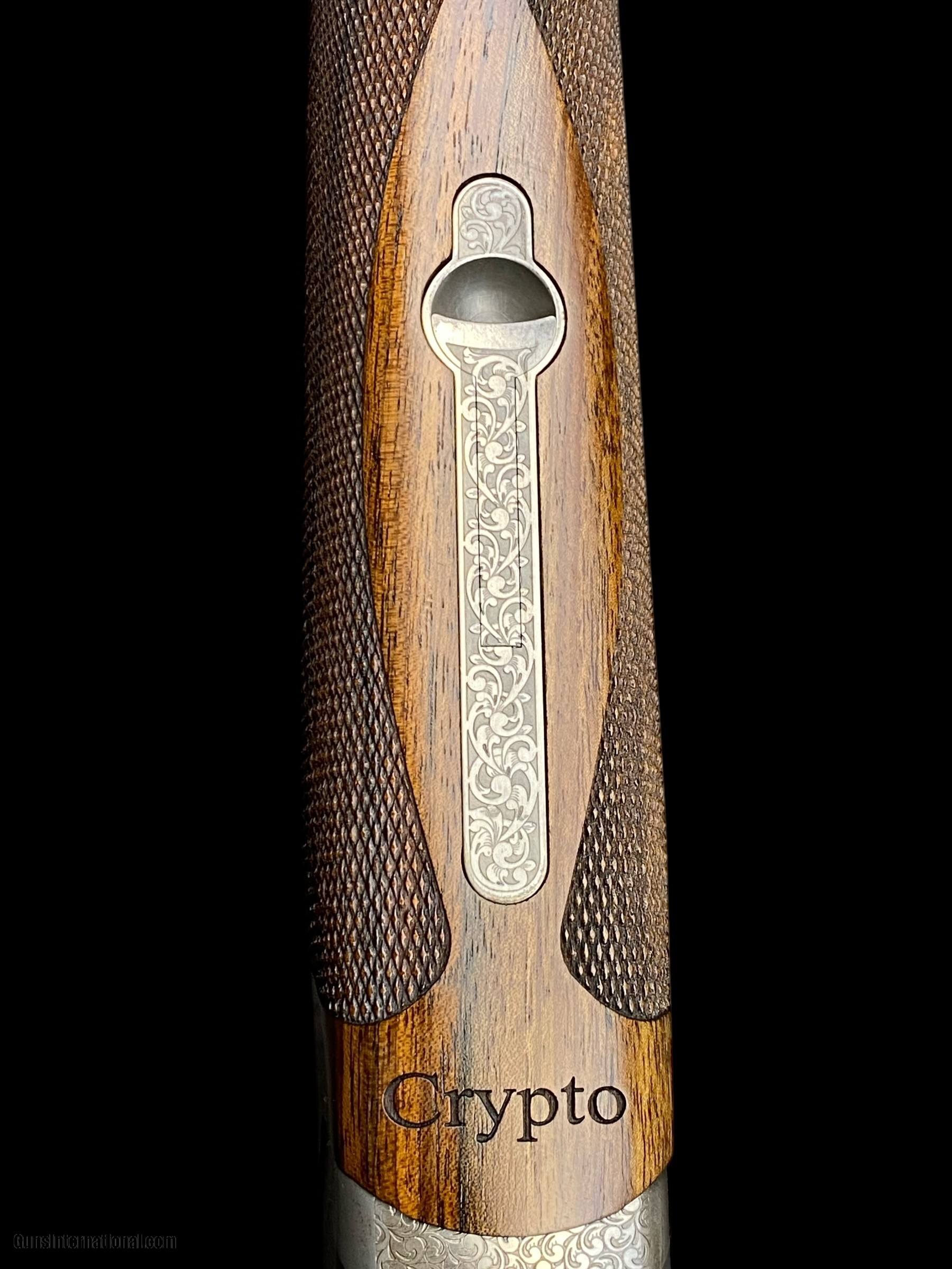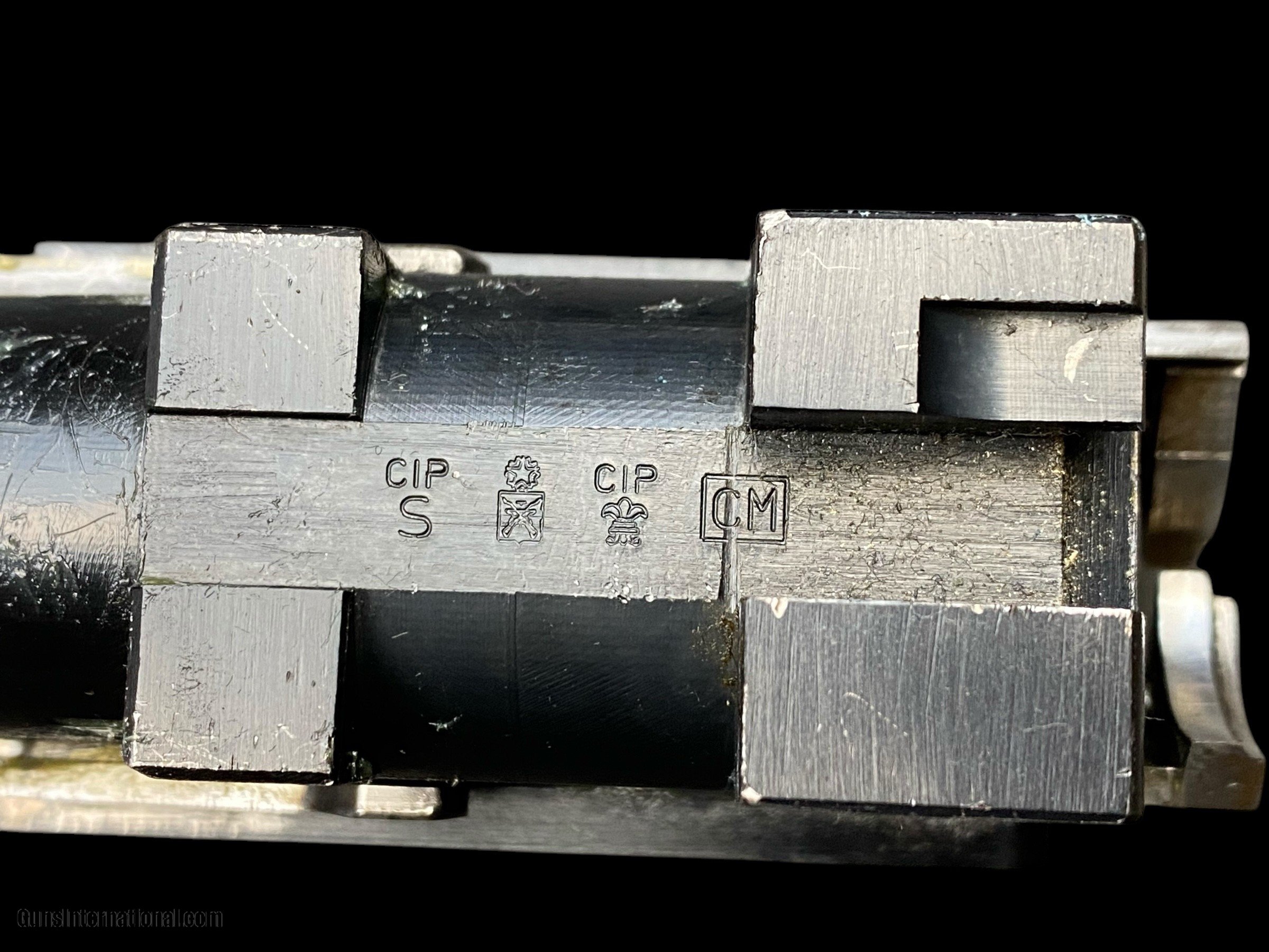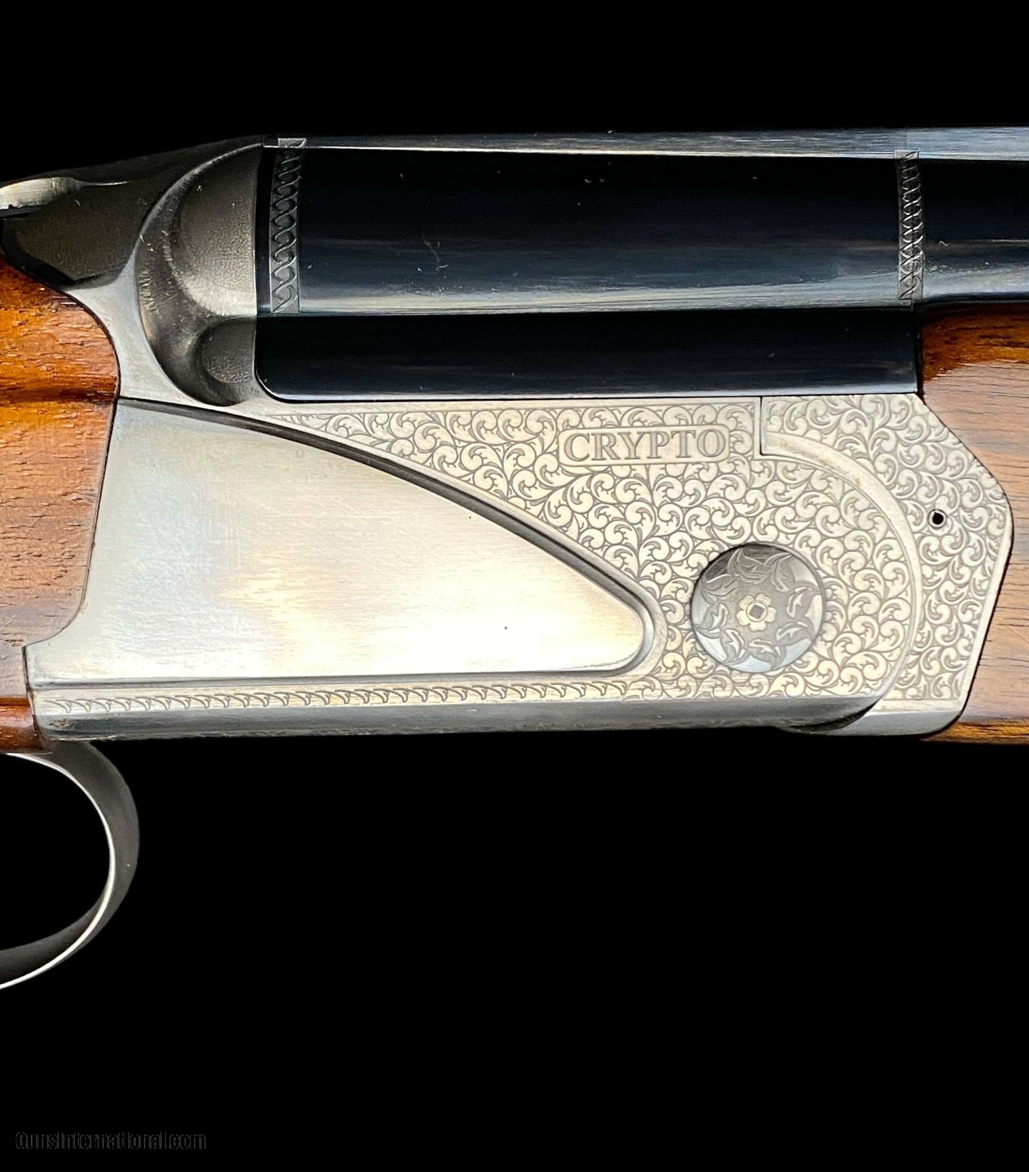 Description: BETTINSOLI - ITALY - MFG 2014 MODEL: CRYPTO O/U SHOTGUN - 30" VENT RIB AND VENT MID-RIB HIGH GLOSS BLUE BARRELS W/ MULTICHOKE SYSTEM - CIP STEEL PROOFS BEAUTIFUL SCROLL AND GAME SCENE ENGRAVED W/ GOLD WOODCOCK ON ACTION BOTTOM SINGLE SELECTIVE GOLD TRIGGER EJECTORS FANTASTIC TURKISH WALNUT FIGURED PISTOL GRIP STOCK W/ SOLID BLACK RUBBER PAD DIMS: LOP: 14 3/4" | DAC: 1 1/2" | DAH: 2 1/4" WEIGHT: 7LBS 9OZ CASED IN BETTINSOLI POLY CASE WITH MANUAL AND SPARE CHOKE TUBES / WRENCH CONDITION: GUN IS IN EXCELLENT ORIGINAL OVERALL CONDITION SHOWING VERY LIGHT SIGNS OF USE. ALL LUSTROUS BLUE REMAINS. BORES CLEAR AND BRIGHT. TRIGGER CRISP. EJECTORS STRONG AND IN-TIME. GUN LOCK-UP IS TIGHT. WOOD OIL FINISH REMAINS EXCELLENT WITH SCANT AND SUPERFICIAL MARKS. NICE GUN! GENTLEMEN, THIS IS A SOLID AND BEAUTIFULLY BUILT OVER UNDER SHOTGUN. THE WOOD IS EXCEPTIONAL. A BEAUTIFUL GUN FOR THE SPORTING CLAYS COURSE OR AFIELD. QUALITY OF THIS GUN WILL COMPETE WITH ANY COMPARABLE BERETTA, RIZZINI, CAESER GUERINI, OR ZOLI SHOTGUN. YOU WILL BE PLEASED WITH THIS FINE FIREARM! THIS WAS A TOP OF LINE MODEL IN 2014. PLEASE CALL NOW! FFL REQUIRED FLAT $50 S/H/I CARD FEE APPLIES SOLD Shotgun Gauge: 12 Gauge Manufacturer: BETTINSOLI Model: CRYPTO Serial Number: 24971x Barrel Length: 30 Chambers: 3" - 76MM Ejectors: YES Condition: EXC Metal Condition: EXC Wood Condition: EXC Bore Condition: EXC Action: BLE Triggers: SINGLE SELECTIVE Chokes: MULTI Case: YES Proof:Nitro: YES |