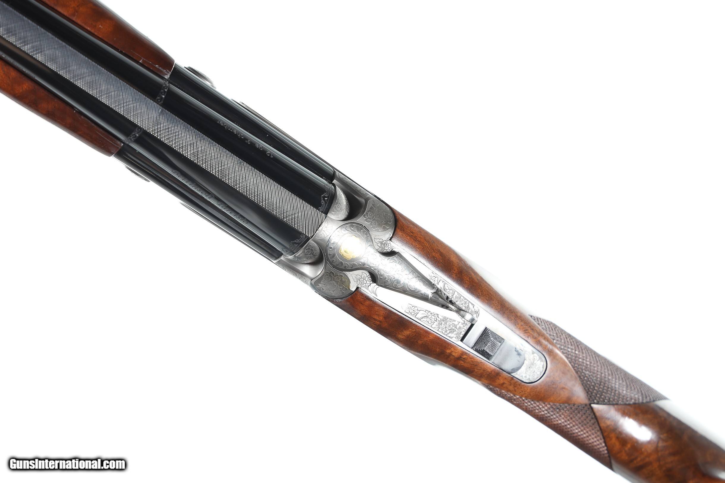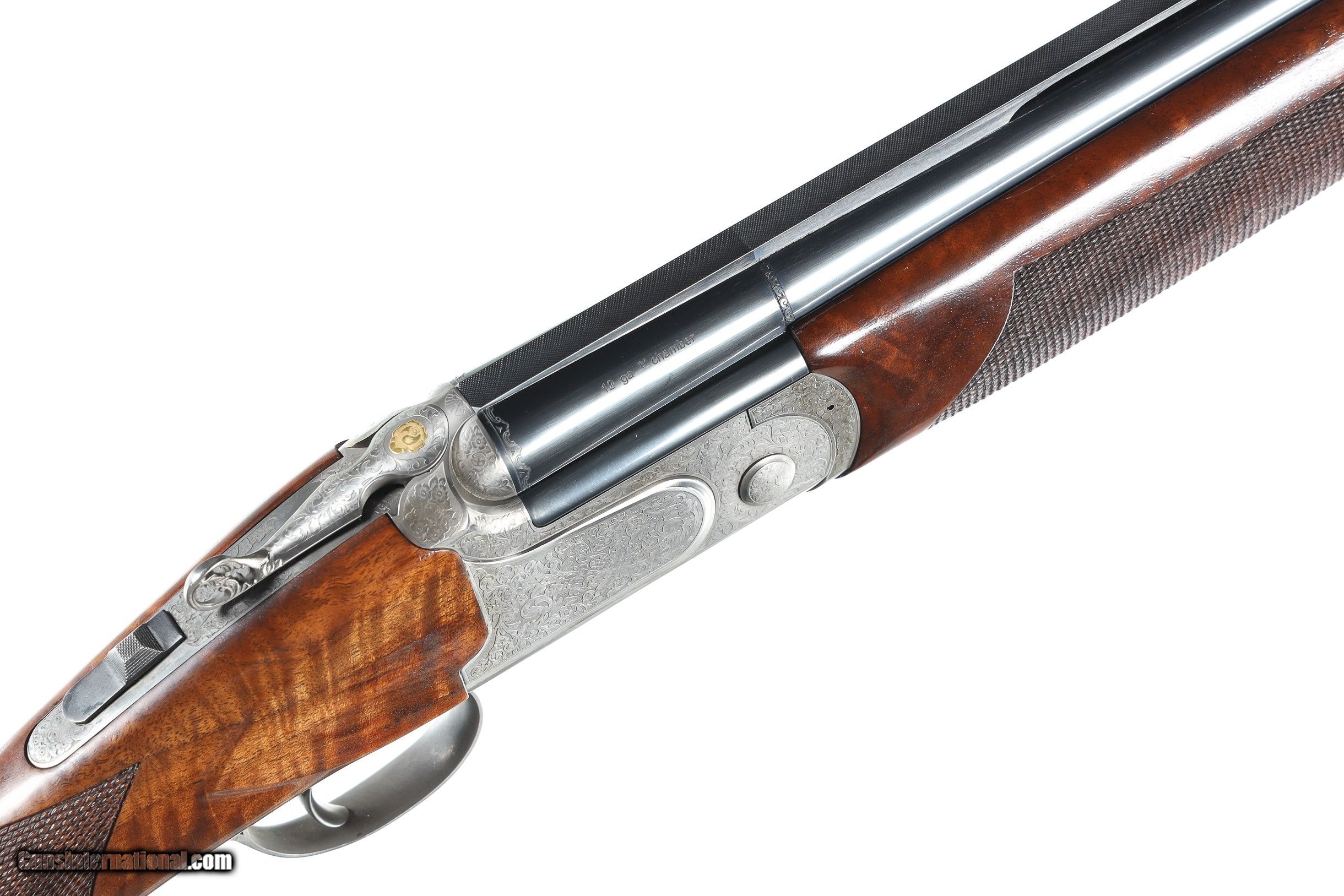 Description: Bettinsoli Super Sport Tarcisio 12 Ga, Over under with 30" Vent rib Bbls with 3" chamber and single selective trigger. Coin finished profusely scroll engraved box lock action. Varnished checkered pistol grip stock with factory pad. 14 1/2" LOP 1 1/2" DAC 2 1/4" DAH. Comes in factory luggage case with 2 additional chokes and wrench. Condition, Extremely fine with bright bores and retaining most all factory finishes. Stocks are excellent with little use. Mechanically excellent. • Free Shipping, No Credit Card Fees. • Lay-a-way available for this firearm. • 1/3 Down, a 1/3 in 30 Days 1/3 in 60 Days. SOLD Shotgun Gauge: 12 Gauge Manufacturer: Bettinsoli Model: Super Sport Serial Number: 203759 Barrel Length: 30 |