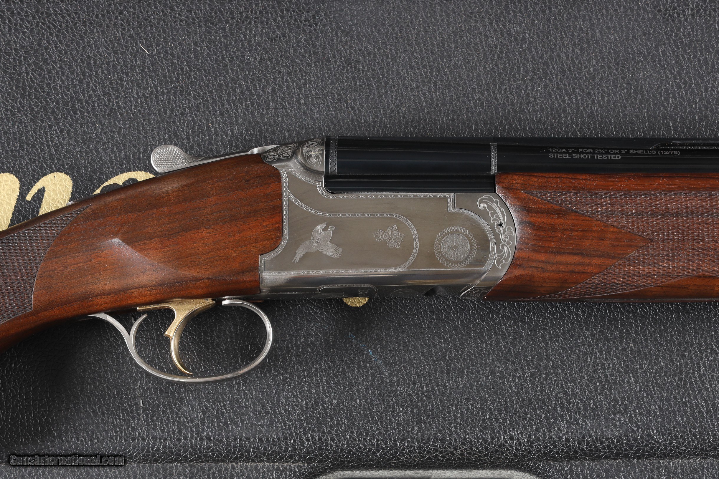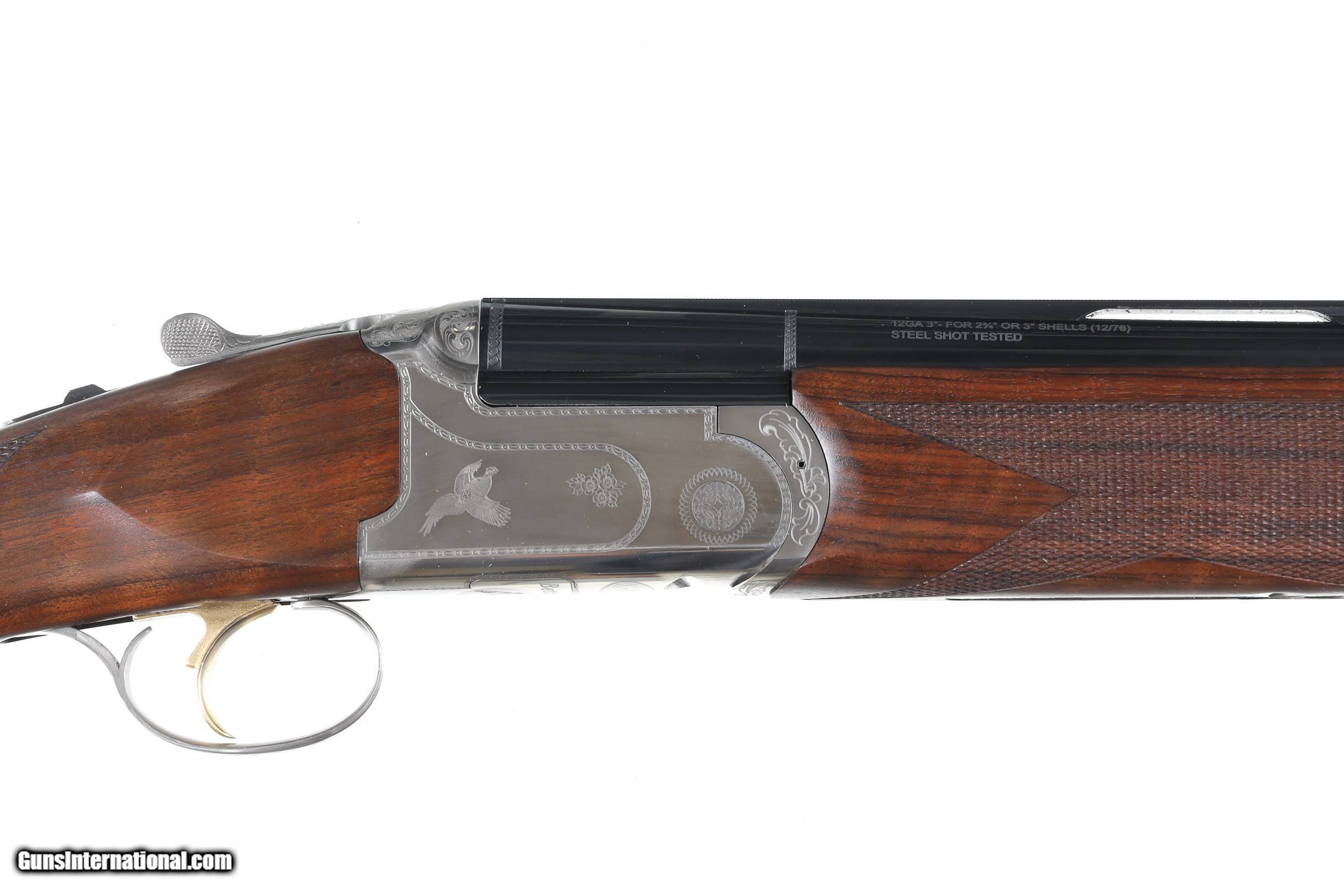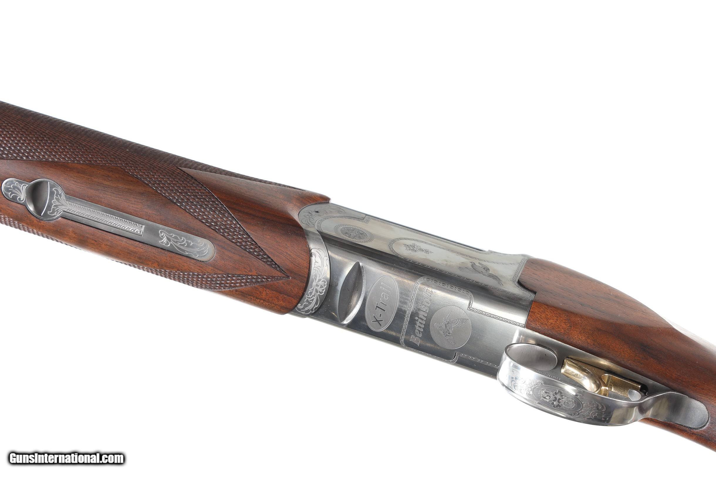 Description: Bettinsoli X-Trail 12ga over under with 30" bbl with interchangeable choke system, coin finished, game scene engraved receiver with single selective trigger and ejectors. Varnished, checkered, pistol grip walnut stock with factory recoil pad. Housed in factory travel case with 3 additional tubes, wrench and instructions. Condition: Nearly new and appears to have had little use. Bright bores and mechanically excellent. Stocks are excellent and metal finishes are excellent. Mfg in 2017. • Free Shipping, No Credit Card Fees. • Lay-a-way available for this firearm. • 1/3 Down, a 1/3 in 30 Days 1/3 in 60 Days. SOLD Shotgun Gauge: 12 Gauge Manufacturer: Bettinsoli Model: X Trail Serial Number: 266916 Barrel Length: 30 Bore: 12 Ga, Chambers: 2 3/4 Ejectors: Yes Condition: Excellent Metal Condition: Excellent Wood Condition: Excelent Bore Condition: Bright Barrels: 30 Barrel Type: Over Under Action: Box Lock Triggers: Single Selective Stock: Walnut Butt Pad: Factory LOP: 14 1/2 Finish: Blue & Coin Sights: Bead Manufacture Date: 2017 Chokes: Interchangeable Tubes Engraving: Game Scene Extras: Luggage Case / Tools |