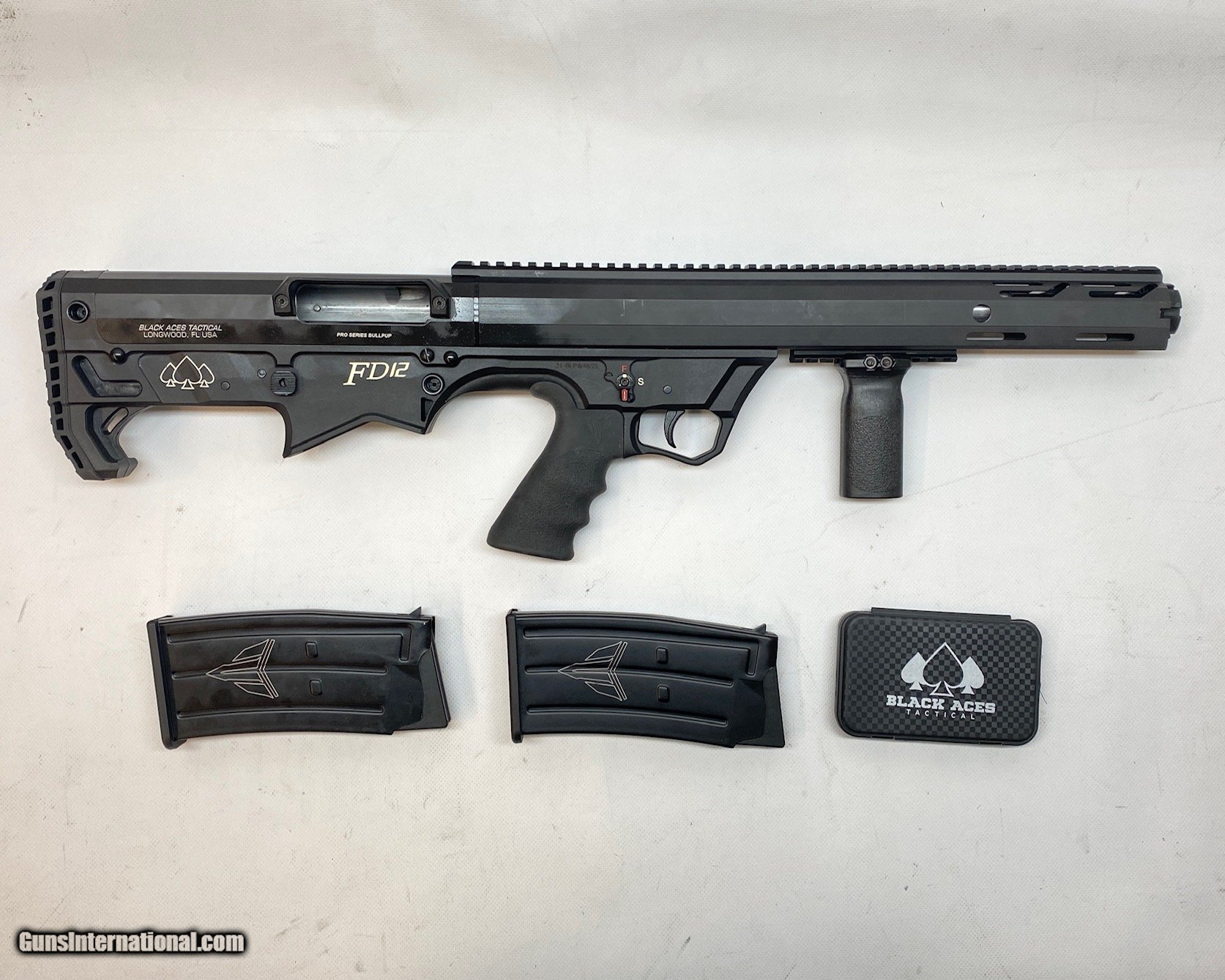 Description: Guns Listing ID: 1317393 BLACK ACES TACTICAL FD12 BULLPUP SHOTGUN WITH ORIGINAL CASE, 2 MAGAZINES, AND ORIGINAL CHOKES. SOLD Manufacturer: BLACK ACES TACTICAL Model: BULLPUP Condition: Used - Non-Certified Barrels: 18.5 BARREL Gauge Info: 12 GA Finish: FLAT DARK EARTH |